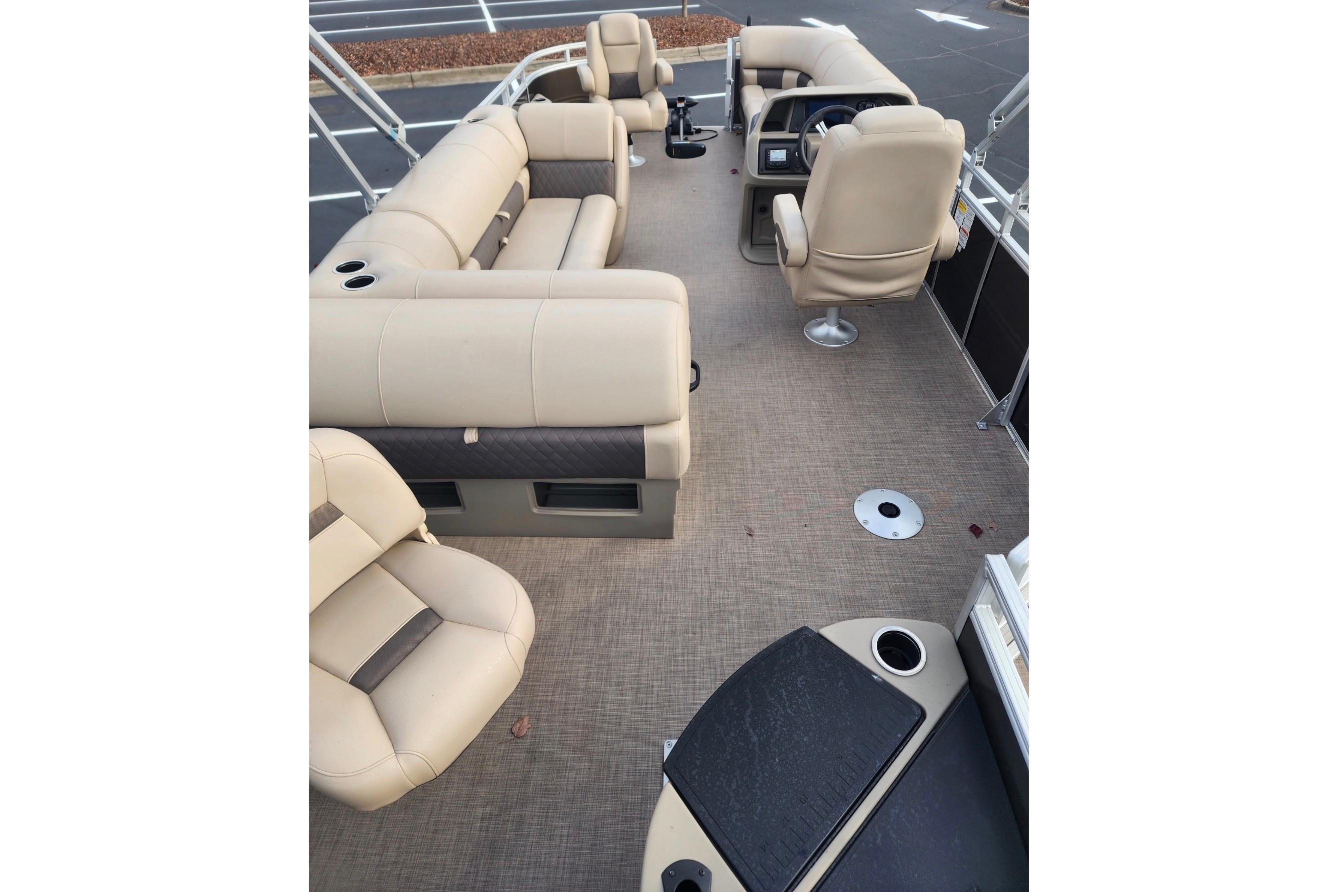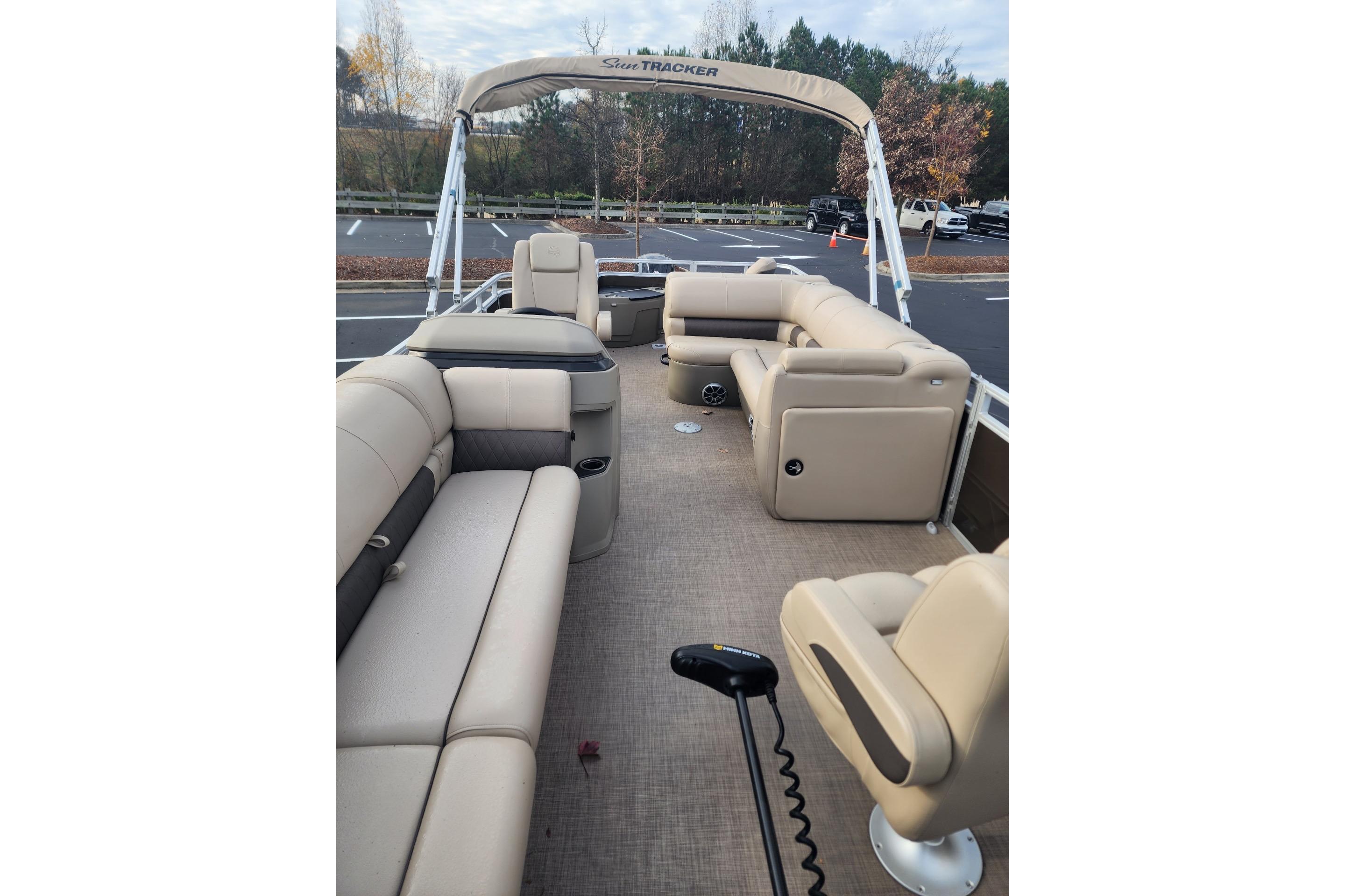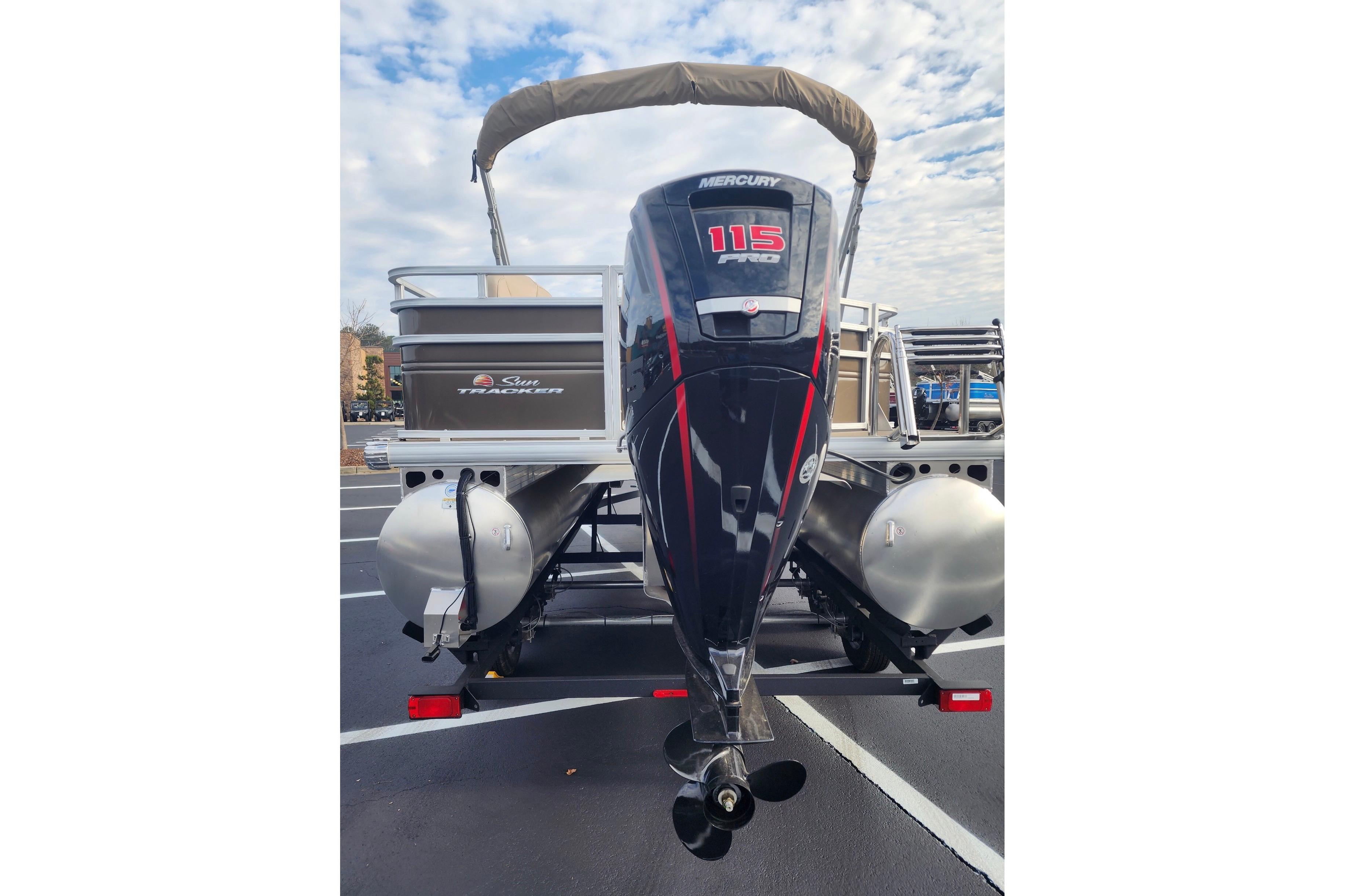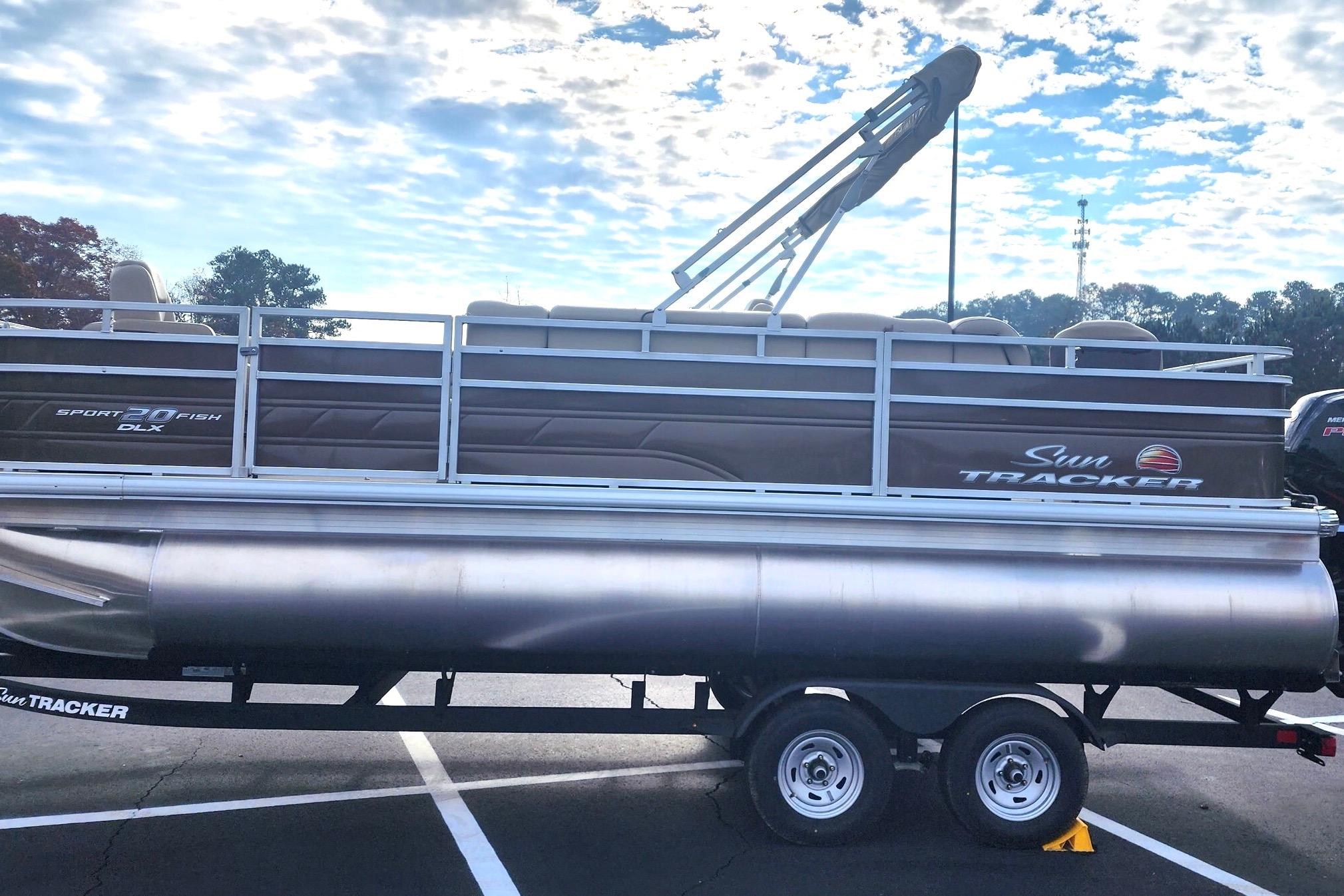 Get the best of 2 worlds with the 2025 SPORTFISH™ 20 DLX. This pontoon boat offers a space built for both serious fishing trips and days of fun on the water for up to 10 friends and family. Spend the day casting lines from the fore fishing captain's chair or the comfortable aft folding chair. These fishing stations feature an aft aerated livewell, drink holders, and rod holders. Navigate to the next fishing spot in the helm's captain's chair and the ergonomic console with a SUN TRACKER FLARE touchscreen, built-in storage space, and soft-touch steering wheel.