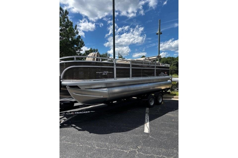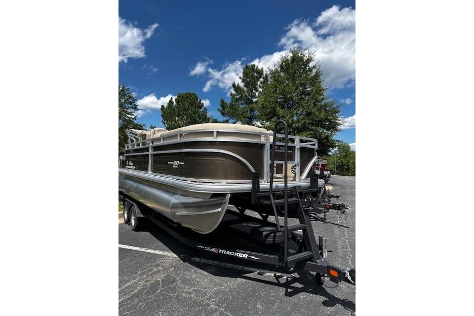 Get the best of 2 worlds with the 2025 SPORTFISH™ 20 DLX. This pontoon boat offers a space built for both serious fishing trips and days of fun on the water for up to 10 friends and family. Spend the day casting lines from the fore fishing captain's chair or the comfortable aft folding chair. These fishing stations feature an aft aerated livewell, drink holders, and rod holders. Navigate to the next fishing spot in the helm's captain's chair and the ergonomic console with a SUN TRACKER FLARE touchscreen, built-in storage space, and soft-touch steering wheel.