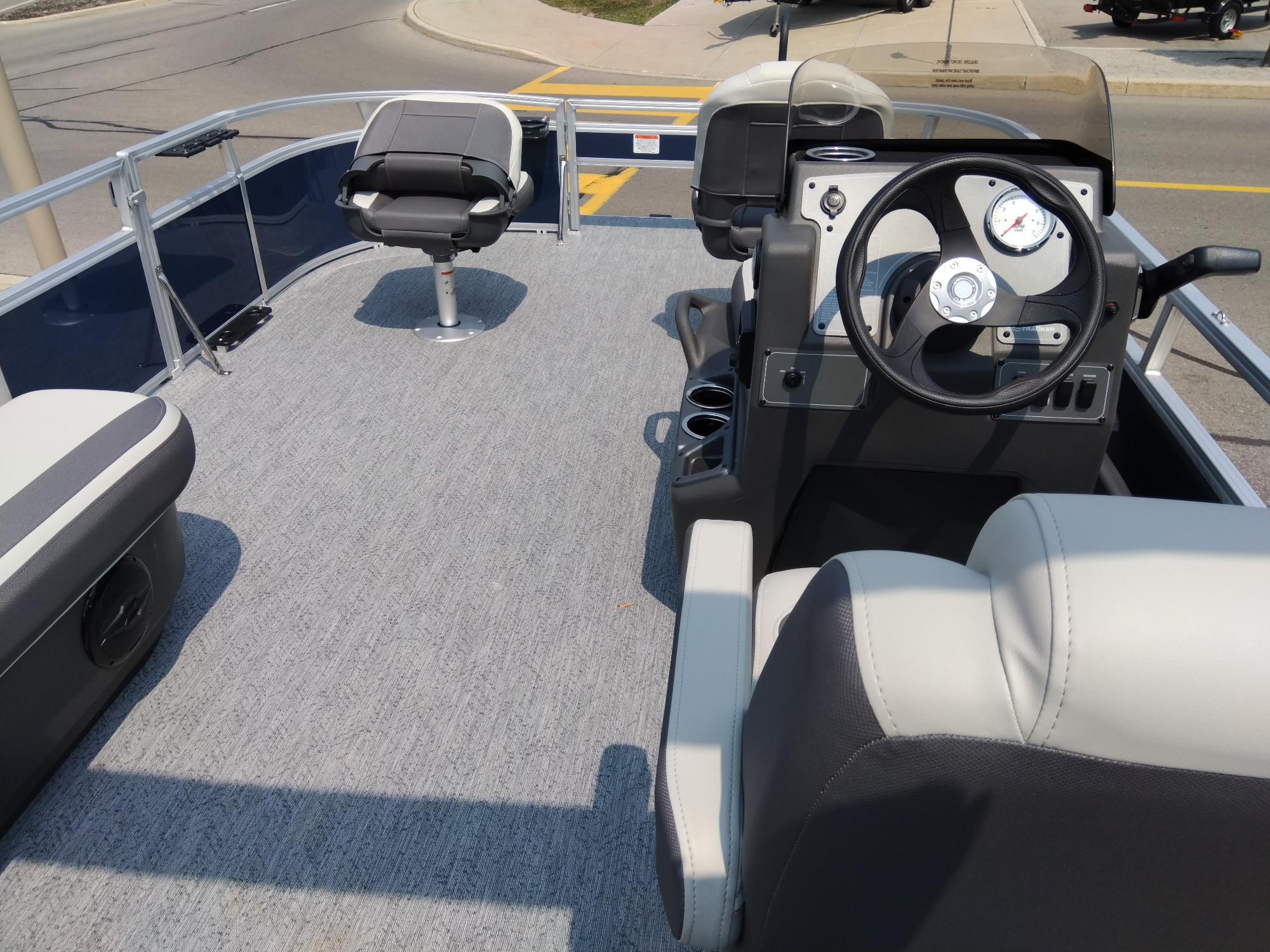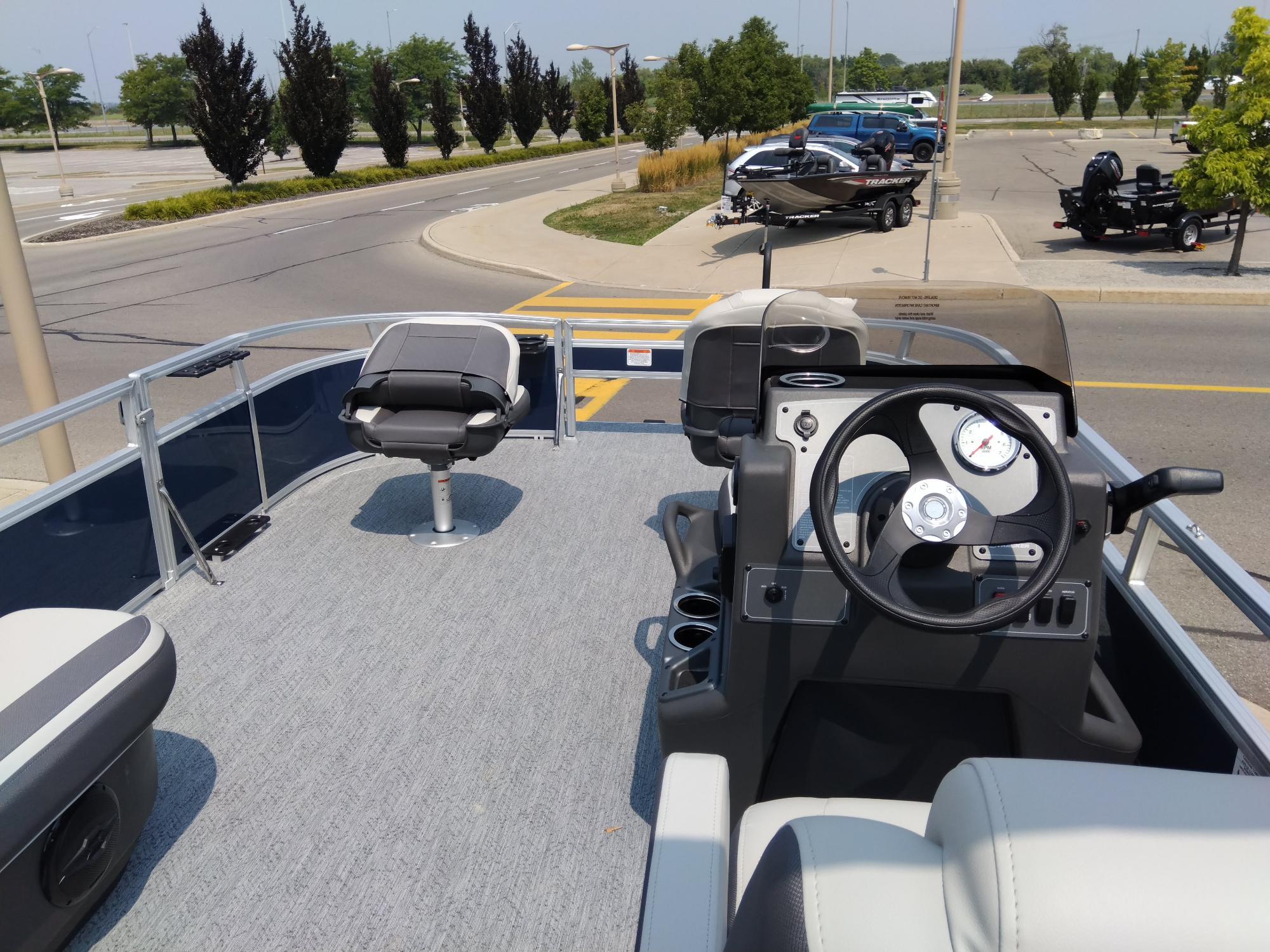 Get the best of 2 worlds with the 2025 SPORTFISH™ 20 DLX. This pontoon boat offers a space built for both serious fishing trips and days of fun on the water for up to 10 friends and family. Spend the day casting lines from the fore fishing captain's chair or the comfortable aft folding chair. These fishing stations feature an aft aerated livewell, drink holders, and rod holders. Navigate to the next fishing spot in the helm's captain's chair and the ergonomic console with a SUN TRACKER FLARE touchscreen, built-in storage space, and soft-touch steering wheel.