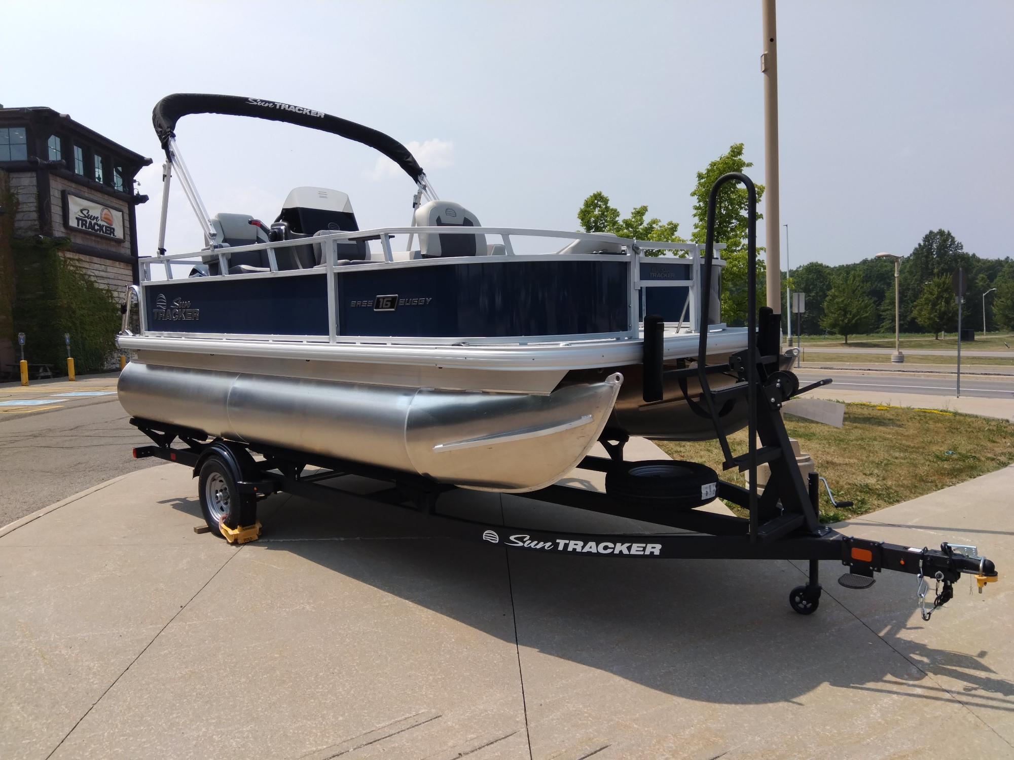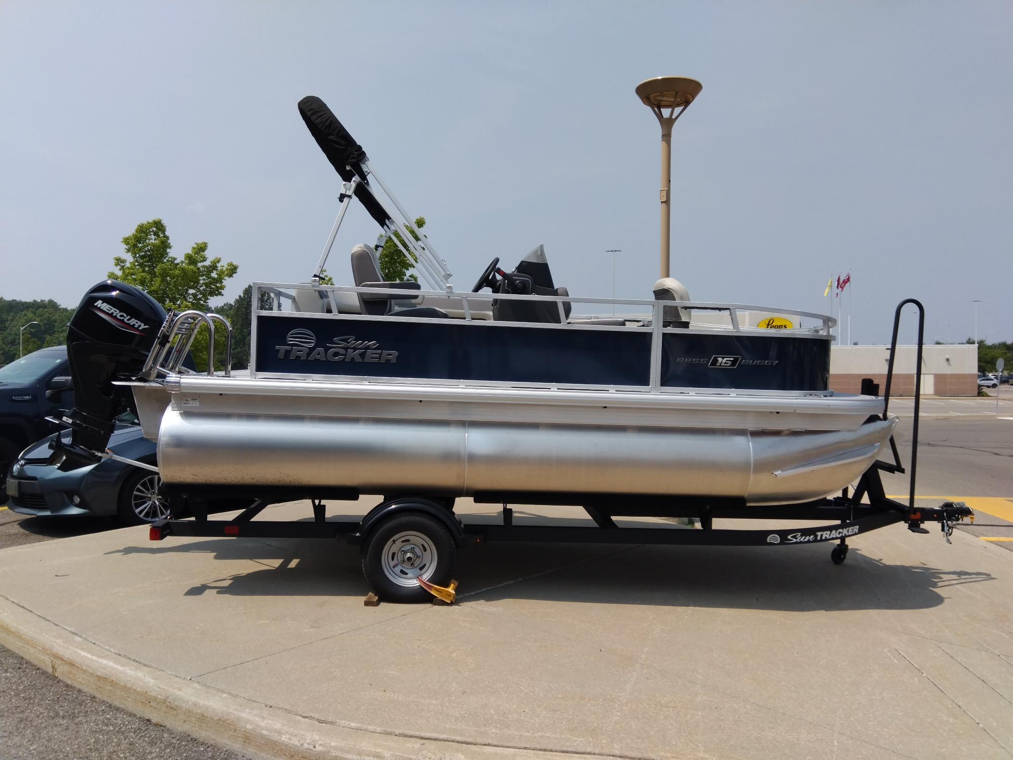 • 9' (2.74 m) SUN TRACKER® QuickLift™ Bimini top w/LED courtesy lights, storage pockets & protective boot (color-coordinated Black w/Black fencing or Sand w/Caribou fencing)