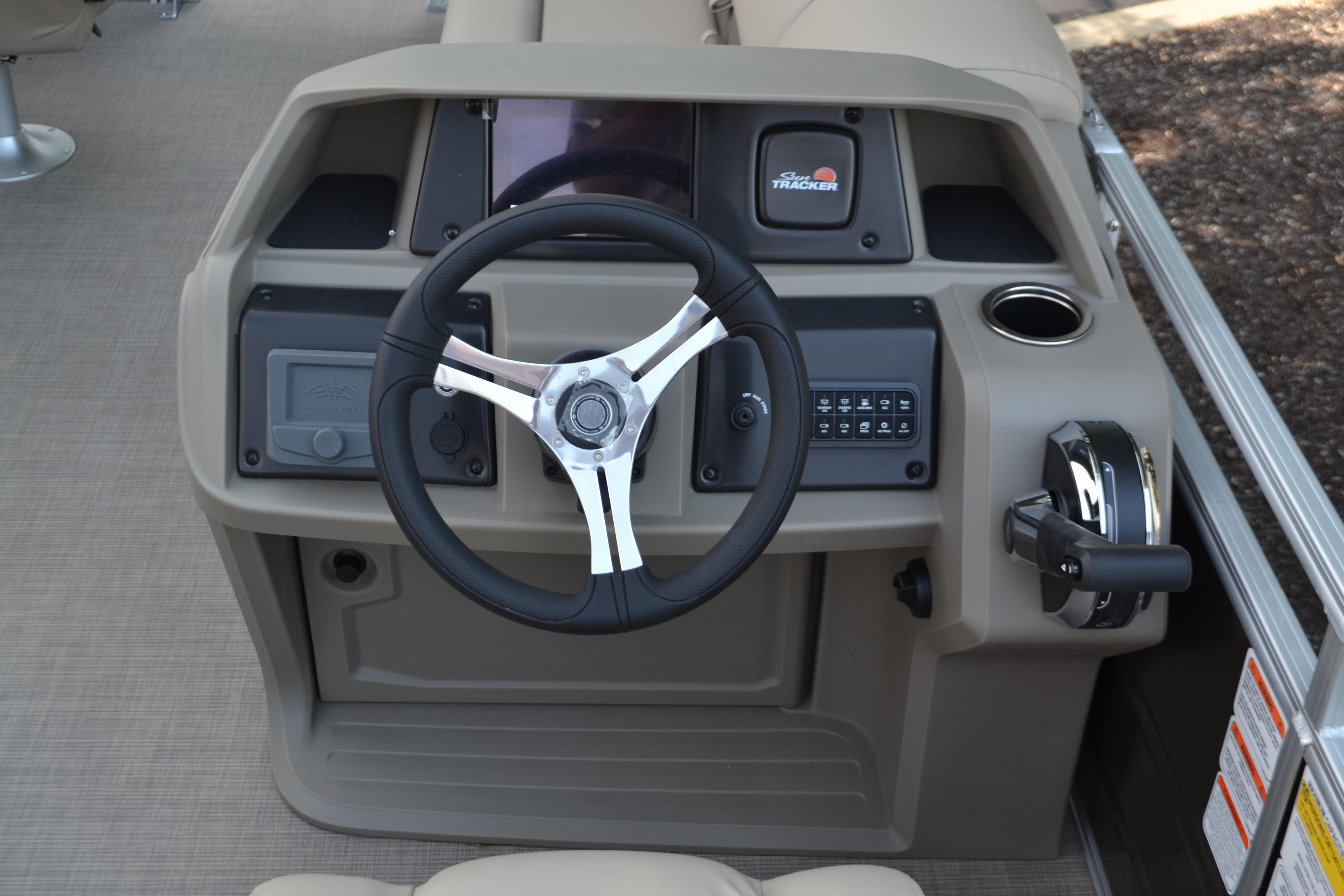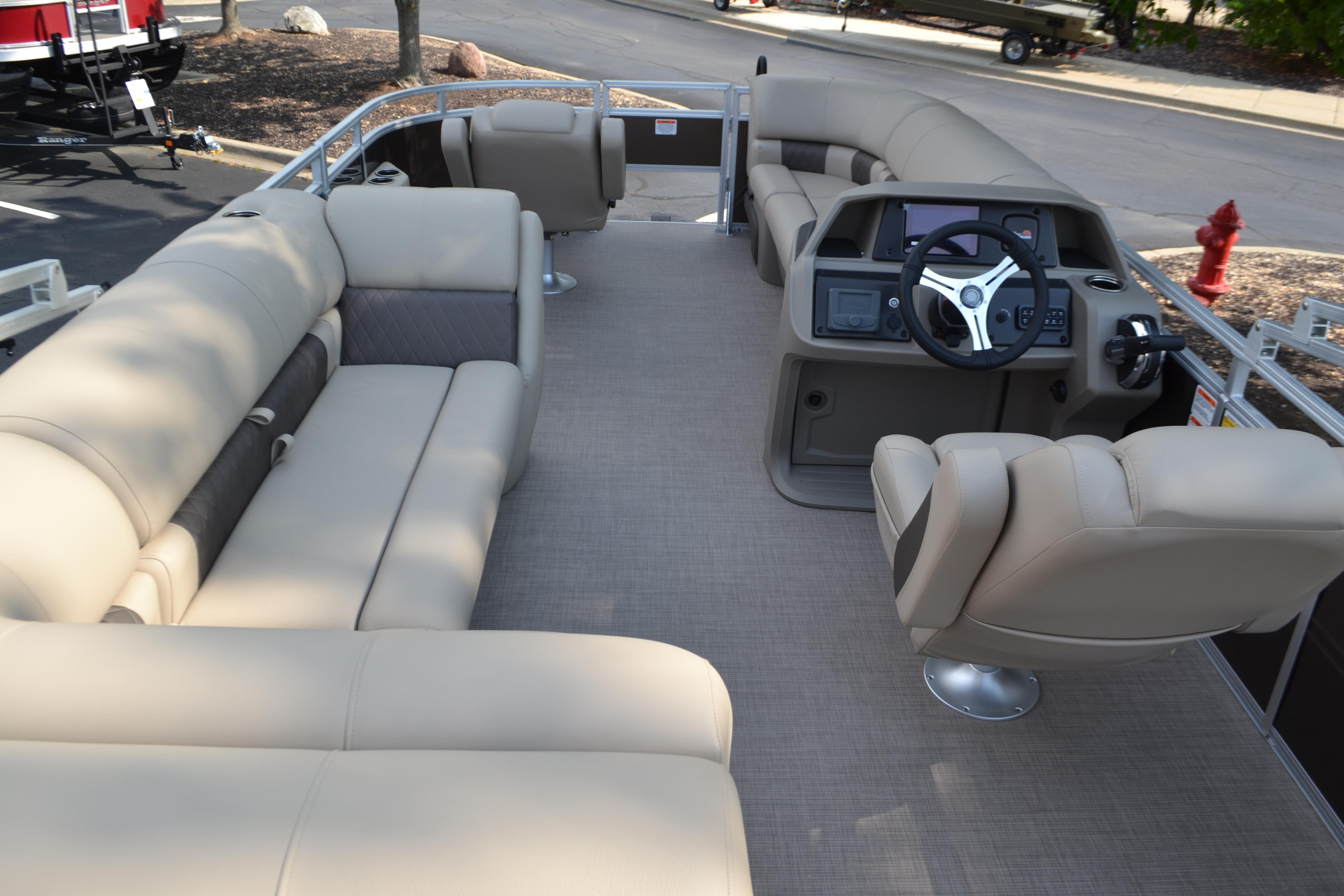 Get the best of 2 worlds with the 2025 SPORTFISH™ 20 DLX. This pontoon boat offers a space built for both serious fishing trips and days of fun on the water for up to 10 friends and family. Spend the day casting lines from the fore fishing captain's chair or the comfortable aft folding chair. These fishing stations feature an aft aerated livewell, drink holders, and rod holders. Navigate to the next fishing spot in the helm's captain's chair and the ergonomic console with a SUN TRACKER FLARE touchscreen, built-in storage space, and soft-touch steering wheel.