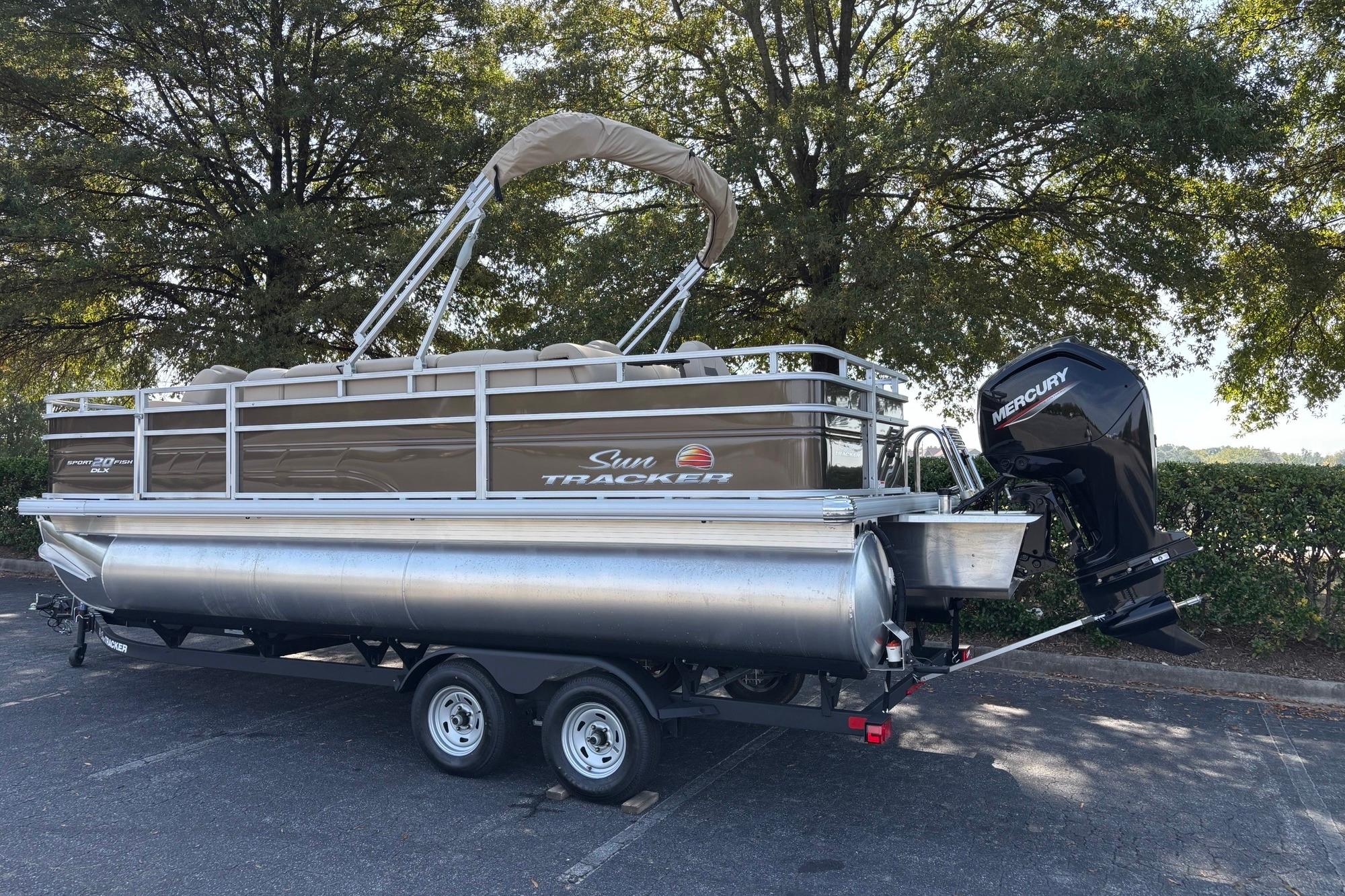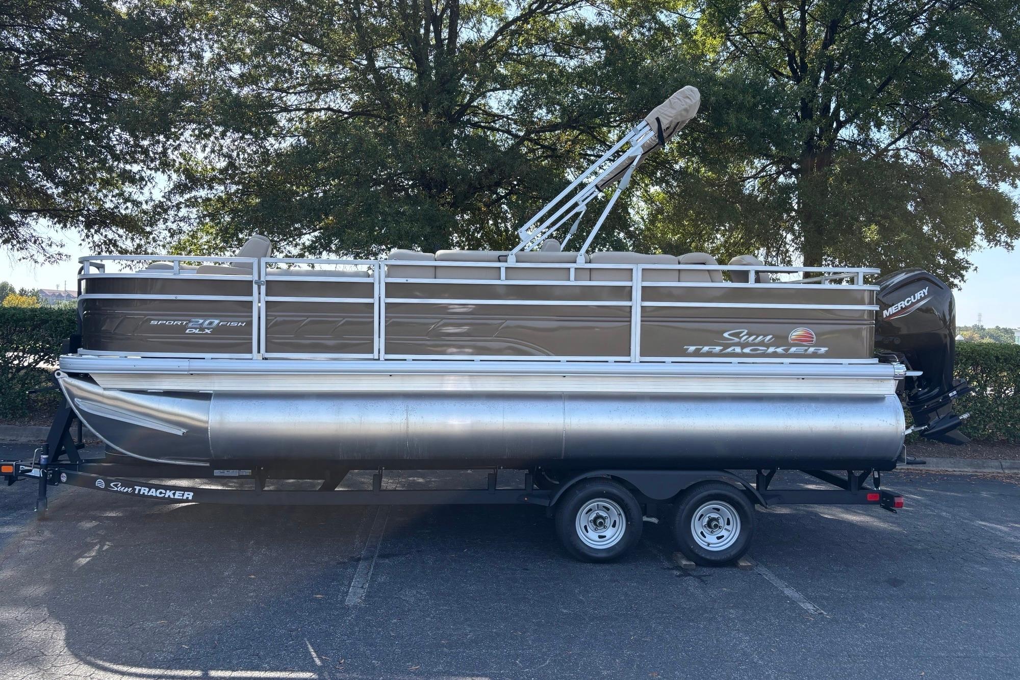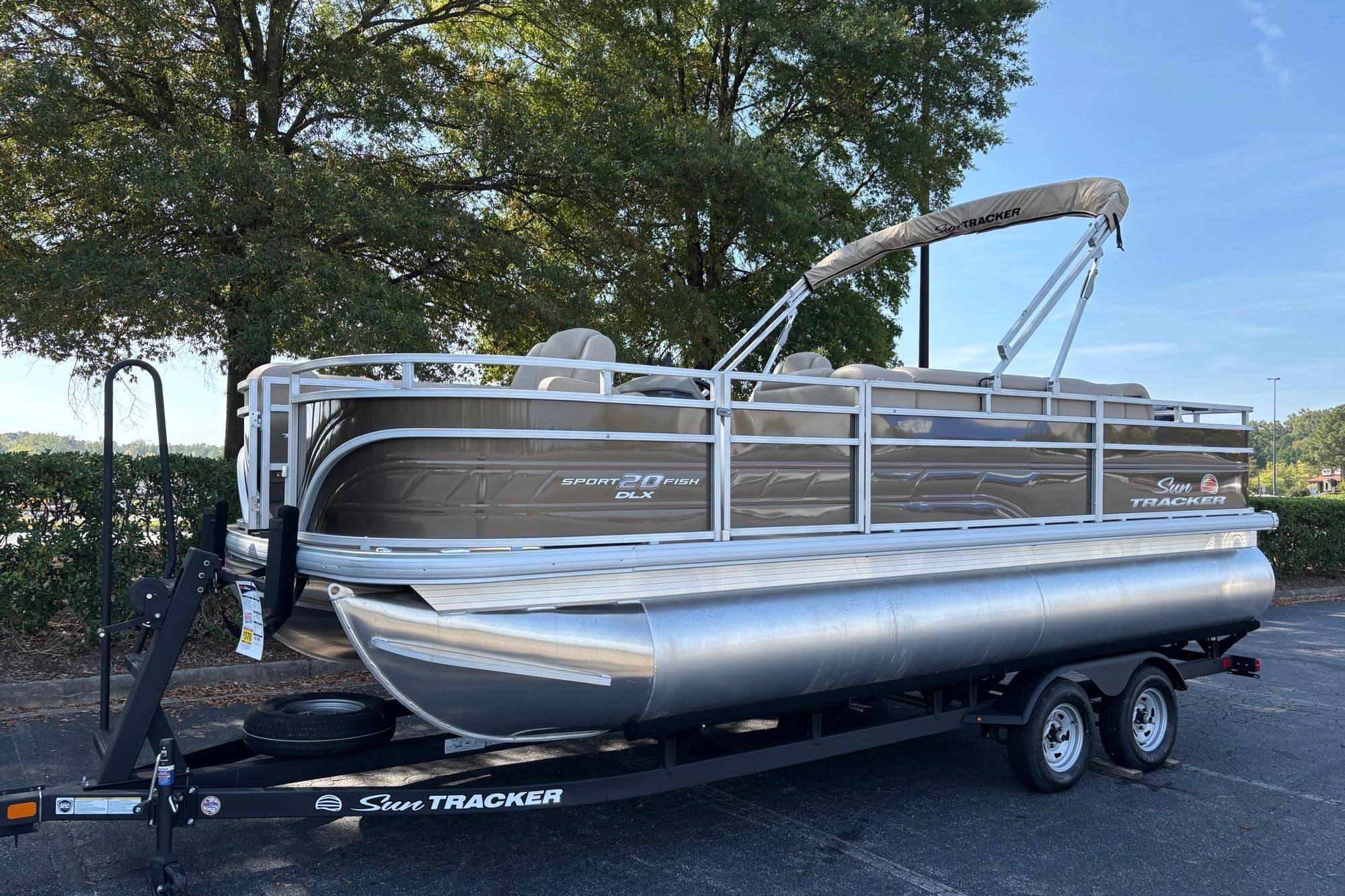 Get the best of 2 worlds with the 2025 SPORTFISH™ 20 DLX. This pontoon boat offers a space built for both serious fishing trips and days of fun on the water for up to 10 friends and family. Spend the day casting lines from the fore fishing captain's chair or the comfortable aft folding chair. These fishing stations feature an aft aerated livewell, drink holders, and rod holders. Navigate to the next fishing spot in the helm's captain's chair and the ergonomic console with a SUN TRACKER FLARE touchscreen, built-in storage space, and soft-touch steering wheel.
