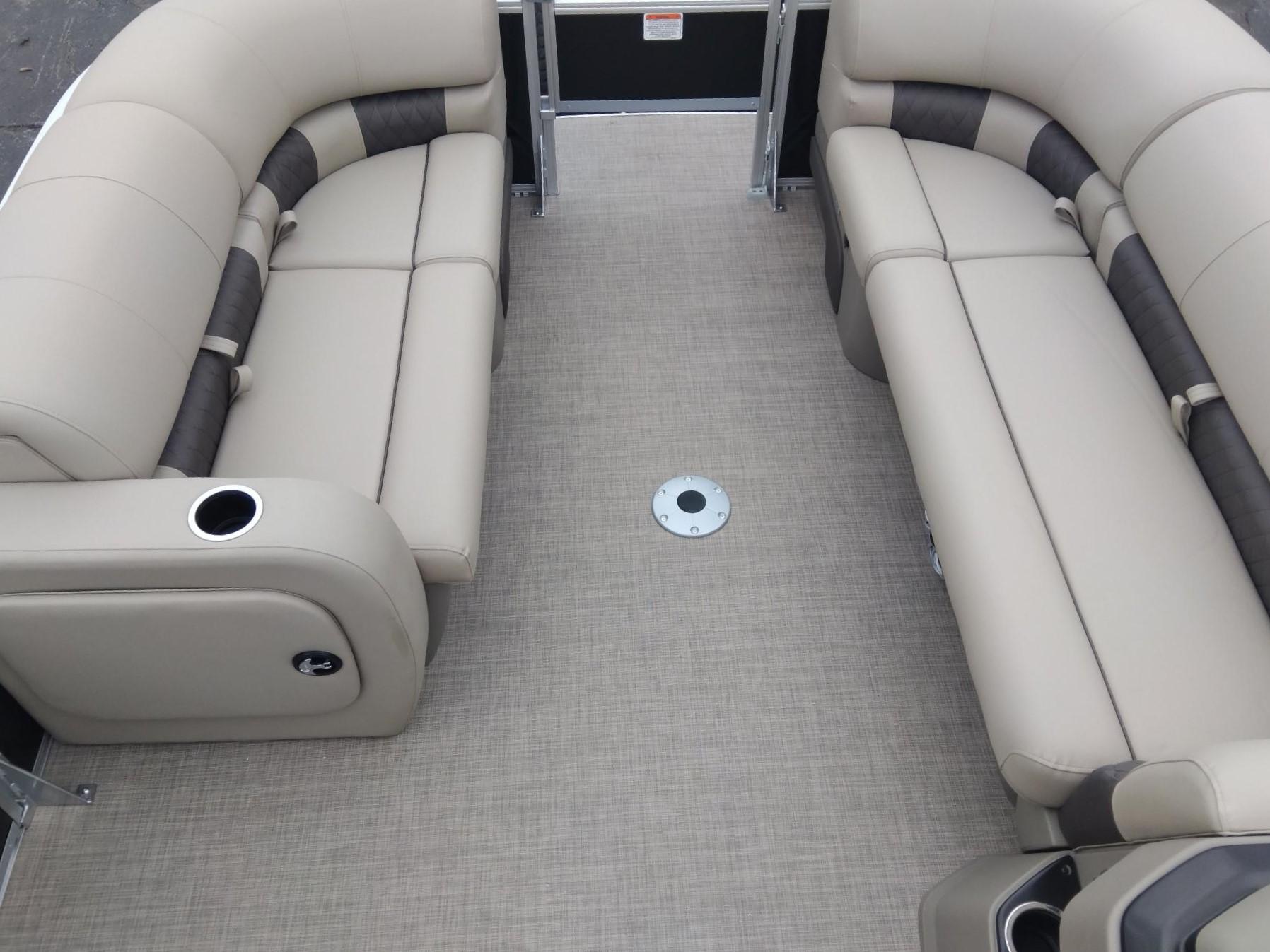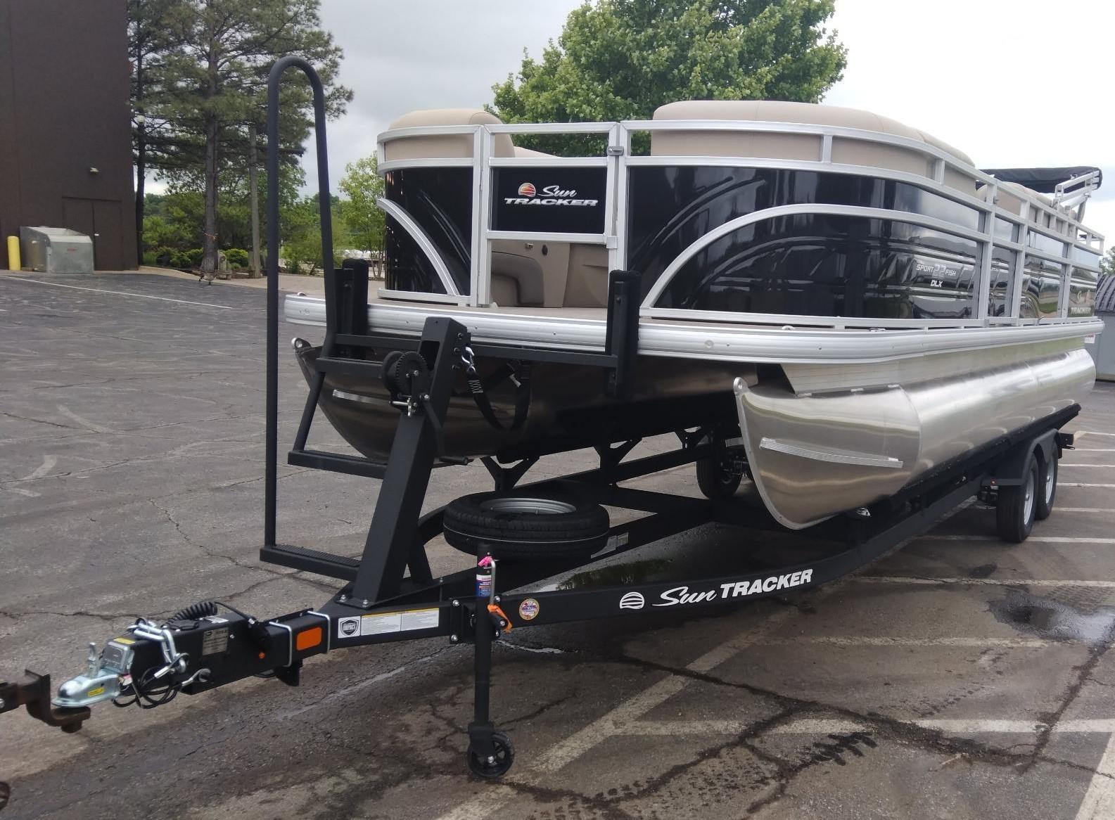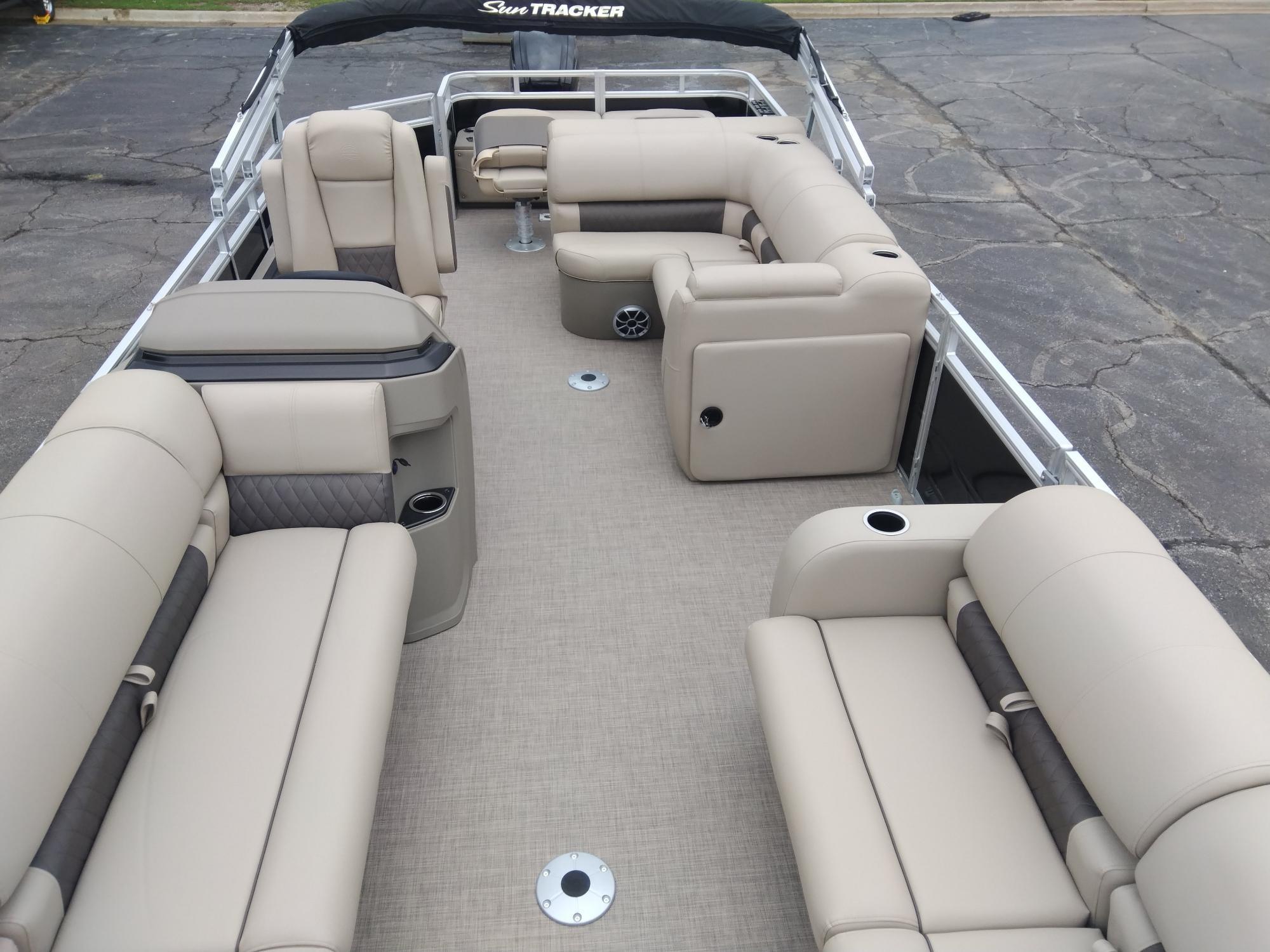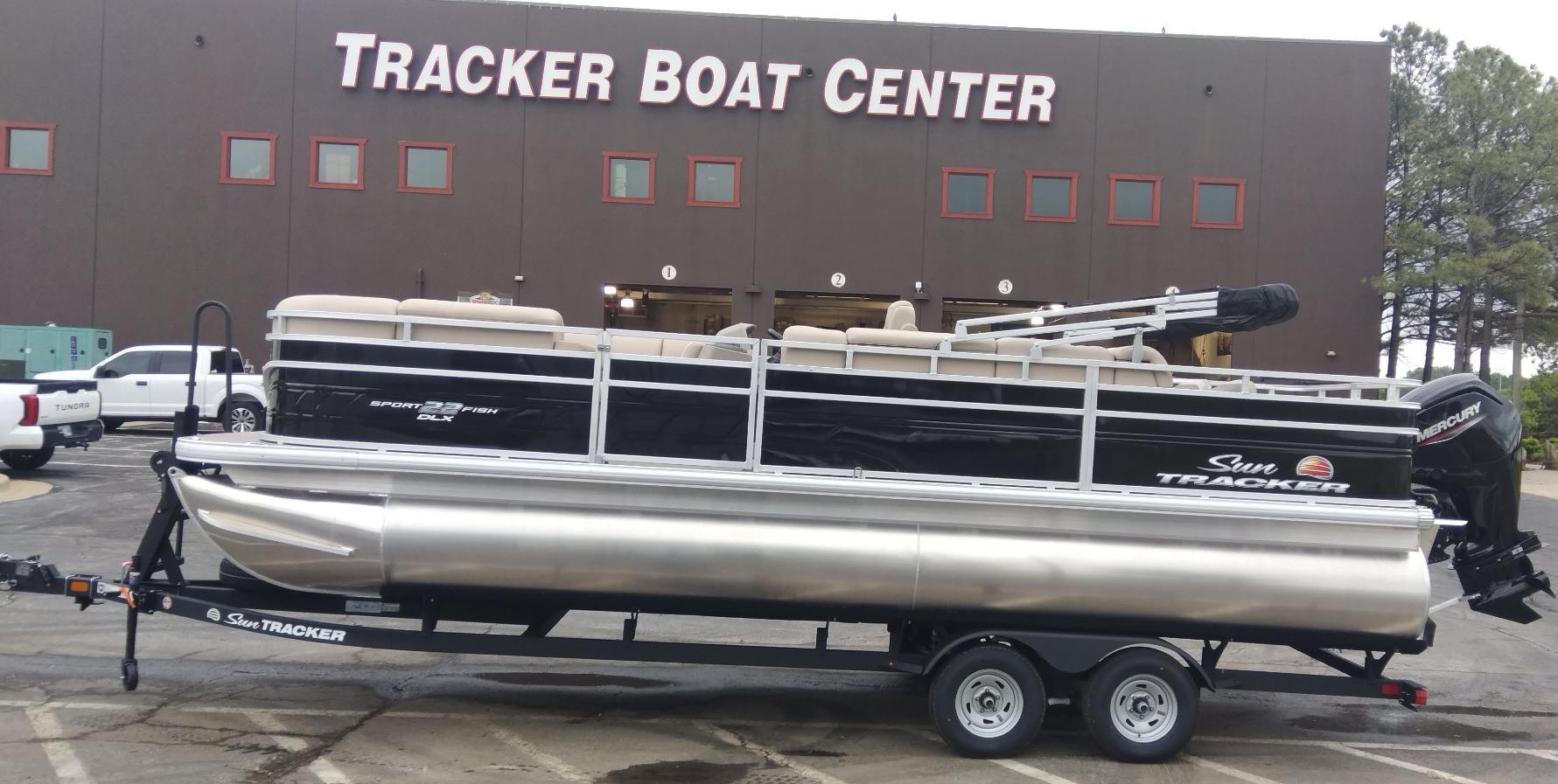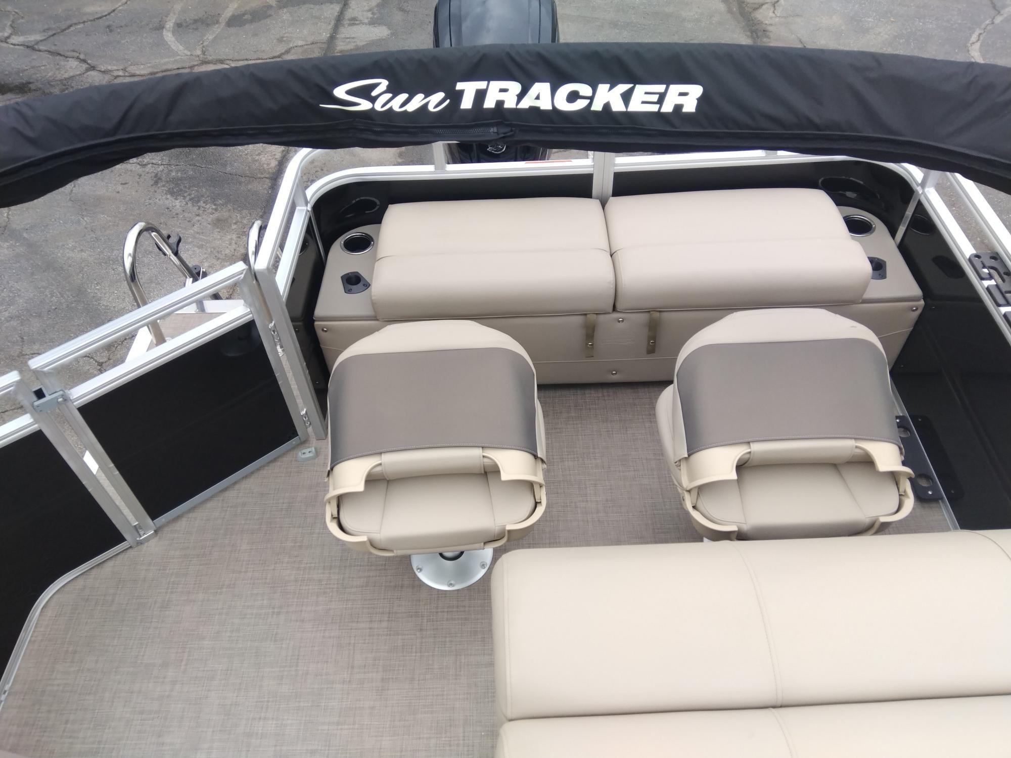 Whether you're on the water to get some fishing done or party it up with family and friends, the 2025 SPORTFISH™ 22 DLX has you covered! This SUN TRACKER® pontoon boat offers room for up to 10 passengers on its 22' deck. The anglers will love the aft fishing deck with dual swiveling fishing chairs that you can fold and remove, a lockable rod compartment, rail-mounted rod and tool holders, and an aerated livewell under the rear bench. Keep your fishing accessories organized in the tackle-storage station.