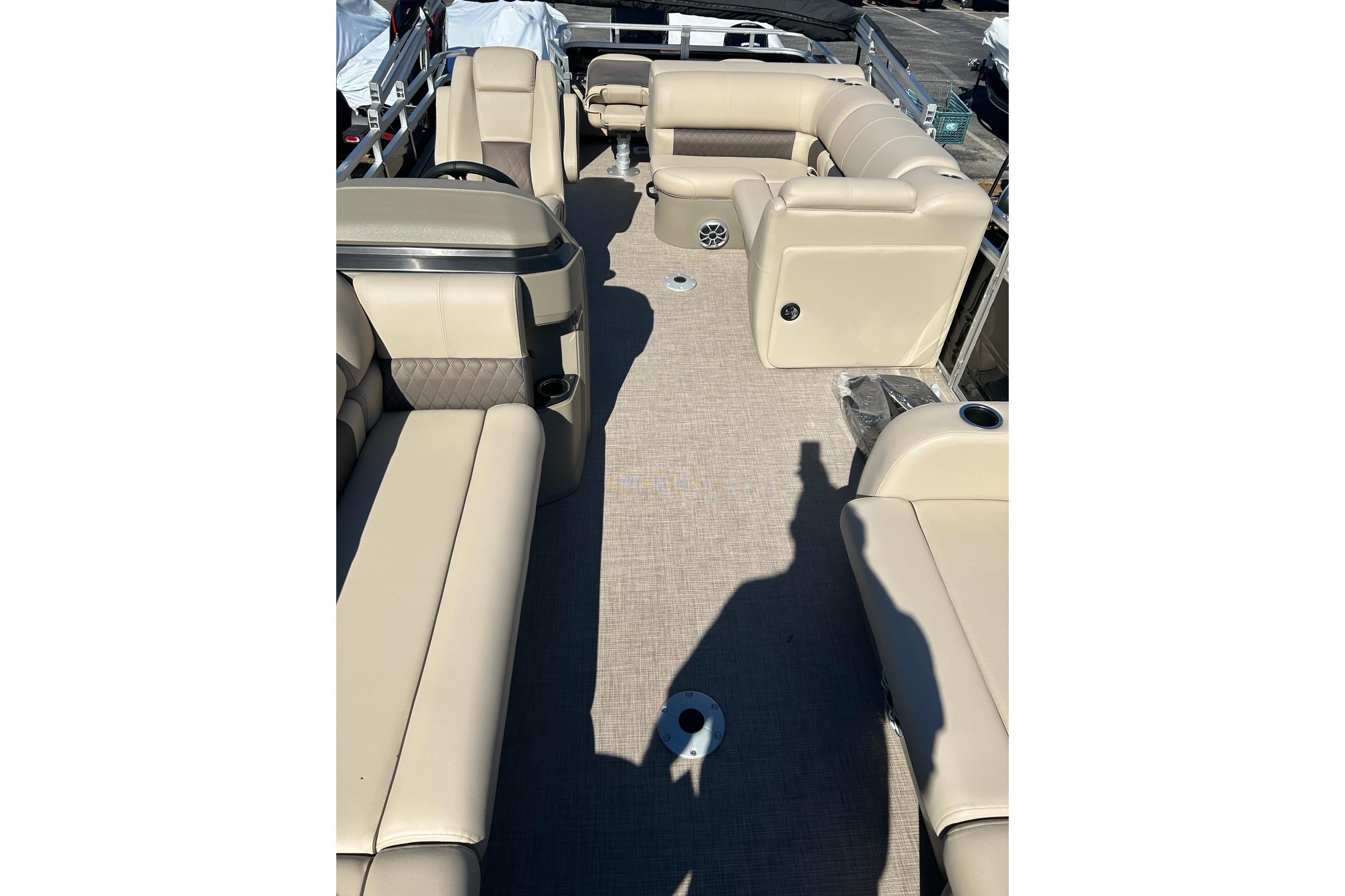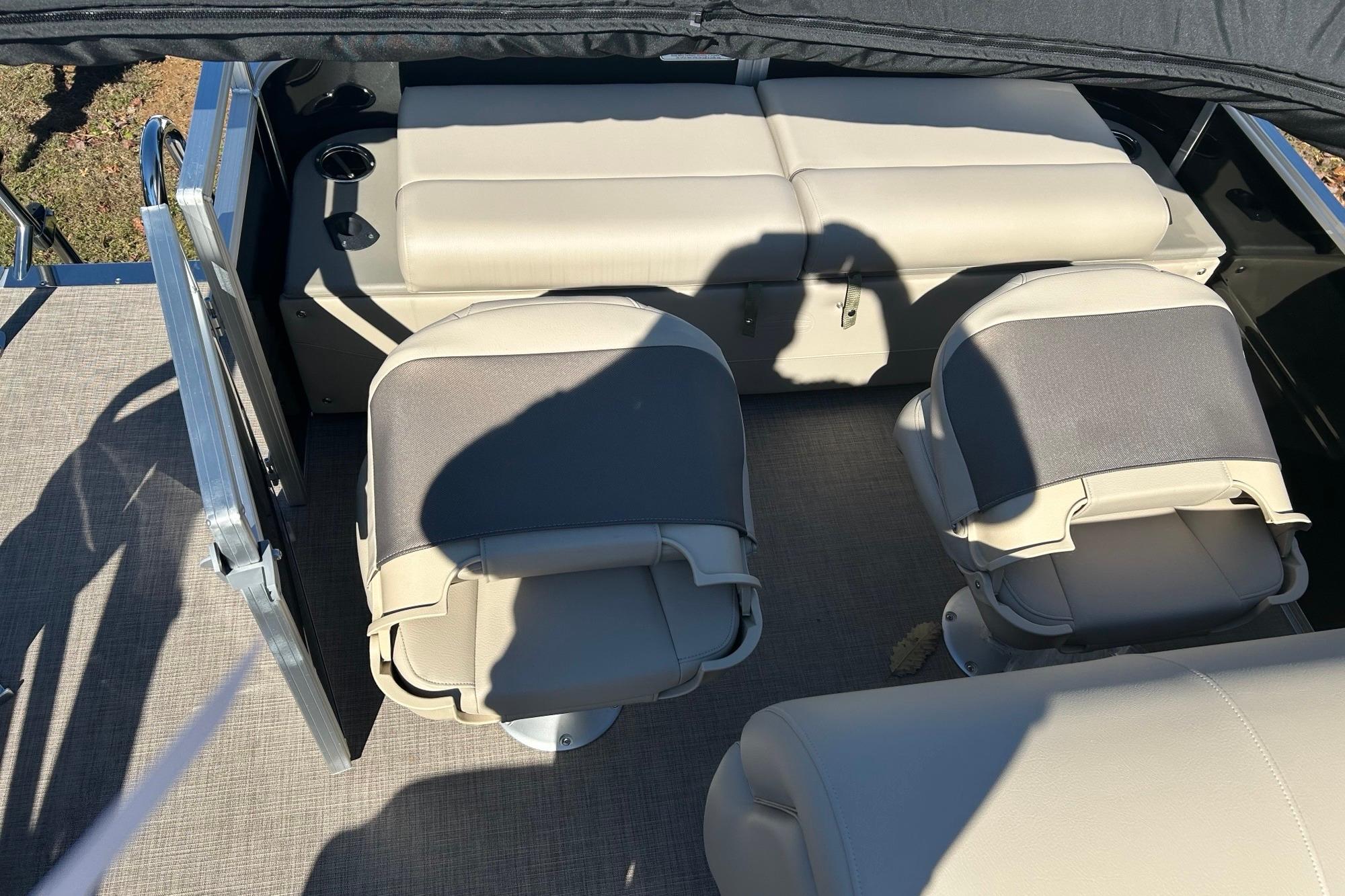 Whether you're on the water to get some fishing done or party it up with family and friends, the 2025 SPORTFISH™ 22 DLX has you covered! This SUN TRACKER® pontoon boat offers room for up to 10 passengers on its 22' deck. The anglers will love the aft fishing deck with dual swiveling fishing chairs that you can fold and remove, a lockable rod compartment, rail-mounted rod and tool holders, and an aerated livewell under the rear bench. Keep your fishing accessories organized in the tackle-storage station.