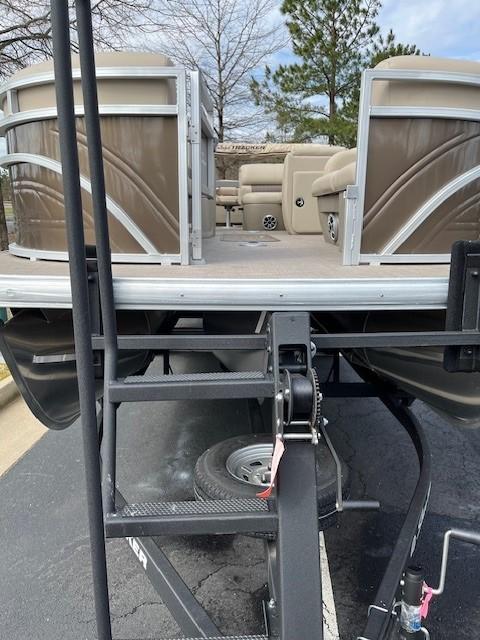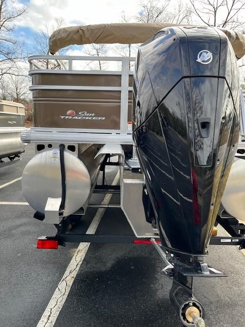 • 10' (3.05 m) SUN TRACKER® QuickLift™ Bimini top w/LED courtesy lights, storage pockets & protective boot (color-coordinated Black w/Black fencing or Sand w/Caribou fencing)