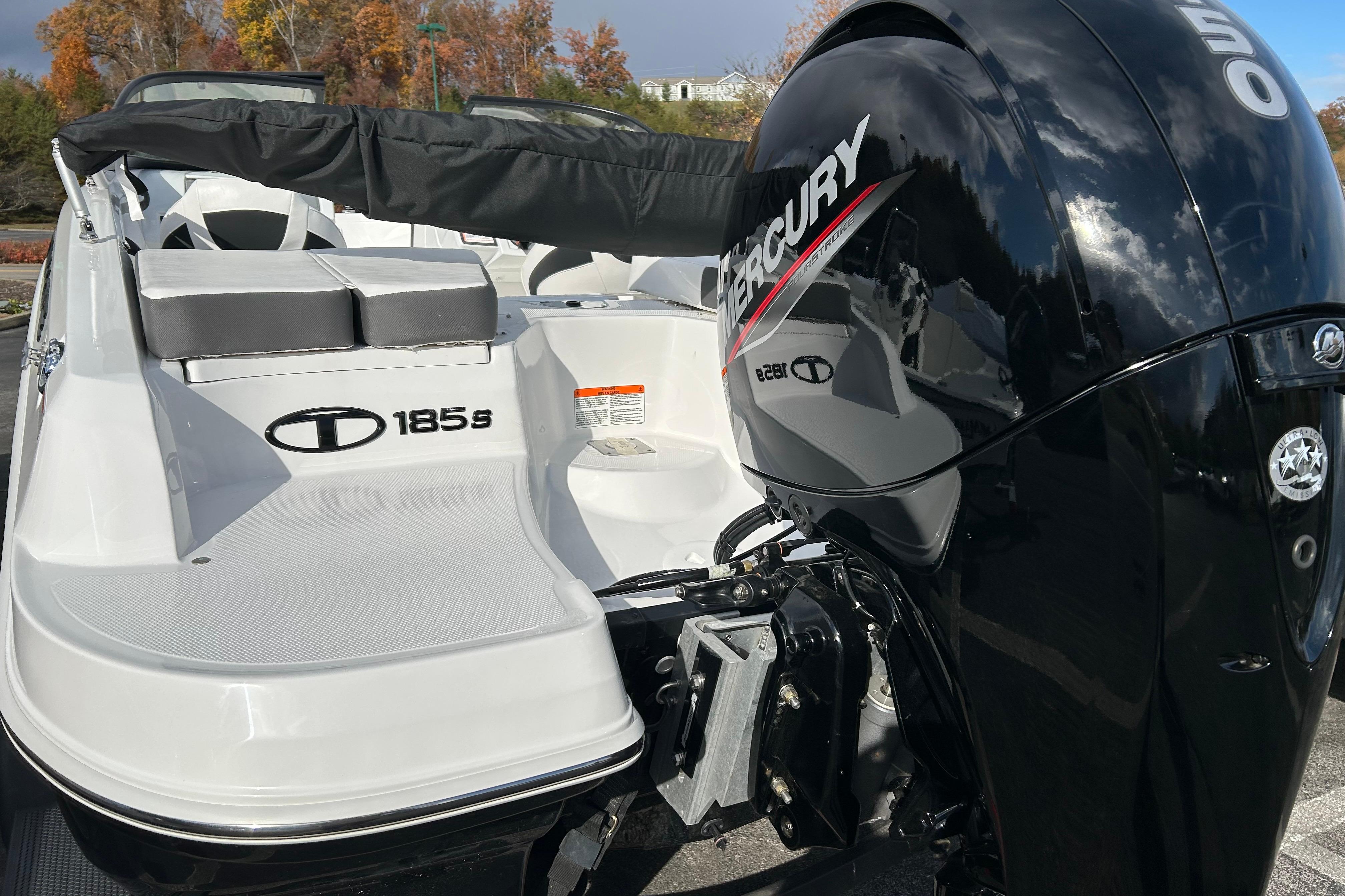 The 2025 TAHOE® 185 S comes standard with a 115hp Mercury® EXLPT Pro XS® FourStroke outboard motor and has a recommended maximum 150hp rating. This model is packaged with a trailer.