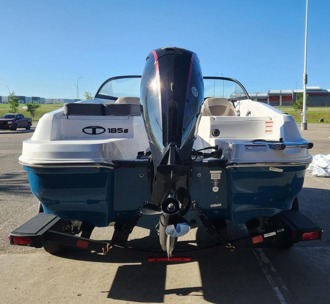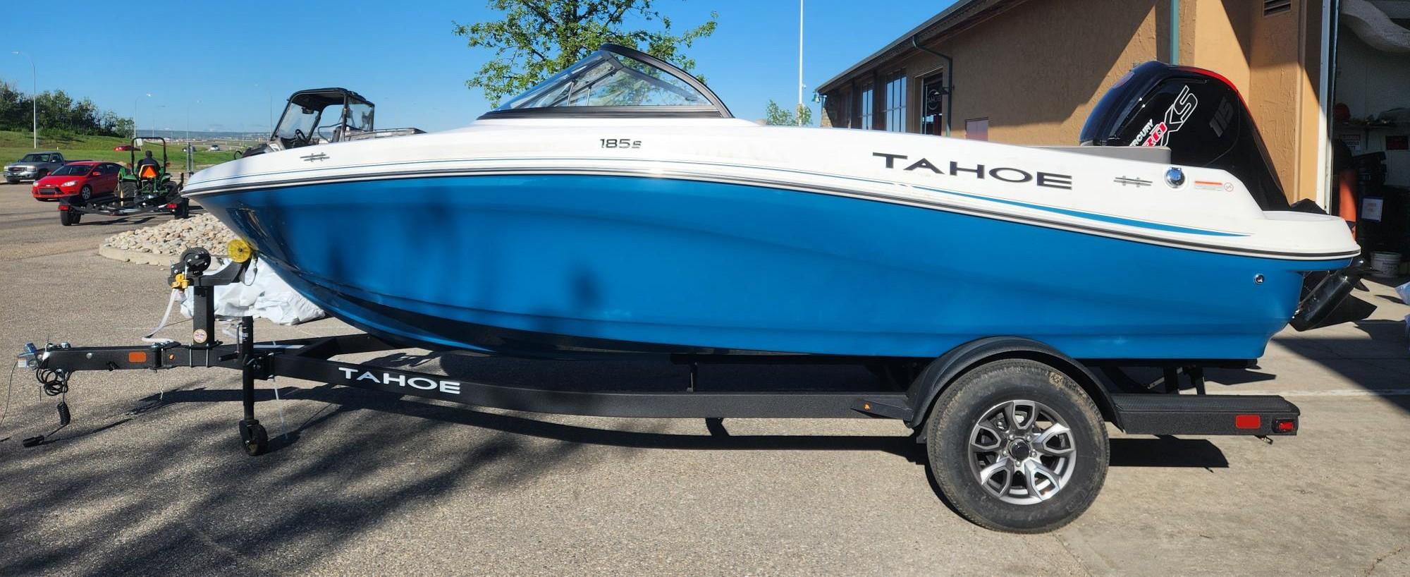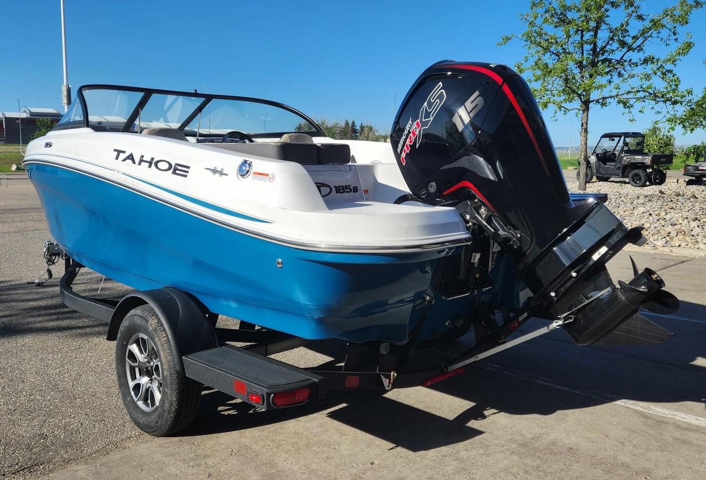 The 2025 TAHOE® 185 S comes standard with a 115hp Mercury® EXLPT Pro XS® FourStroke outboard motor and has a recommended maximum 150hp rating. This model is packaged with a trailer.