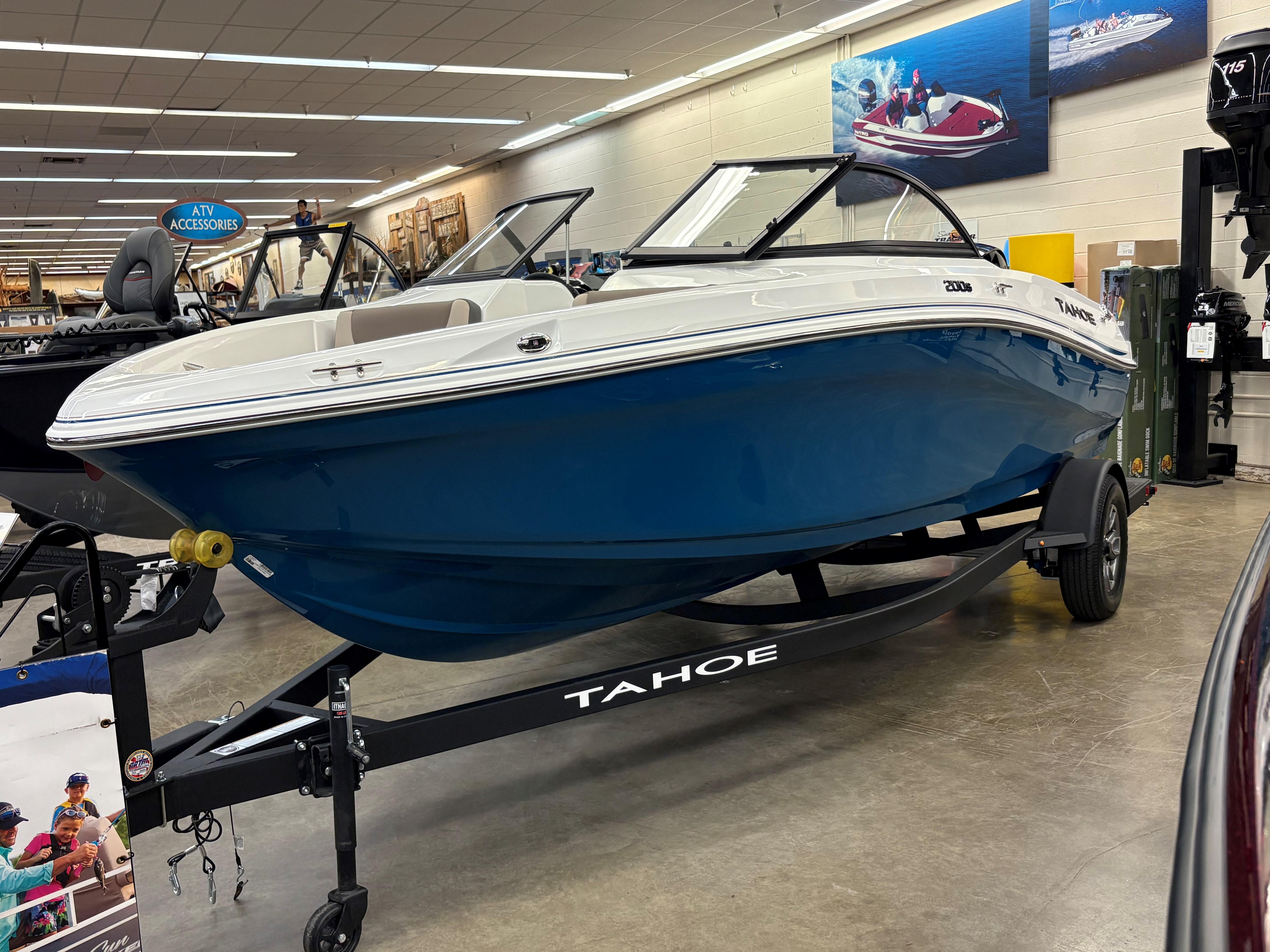 The 2025 TAHOE® 200 S comes standard with 115hp Mercury® EXLPT FourStroke outboard motor and has a recommended maximum 175hp rating. This model is packaged with a trailer.