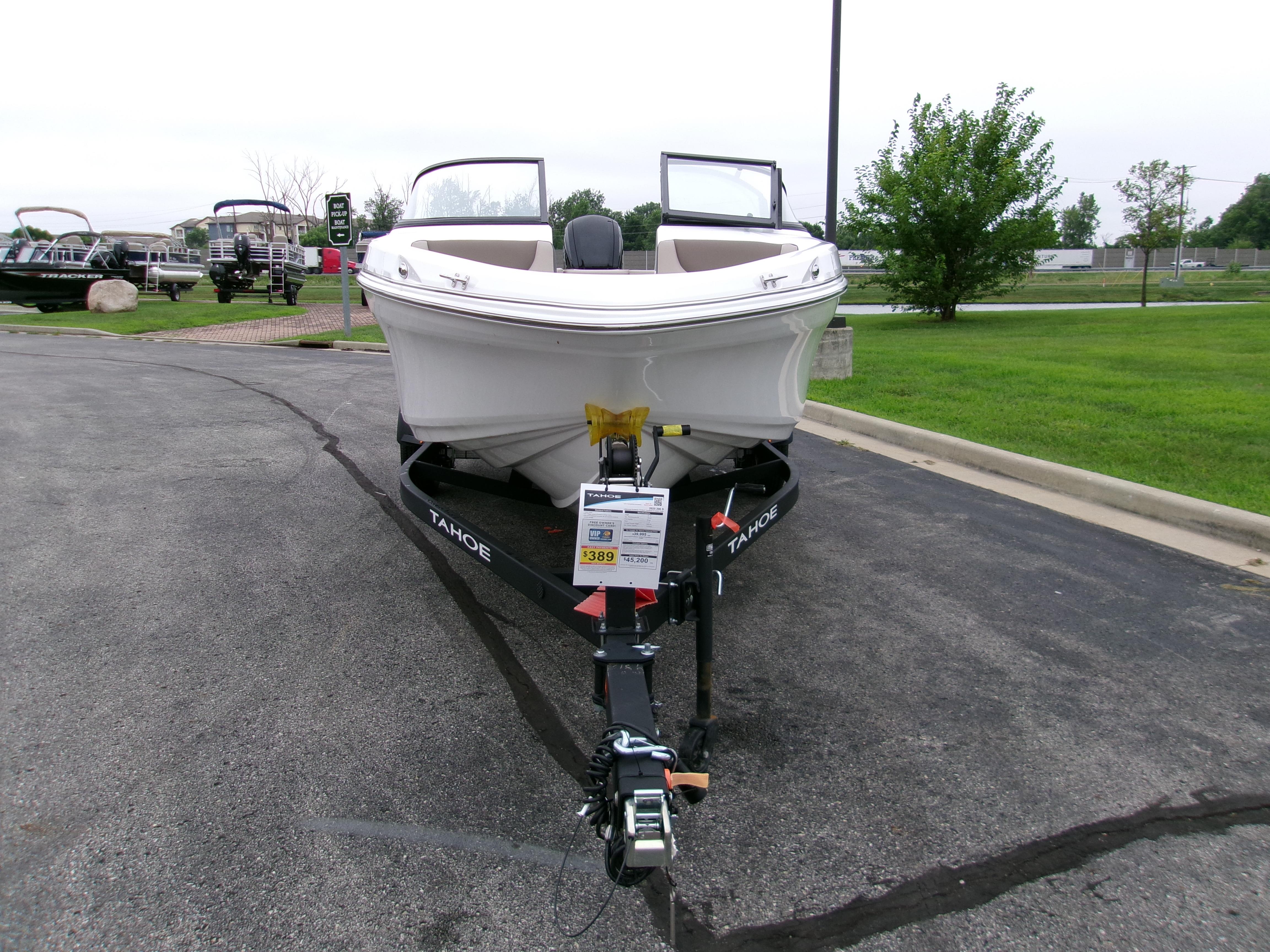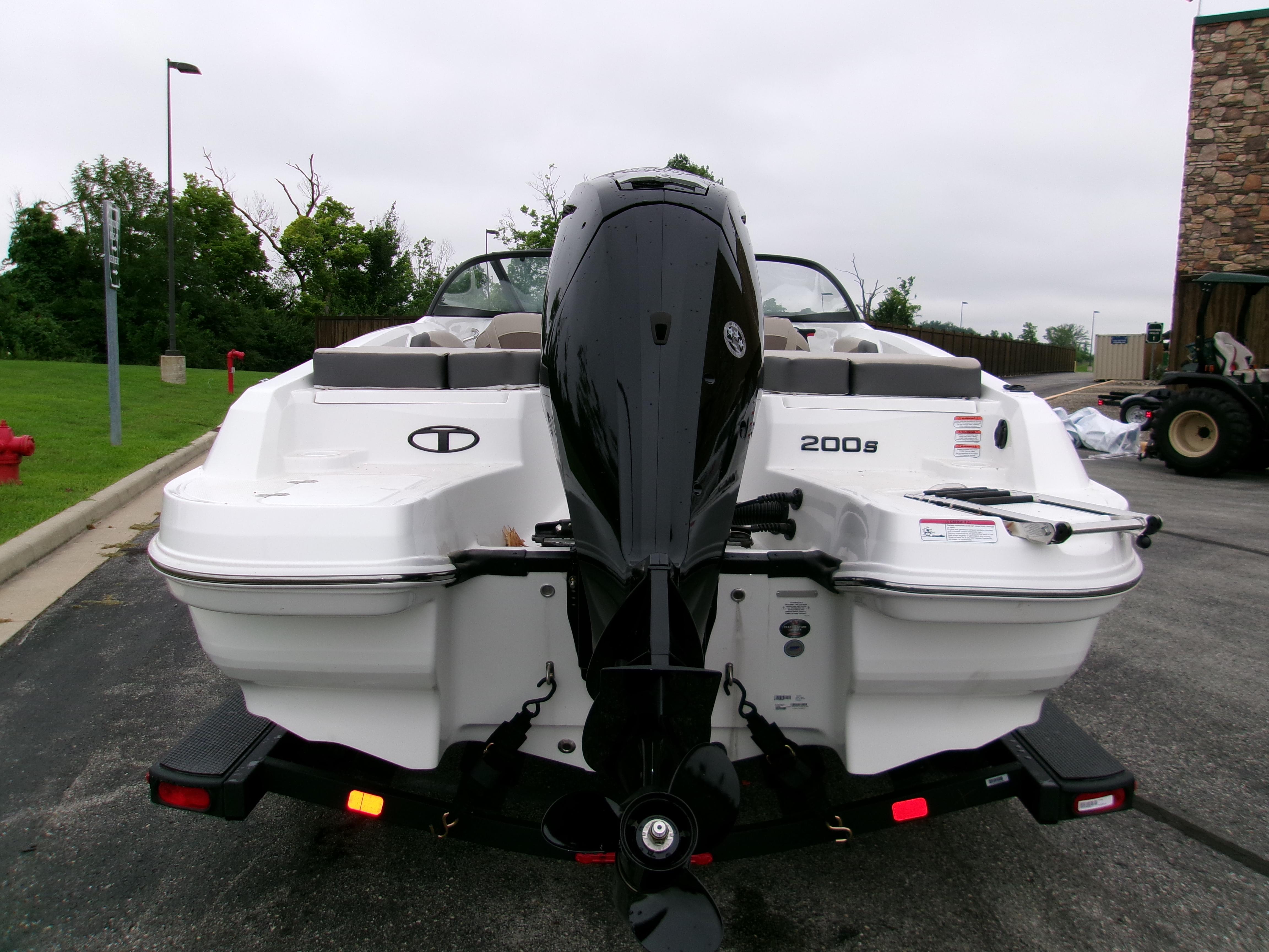 The 2025 TAHOE® 200 S comes standard with 115hp Mercury® EXLPT FourStroke outboard motor and has a recommended maximum 175hp rating. This model is packaged with a trailer.