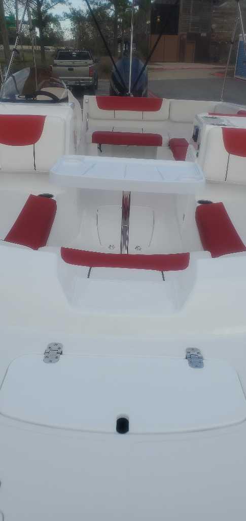 • NEW Bimini top w/aluminum frame & boot—Black (Black hulls), Charcoal (Trigger Gray hull), Harbor Blue (Harbor Blue hull), Red (Red hull) or Sand (White hull)