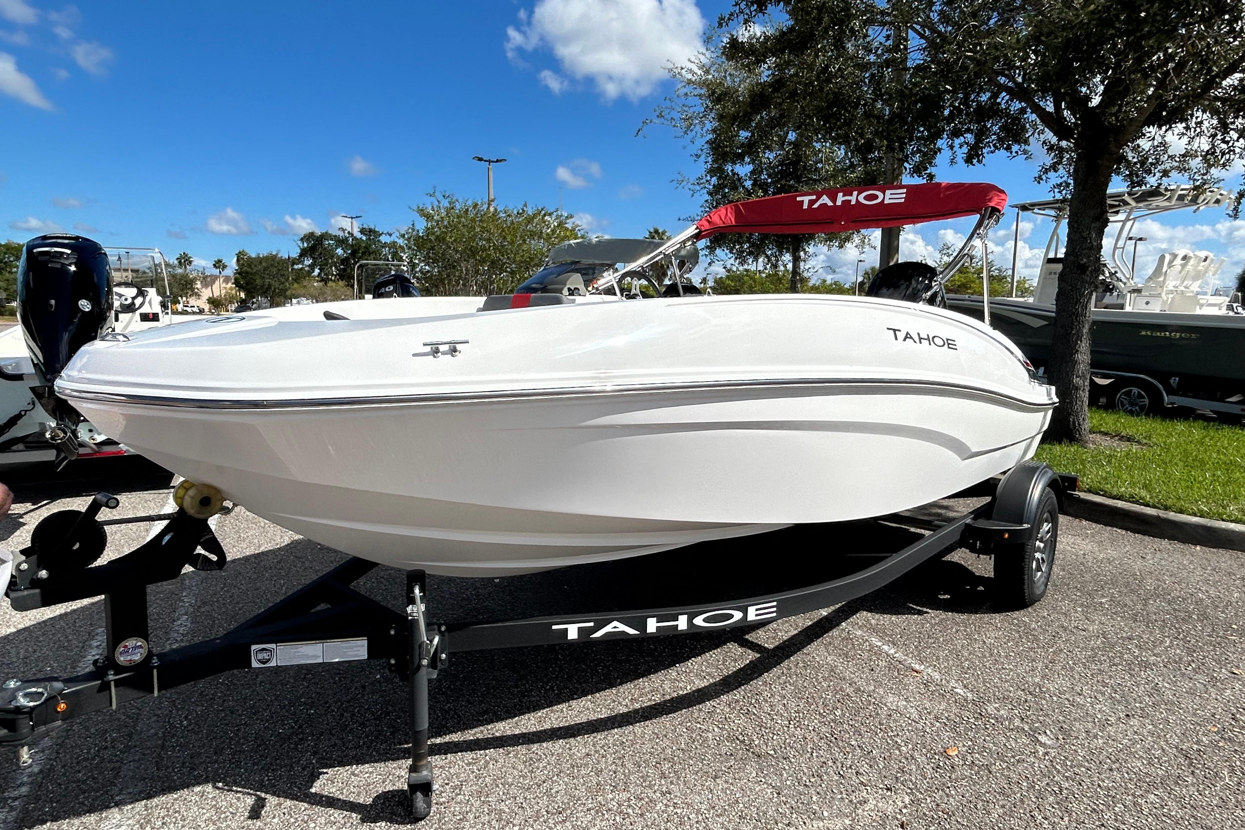 Wade into the world of sport boats with the 2025 TAHOE® T16! This affordable introduction to the TAHOE® family is a 6-passenger sports boat built to perform. Its POWERGLIDE® hull design features HYDROSTEP strakes that deliver exciting and stable riding experiences. Use the 7" TAHOE CRUISE touch screen to monitor GPS-accurate speed, water depth, your motor's vitals, and more. Opt for the available TurboSwing® to prepare your T16 for watersports.
