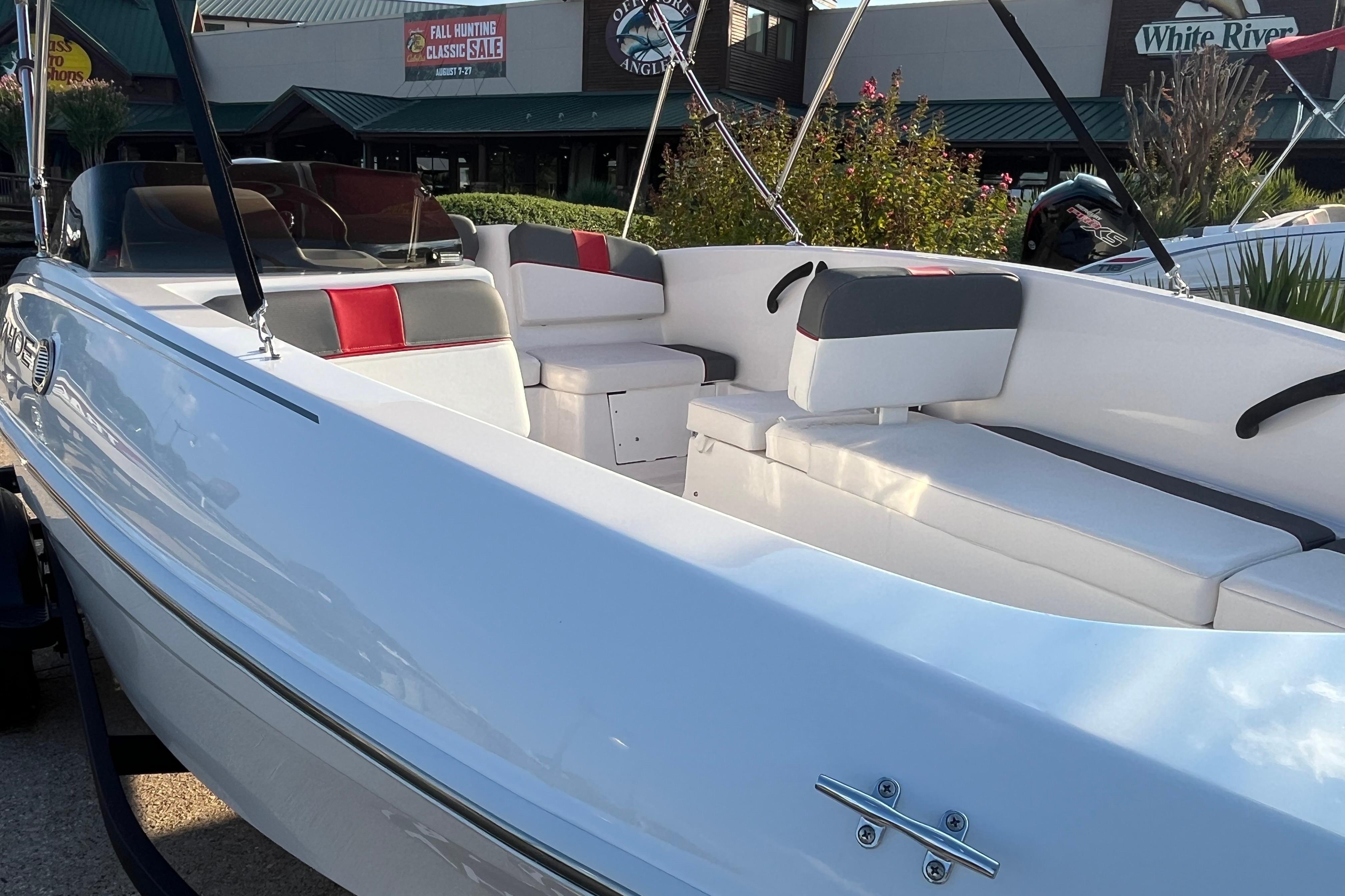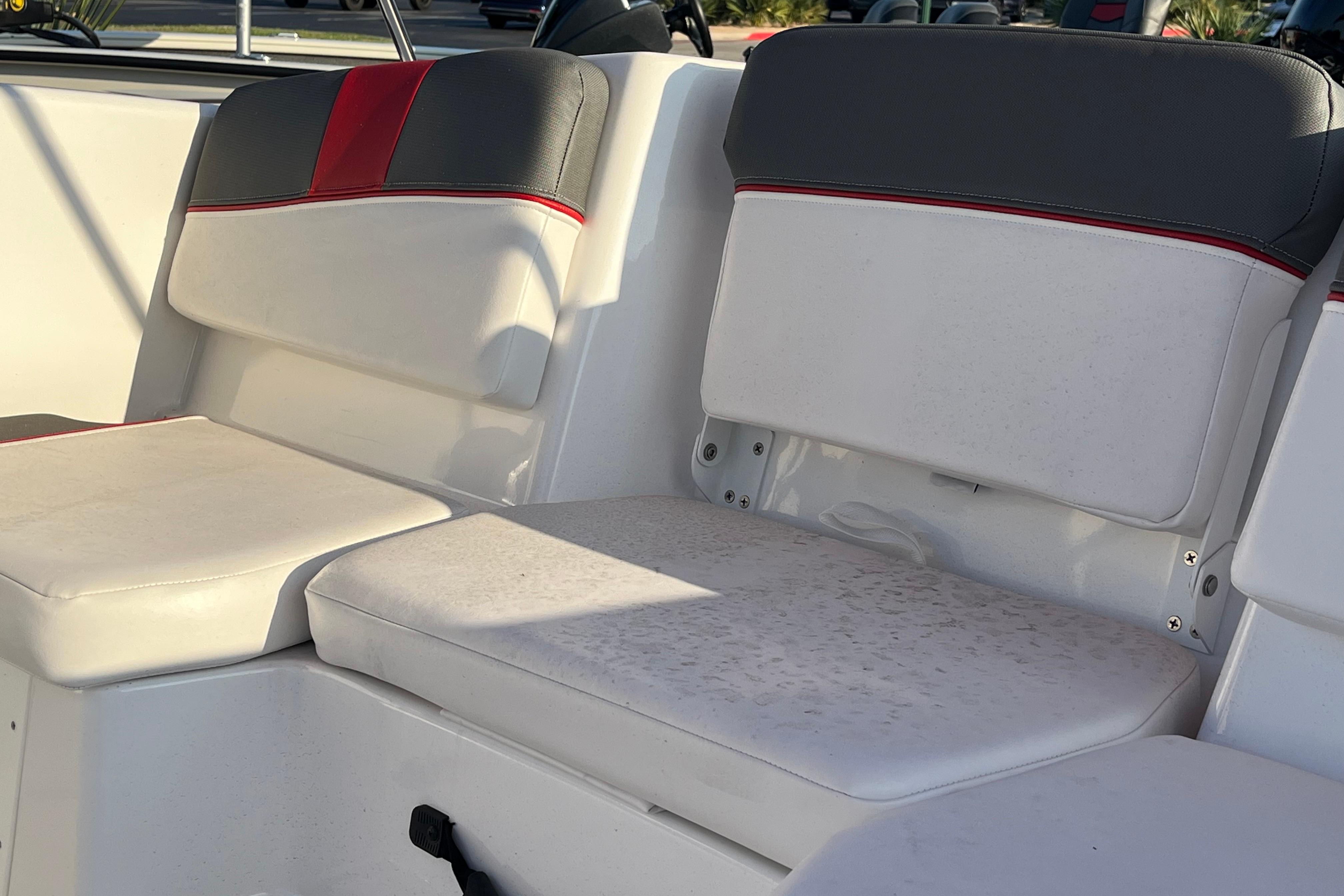 Relax on the water in this boat's midship bench seating and twin forward lounges with under-seat storage. The bow seats have reversible backrests that turn them into spotter seats. Lay out on the aft sun pad when you find your cove. The 4-step telescoping aft boarding ladder makes it easy to get back on the swim platform after diving into the water. Flip-up seat cushions and flip-down seat backs let passengers board the boat without stepping on upholstery. Claim 1 of the 9 drink holders, find your song on the 2-speaker Kicker® stereo, and search for excitement on the water!