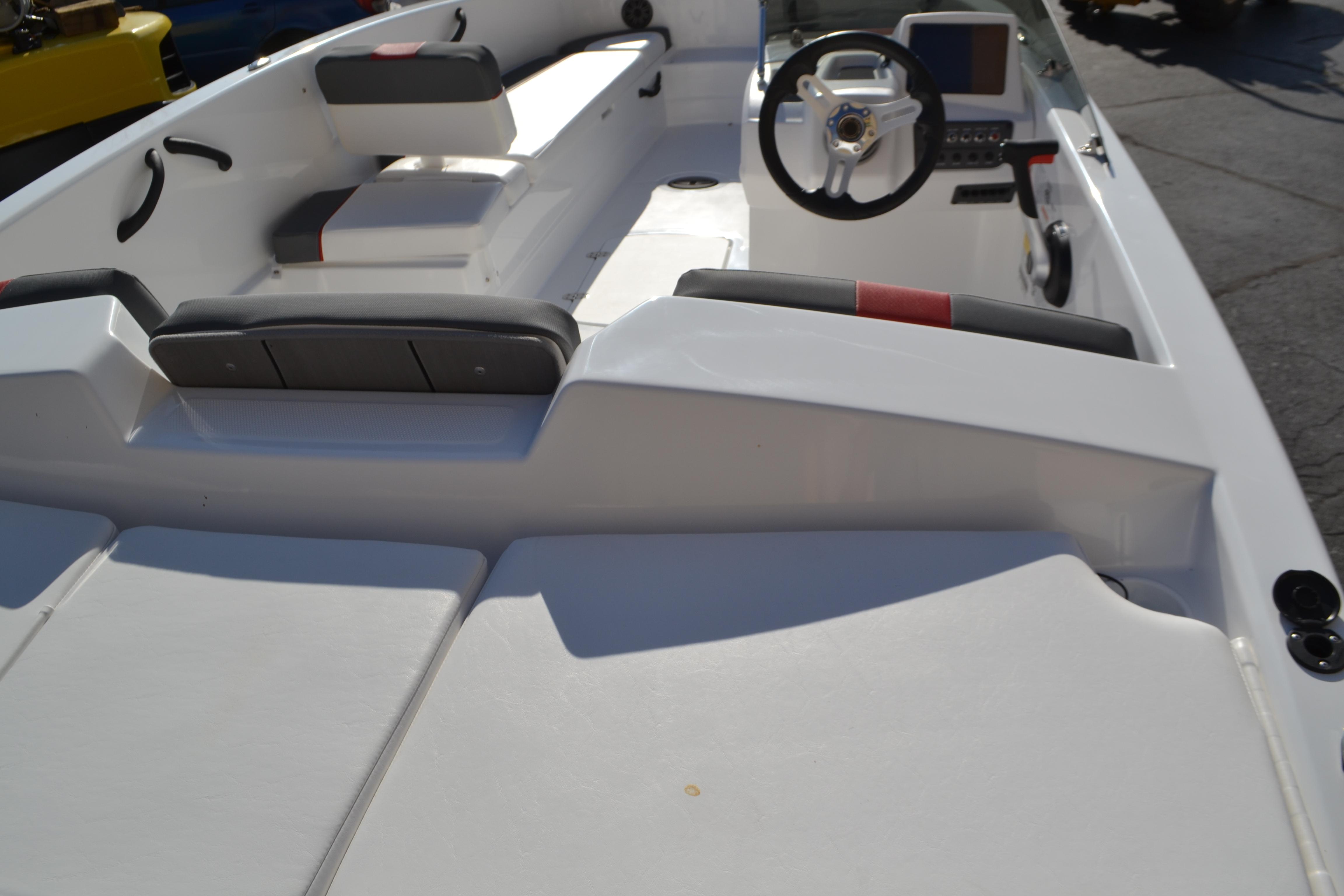 The aft swim platform with a 4-step telescoping boarding ladder makes it easy to jump in and out of the water. Find your favorite seat in the 3-across midship bench, dual forward lounges, or aft sun pad. The port bow backrest can be reversed for forward or aft seating and its cushion can even be flipped up so passengers don't step on the upholstery as they board. Add the optional bimini top to create the perfect lake-day boat your friends and family will love!