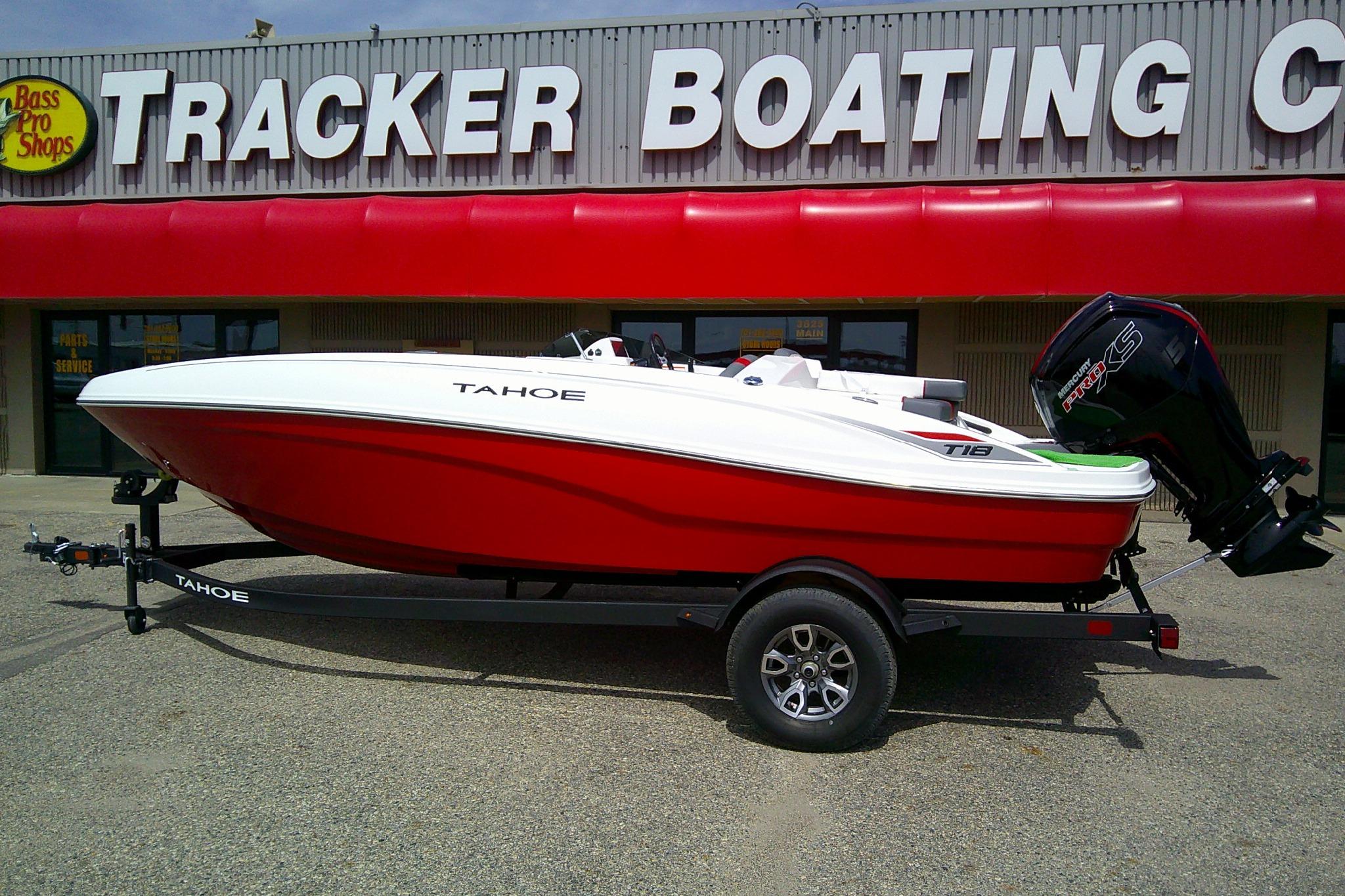 The 2025 TAHOE® T18 comes standard with a 90hp Mercury® ELPT FourStroke outboard motor and has a recommended maximum 115hp rating. This model is packaged with a trailer.