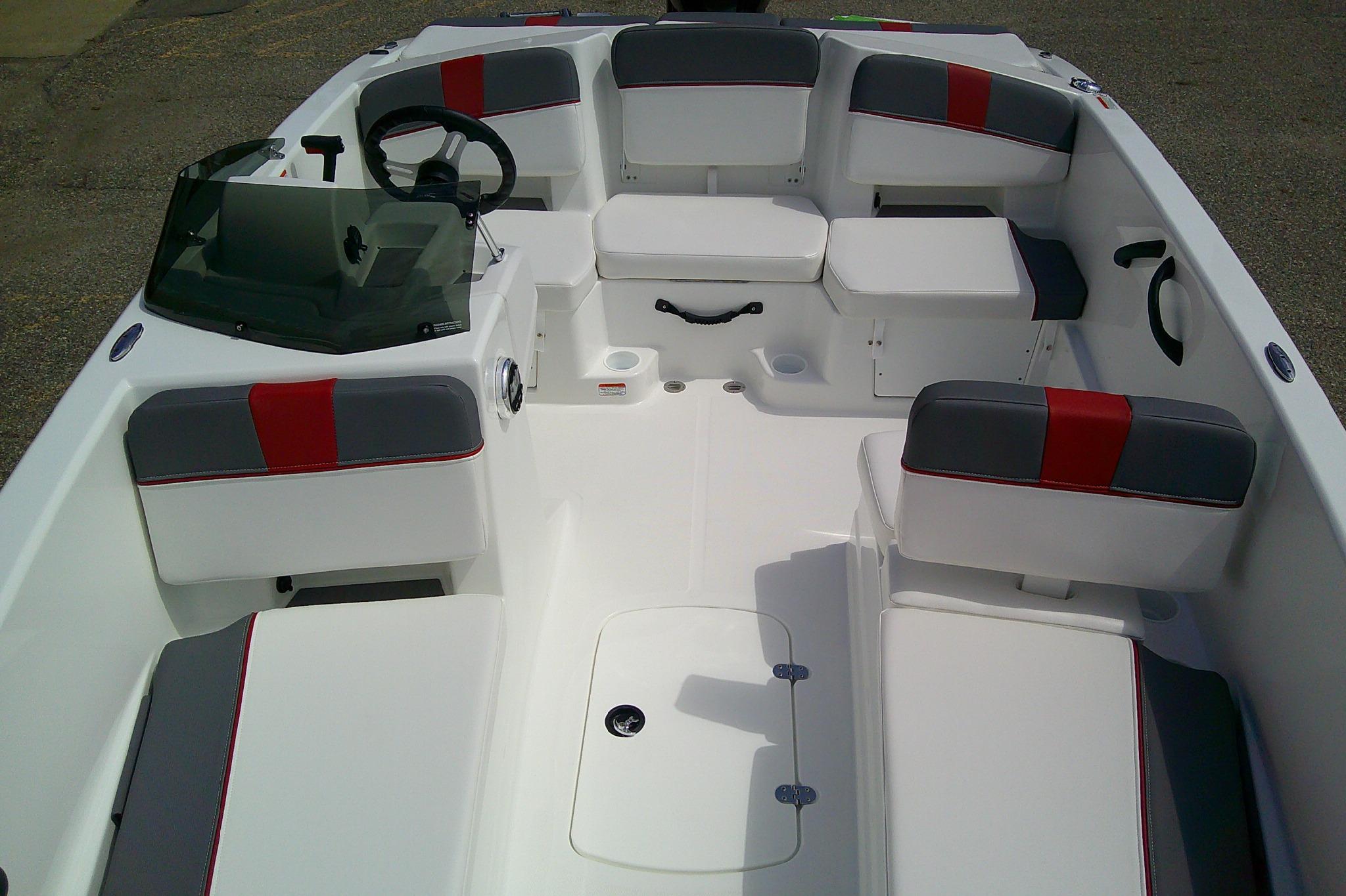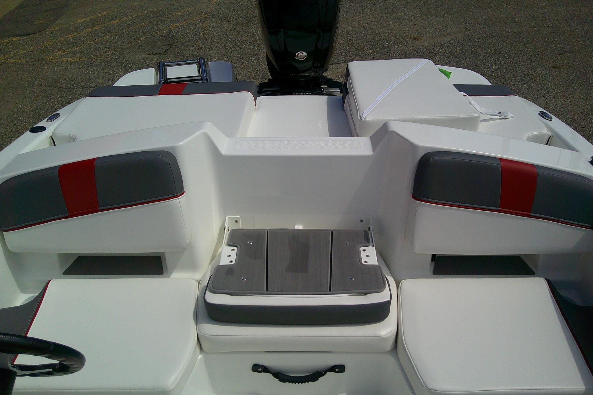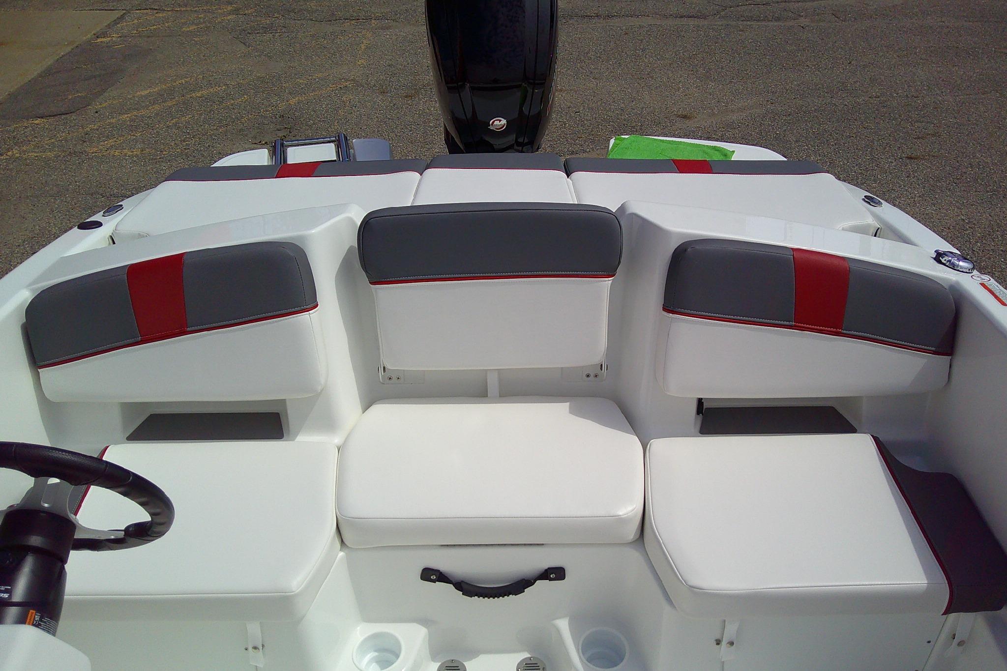 The aft swim platform with a 4-step telescoping boarding ladder makes it easy to jump in and out of the water. Find your favorite seat in the 3-across midship bench, dual forward lounges, or aft sun pad. The port bow backrest can be reversed for forward or aft seating and its cushion can even be flipped up so passengers don't step on the upholstery as they board. Add the optional bimini top to create the perfect lake-day boat your friends and family will love!