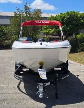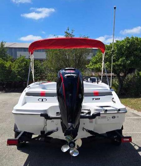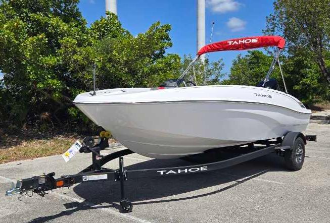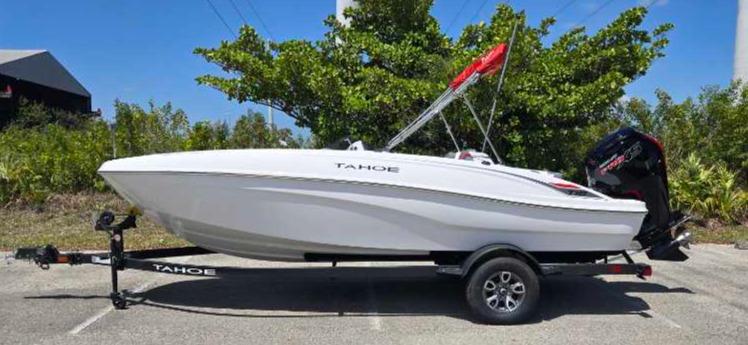 The 2025 TAHOE® T18 comes standard with a 90hp Mercury® ELPT FourStroke outboard motor and has a recommended maximum 115hp rating. This model is packaged with a trailer.