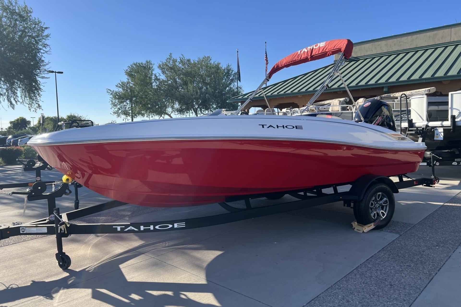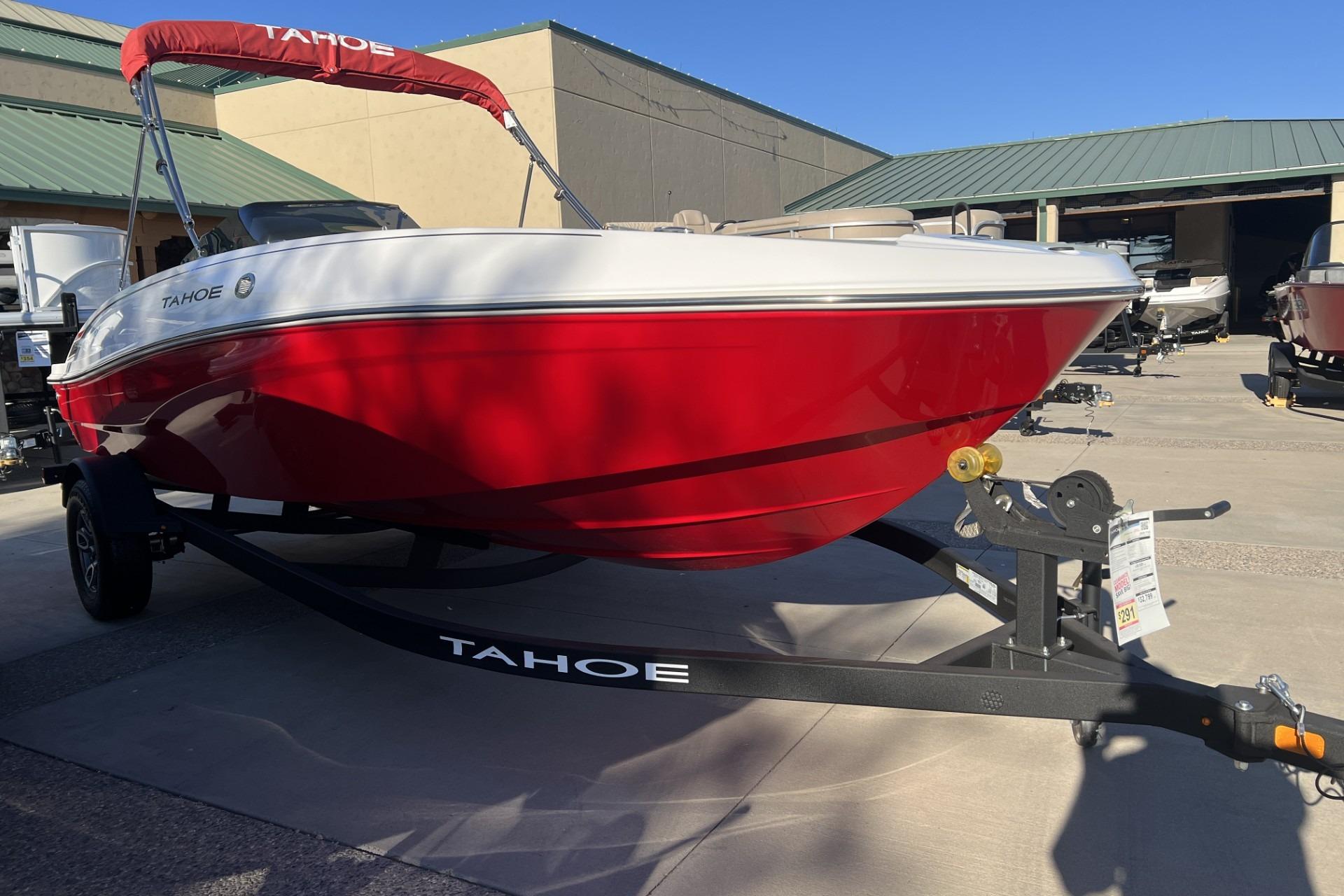Add some full-throttle excitement to your lake days with the 2025 TAHOE® T18! This 9-passenger midsize runabout boat is built for performance, complete with a POWERGLIDE® hull with HYDROSTEP strakes. The pilot's console features a 7" touch screen that delivers information such as motor vitals, speed, and depth. Play your adventure's soundtrack through the 4-speaker Kicker® stereo as you pull tubes, skiers, and