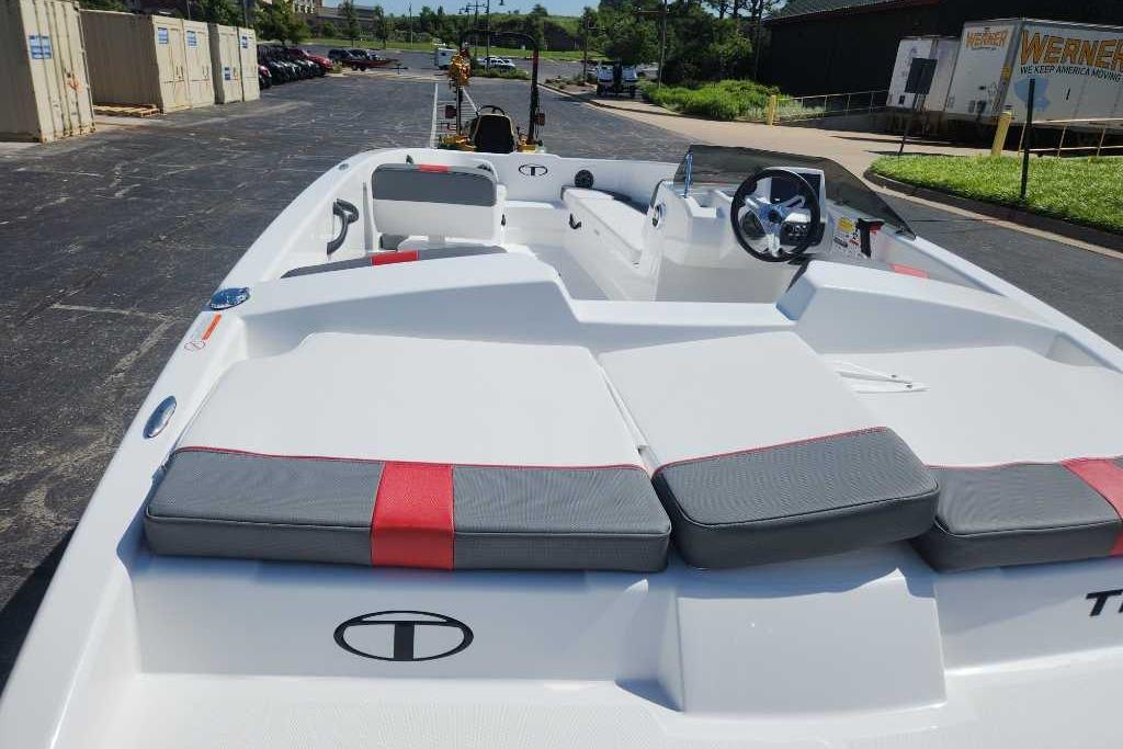 The 2025 TAHOE® T18 comes standard with a 90hp Mercury® ELPT FourStroke outboard motor and has a recommended maximum 115hp rating. This model is packaged with a trailer.