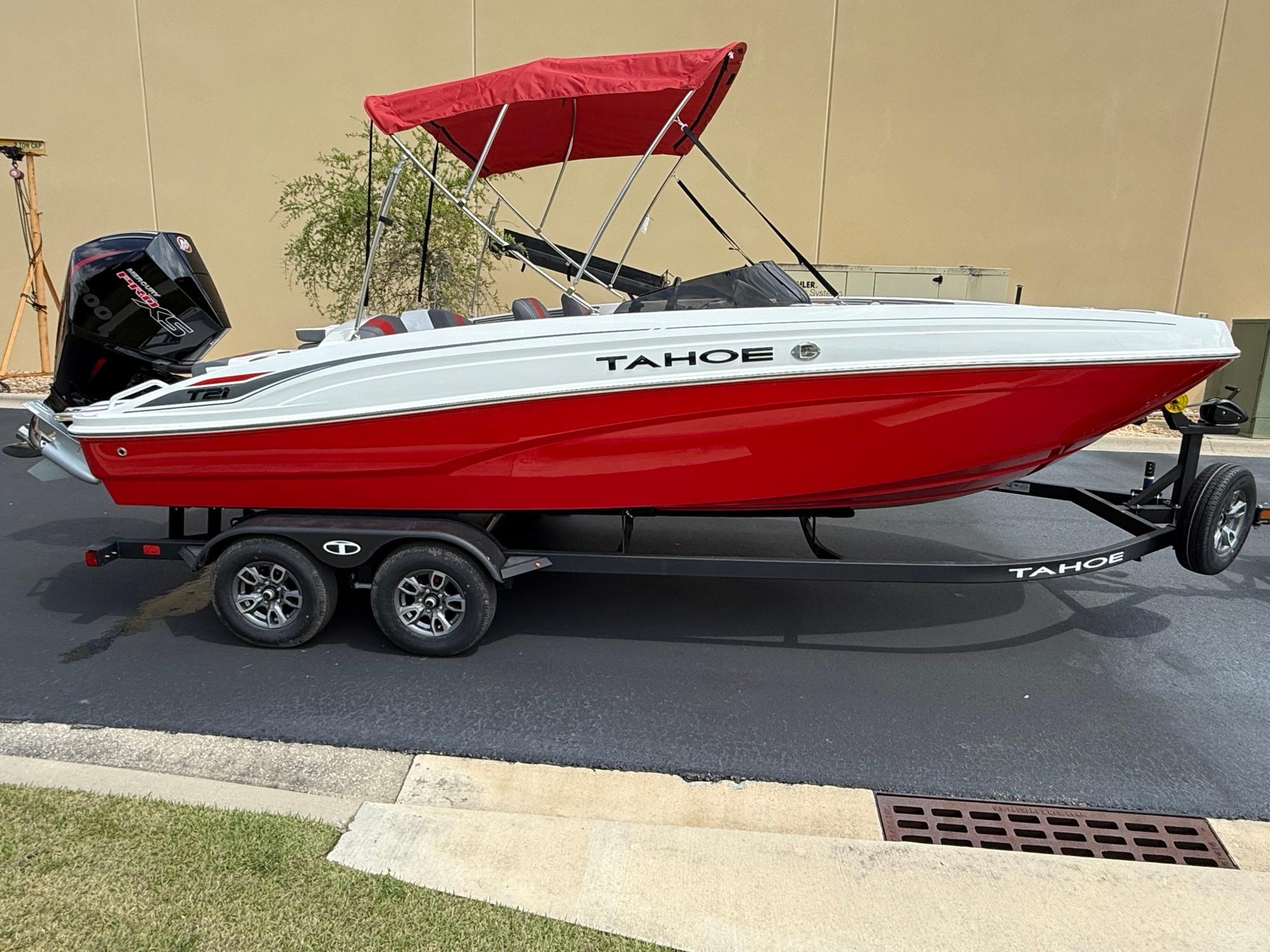 The 2025 TAHOE® T21 comes standard with a 150hp Mercury® XL Pro XS® FourStroke outboard motor and has a recommended maximum 200hp rating. This model is packaged with a trailer.