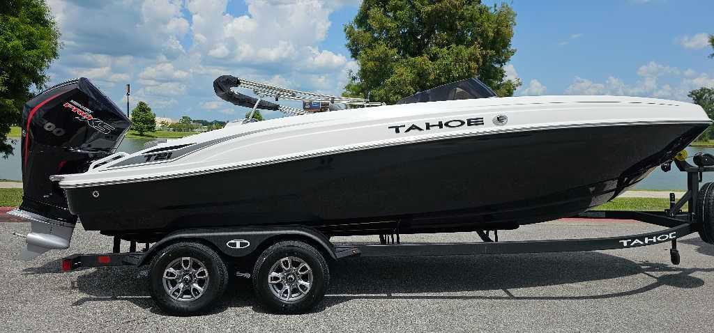 The 2025 TAHOE® T21 comes standard with a 150hp Mercury® XL Pro XS® FourStroke outboard motor and has a recommended maximum 200hp rating. This model is packaged with a trailer.