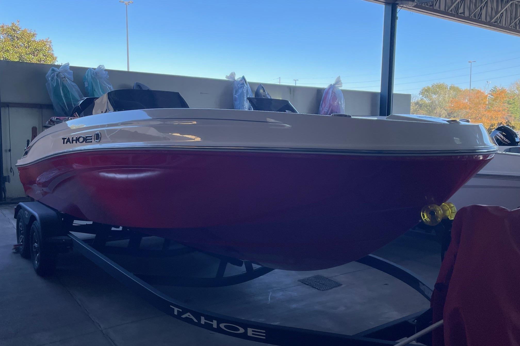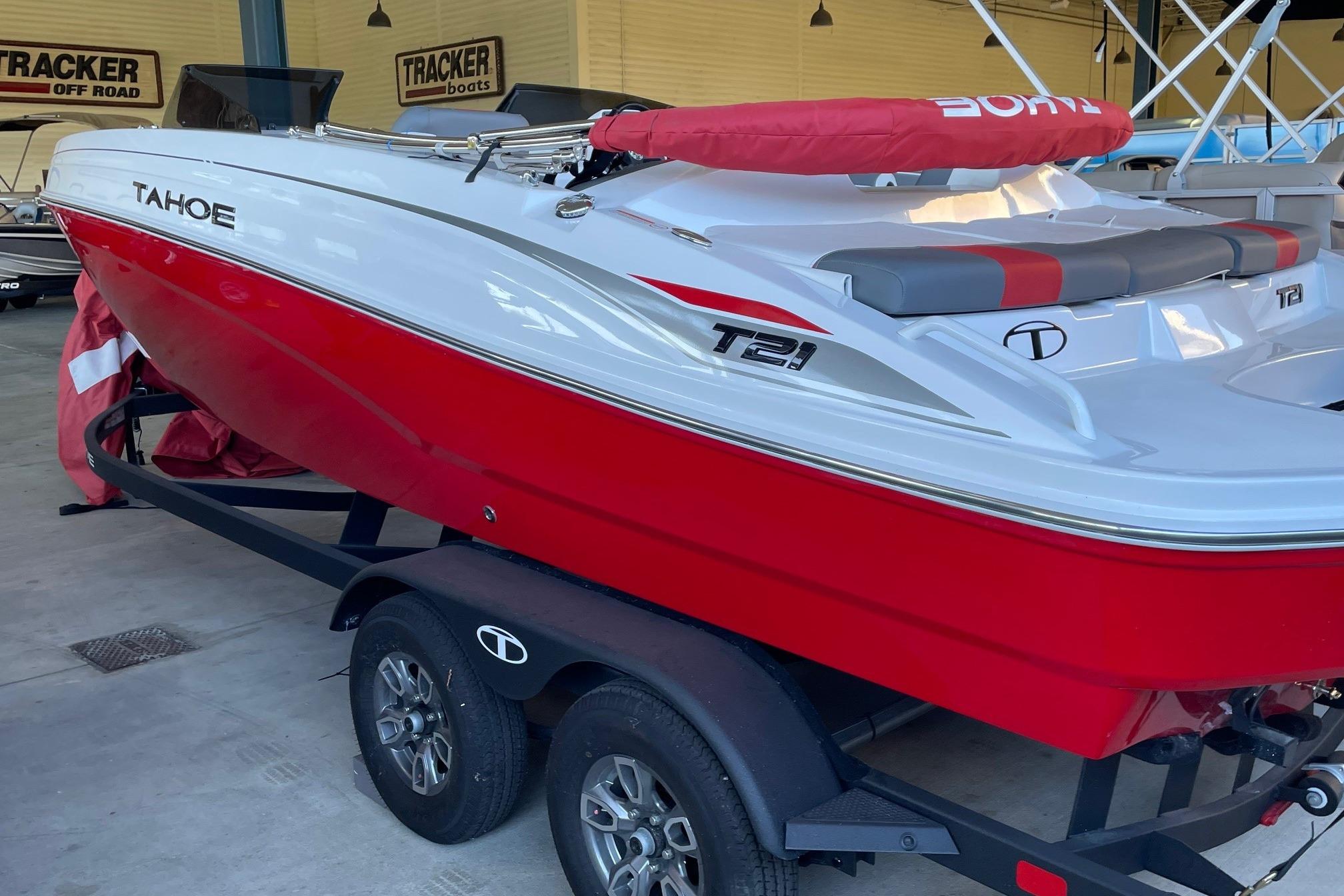 The 2025 TAHOE® T21 comes standard with a 150hp Mercury® XL Pro XS® FourStroke outboard motor and has a recommended maximum 200hp rating. This model is packaged with a trailer.