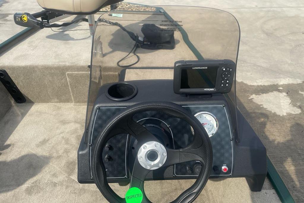 • 1-piece rotomolded console w/tinted windscreen, integrated livewell, drink holder & 12V outlet