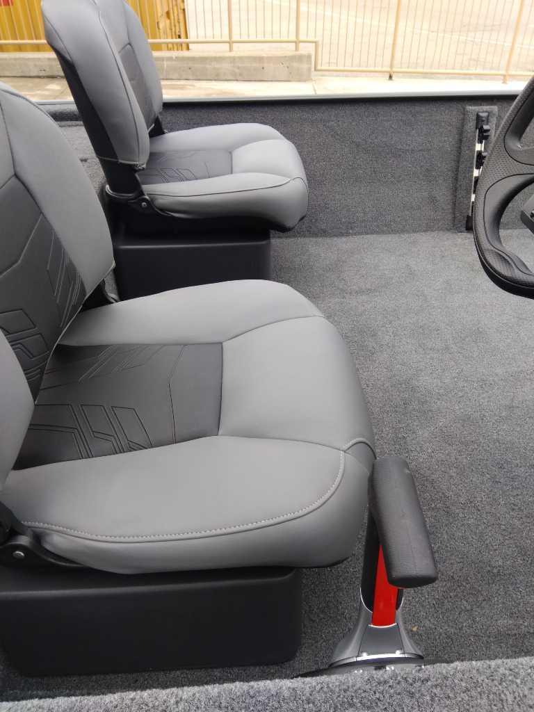 • 2 folding fishing seats w/contoured hinges & snap-off cushions