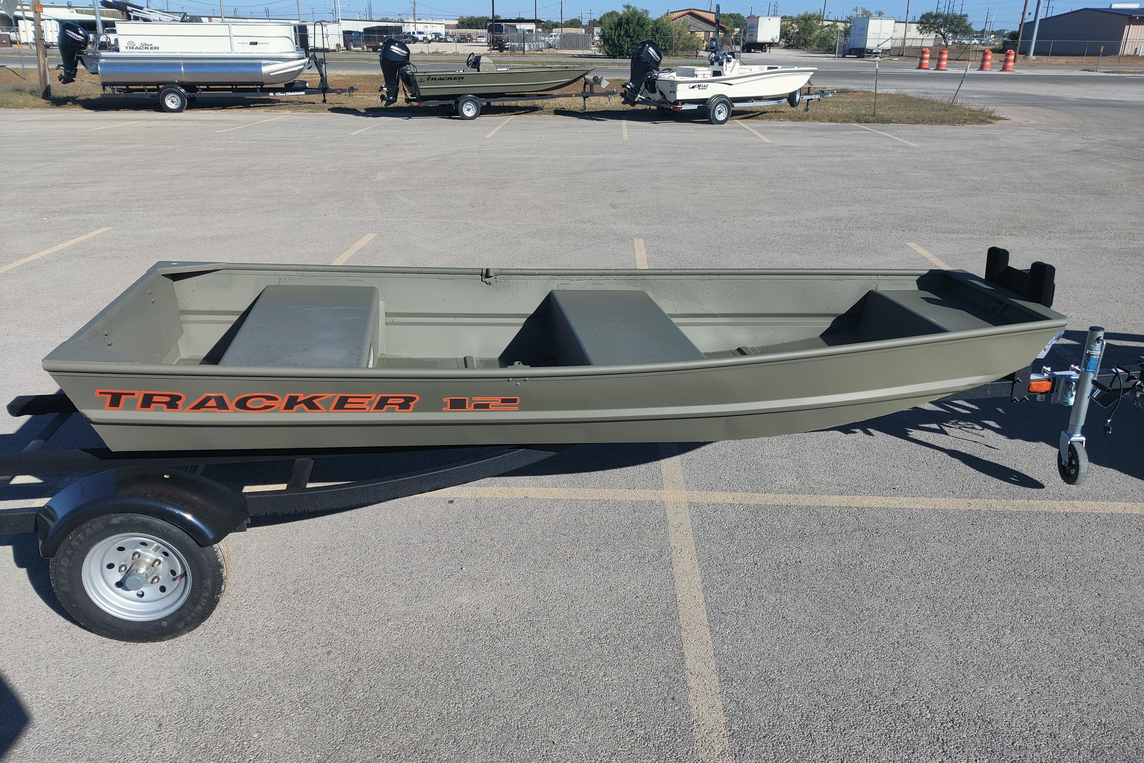 Step aboard the TRACKER GRIZZLY 12 jon boat, with the standout feature of the TRACKER GRIZZLY 12 jon boat lies in its all-welded hull design, setting it apart with unmatched durability and structural integrity. Unlike boats with riveted hulls that may develop leaks or weak points over time, the all-welded construction of the GRIZZLY 12 forms a solid and seamless foundation. This sturdy design not only prolongs the boat's lifespan but also enhances its performance on the water, ensuring a smooth and stable ride across diverse conditions.