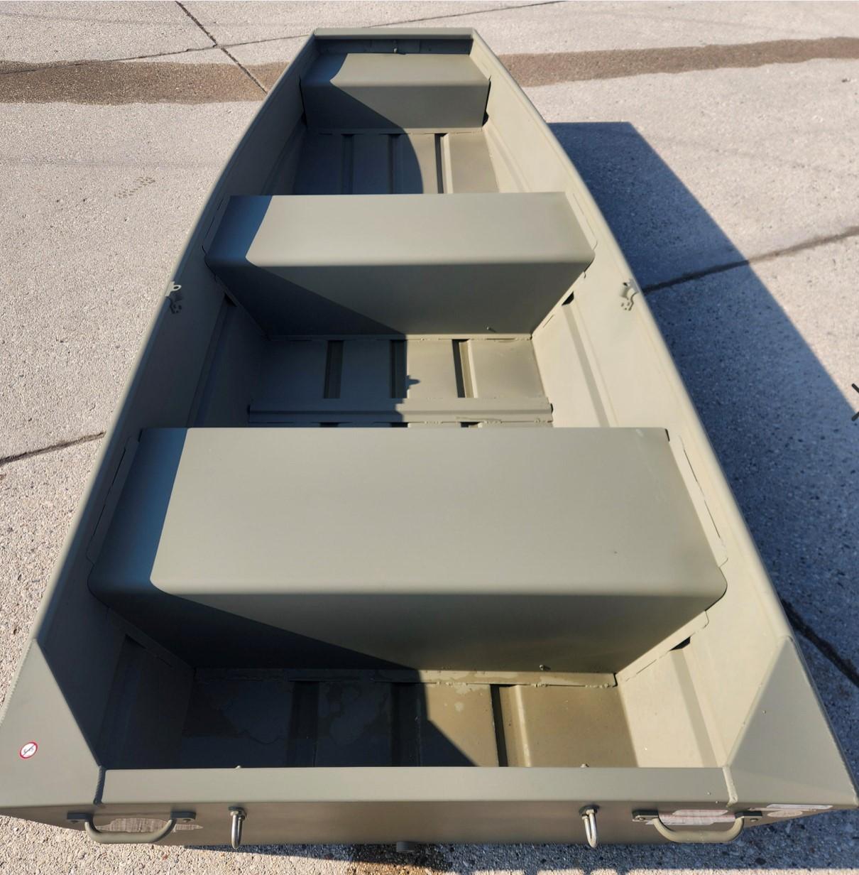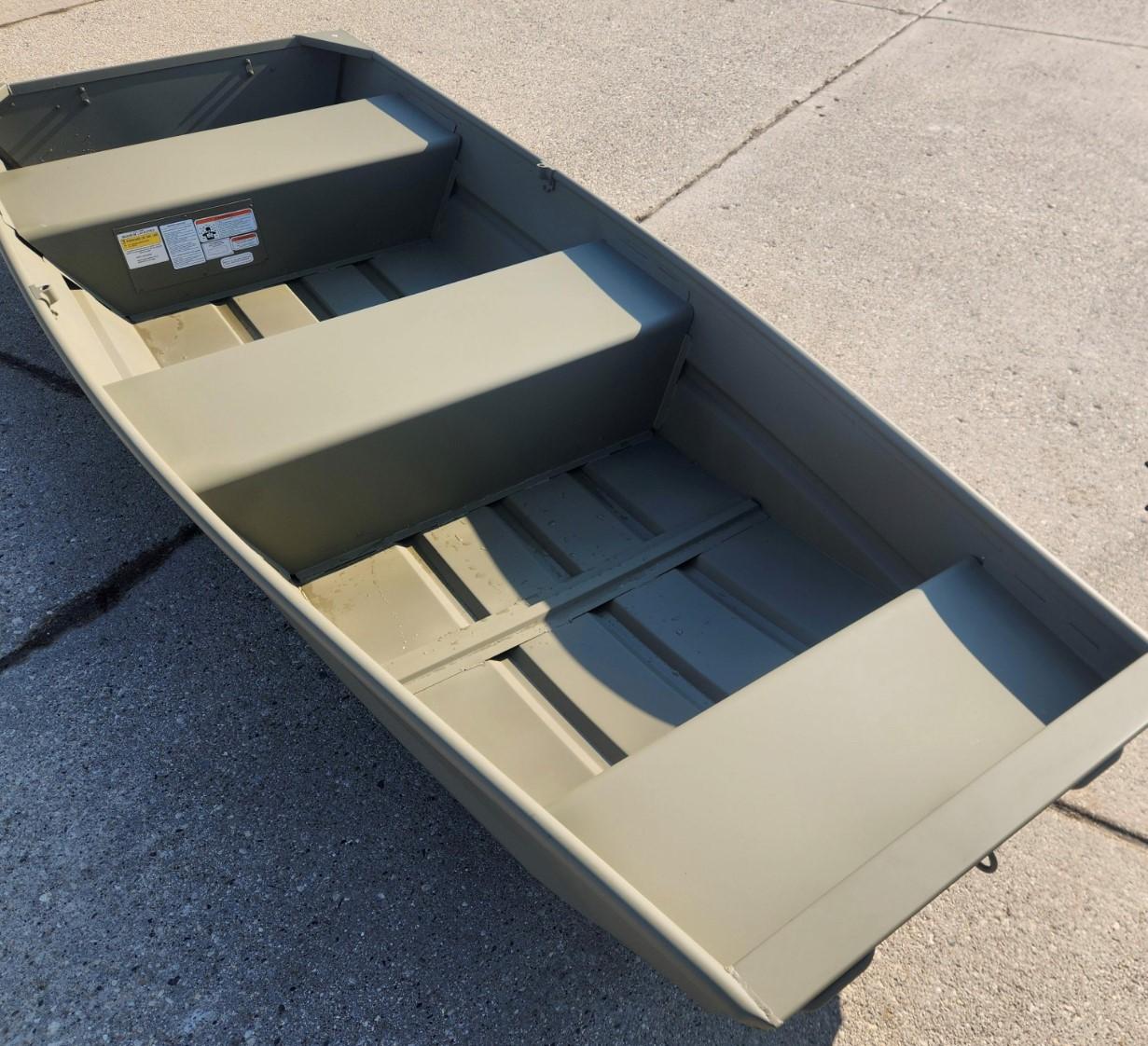 Step aboard the TRACKER GRIZZLY 12 jon boat, with the standout feature of the TRACKER GRIZZLY 12 jon boat lies in its all-welded hull design, setting it apart with unmatched durability and structural integrity. Unlike boats with riveted hulls that may develop leaks or weak points over time, the all-welded construction of the GRIZZLY 12 forms a solid and seamless foundation. This sturdy design not only prolongs the boat's lifespan but also enhances its performance on the water, ensuring a smooth and stable ride across diverse conditions.