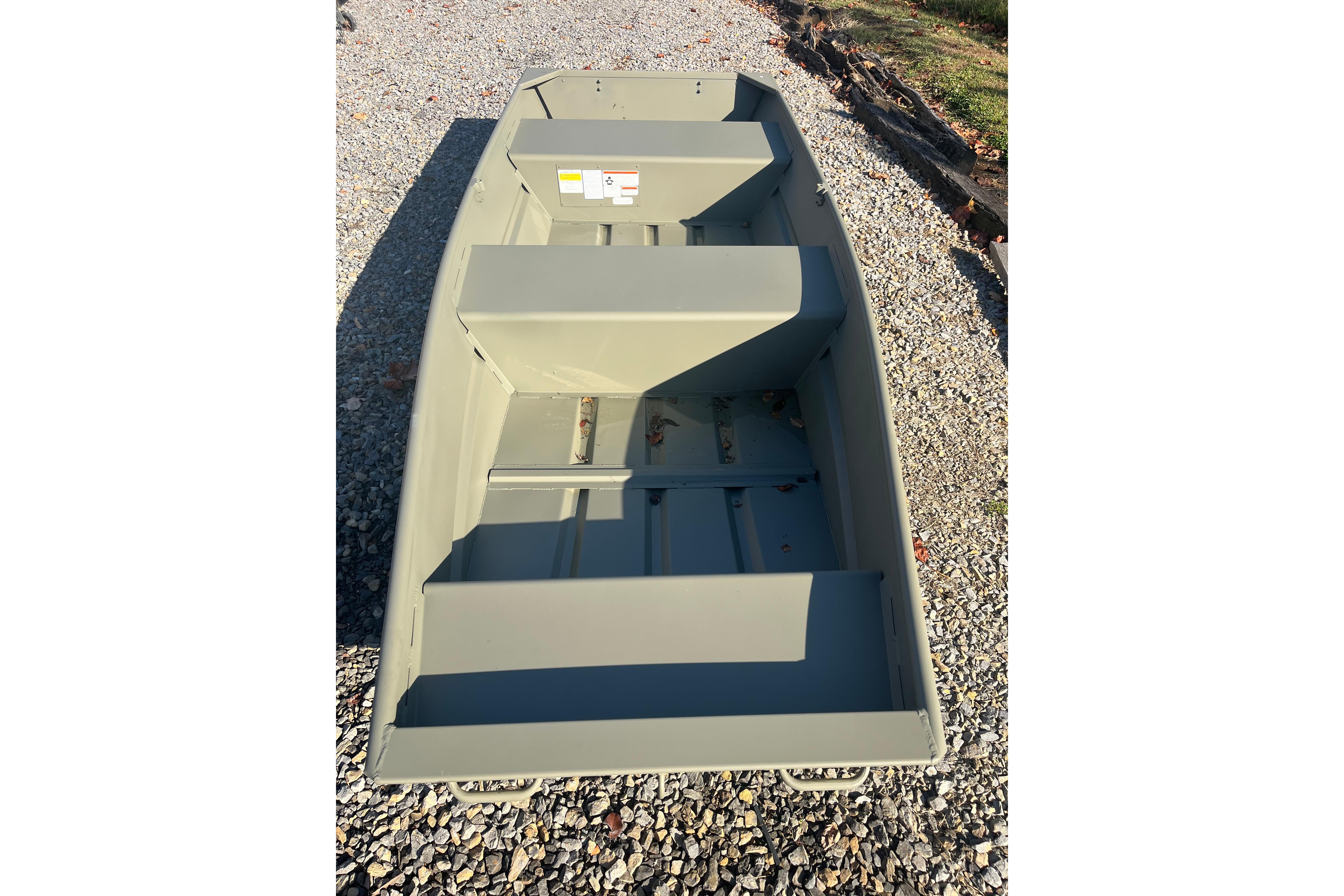 Step aboard the TRACKER GRIZZLY 12 jon boat, with the standout feature of the TRACKER GRIZZLY 12 jon boat lies in its all-welded hull design, setting it apart with unmatched durability and structural integrity. Unlike boats with riveted hulls that may develop leaks or weak points over time, the all-welded construction of the GRIZZLY 12 forms a solid and seamless foundation. This sturdy design not only prolongs the boat's lifespan but also enhances its performance on the water, ensuring a smooth and stable ride across diverse conditions.