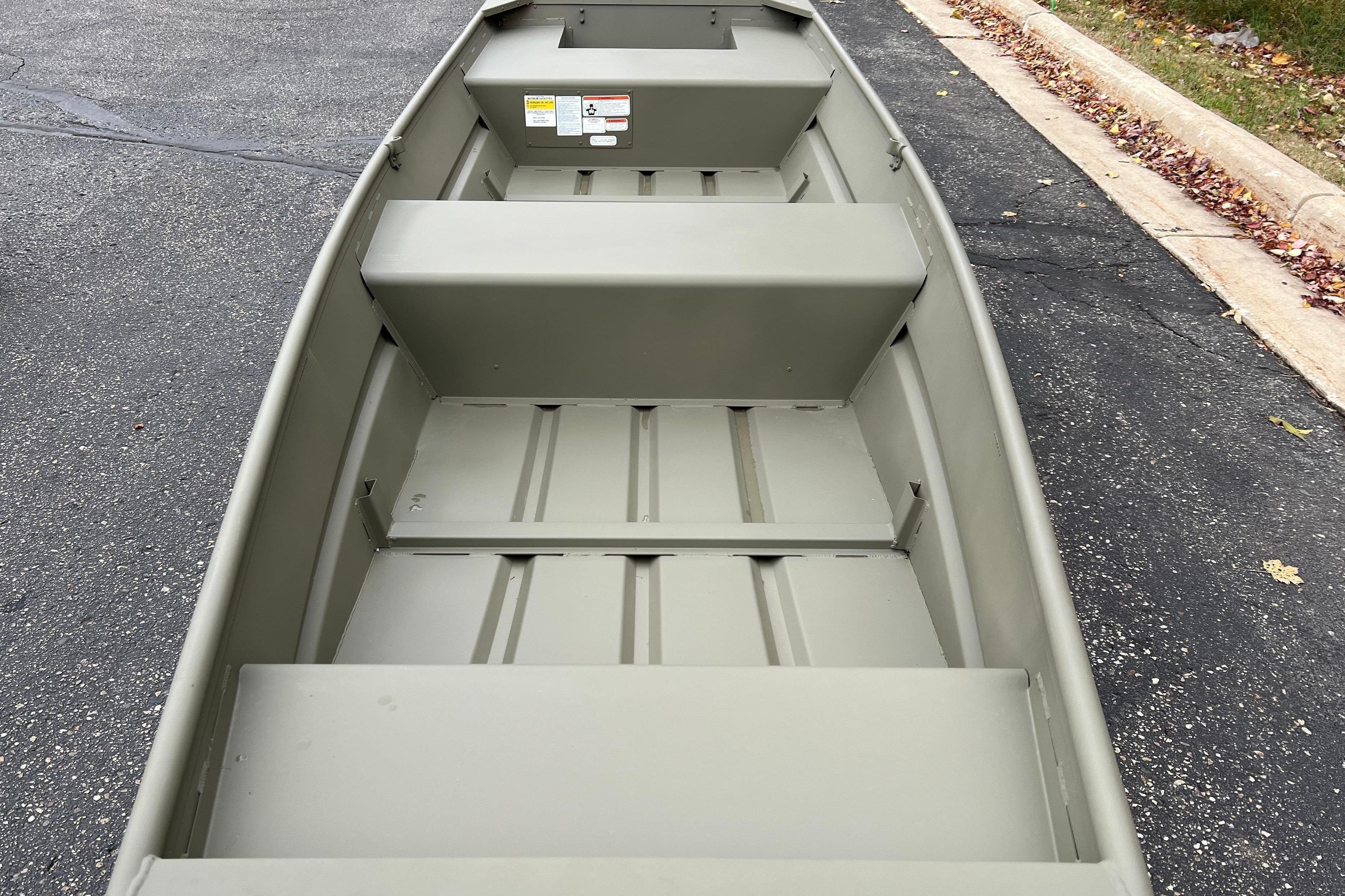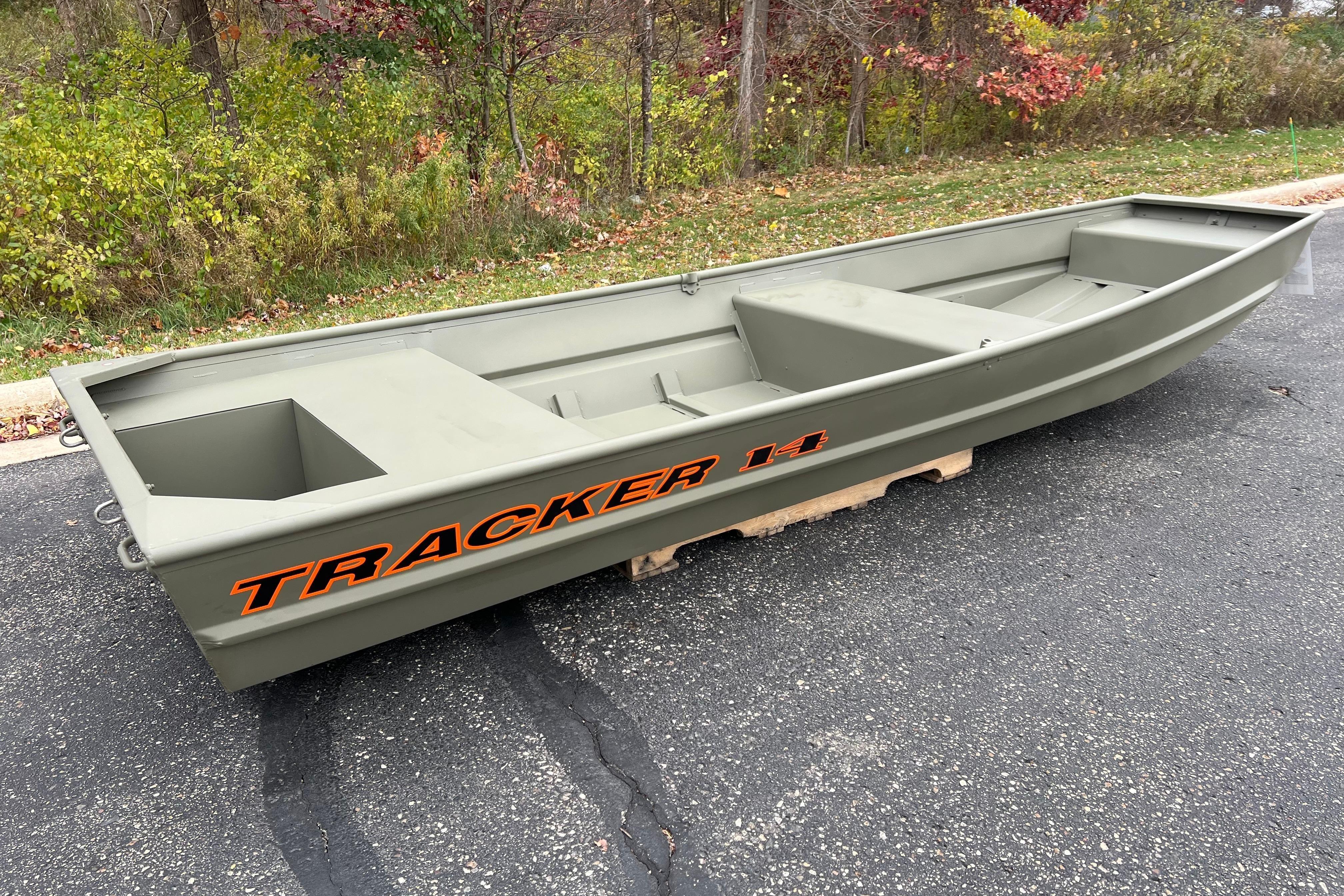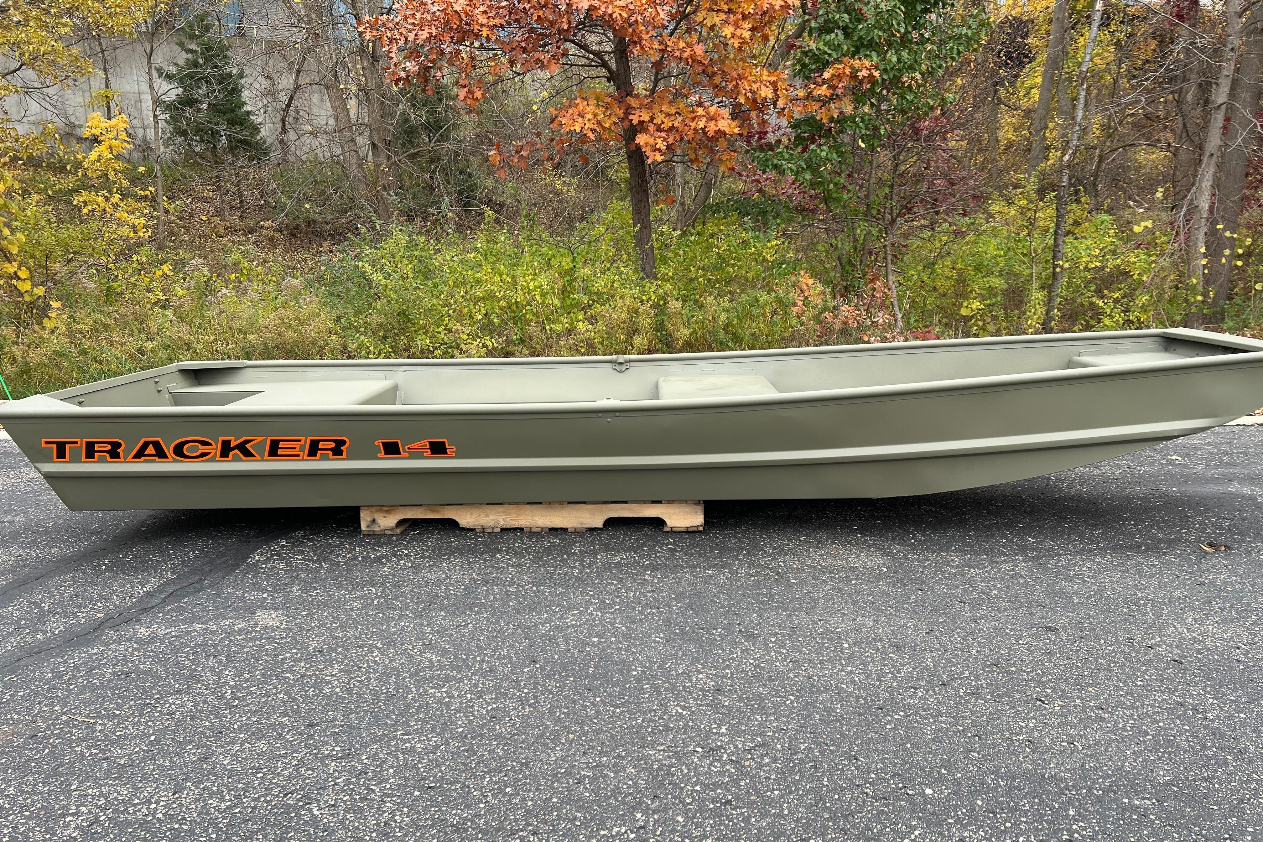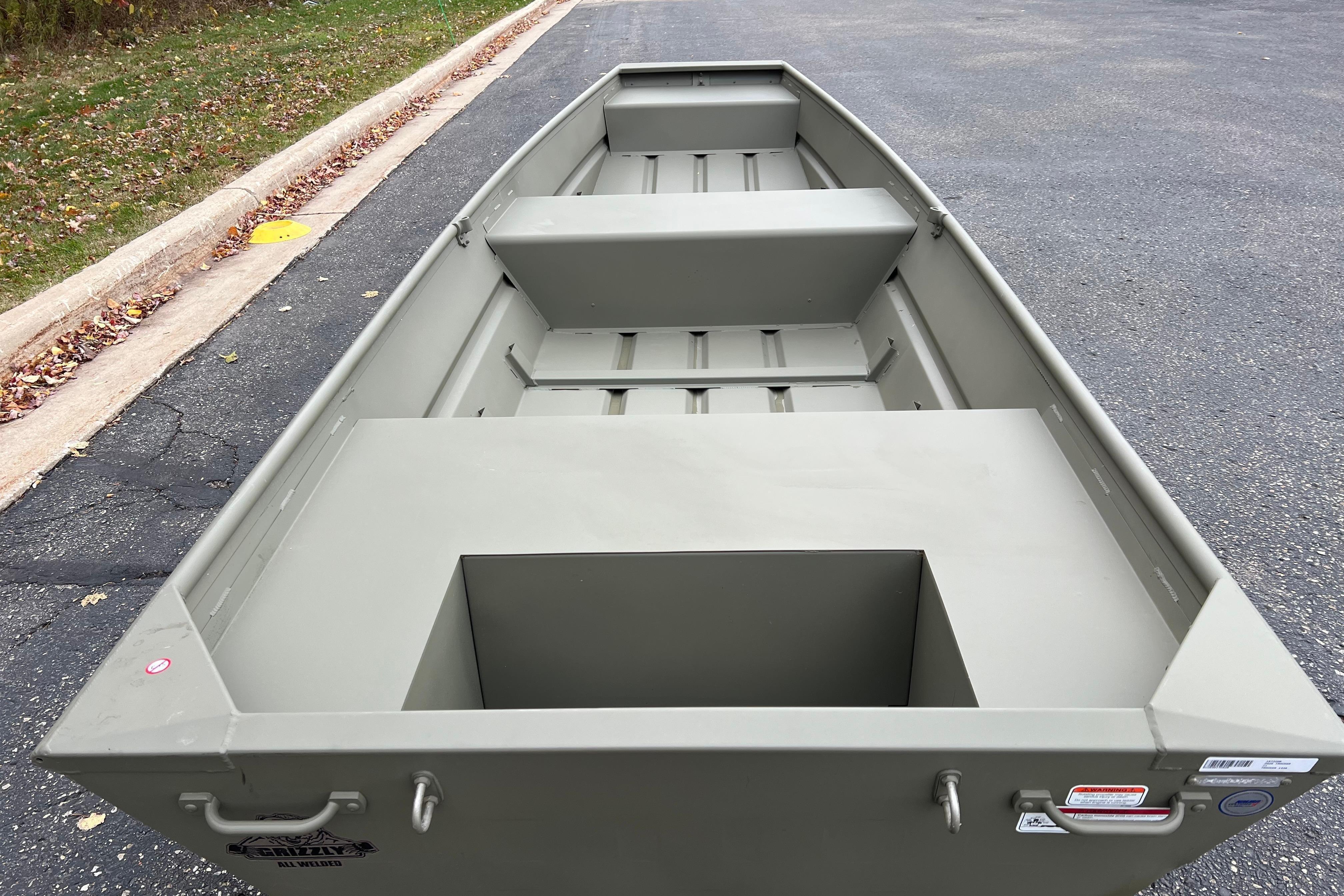 Introducing the TRACKER GRIZZLY 14 jon boat, an agile aluminum vessel crafted to comfortably host three anglers. Emphasizing the all-welded hull design, the TRACKER GRIZZLY 143sets a new standard in durability and performance. Unlike riveted hulls that may develop vulnerabilities over time, the all-welded construction of the GRIZZLY 14 ensures a solid and seamless framework, enhancing longevity and reliability. Whether tackling challenging waters or cruising leisurely, the all-welded hull design guarantees a secure and enjoyable boating experience, making the GRIZZLY 14 a top choice for adventurous anglers. Reinforced with aft foam boxes and corner braces at the transom, this boat is engineered to thrive in rugged terrains, whether embarking on a dusty trail to your secluded fishing haven or enjoying a serene day on the water. The GRIZZLY 14 features center and aft bench seats, complemented by a spacious bow platform, offering ample space for gear storage and ensuring a cozy fishing experience for all occupants.