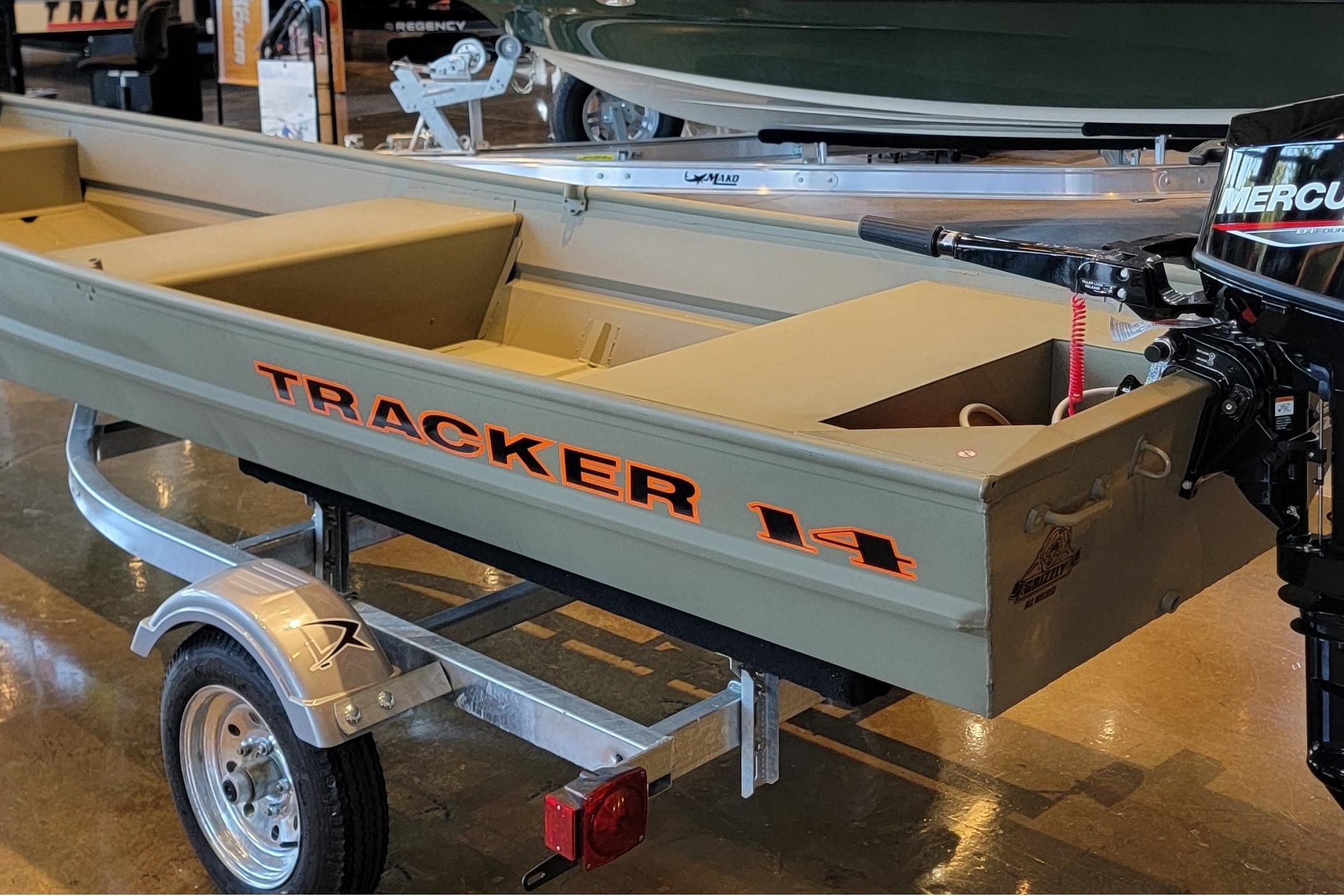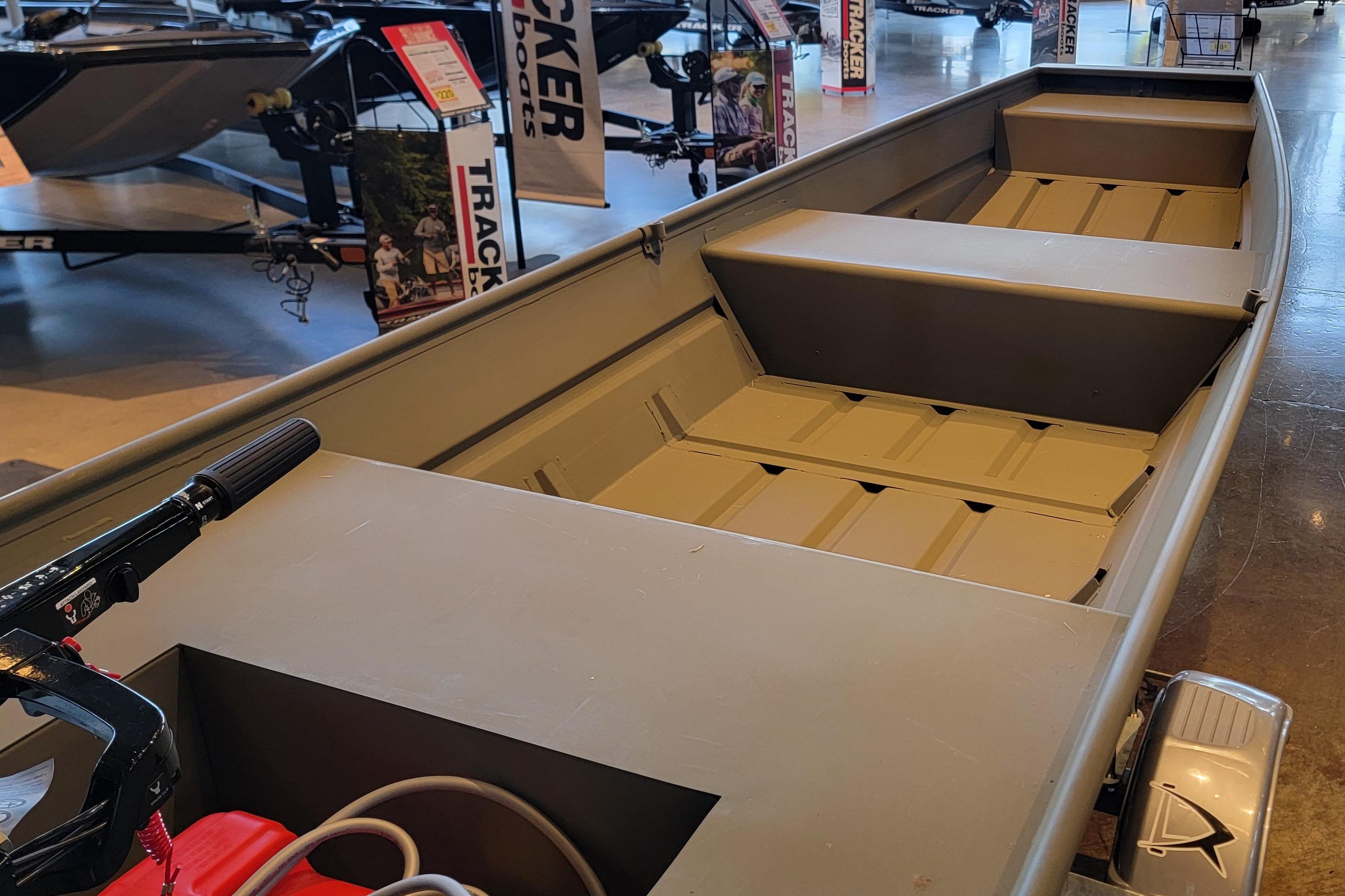 Introducing the TRACKER GRIZZLY 14 jon boat, an agile aluminum vessel crafted to comfortably host three anglers. Emphasizing the all-welded hull design, the TRACKER GRIZZLY 143sets a new standard in durability and performance. Unlike riveted hulls that may develop vulnerabilities over time, the all-welded construction of the GRIZZLY 14 ensures a solid and seamless framework, enhancing longevity and reliability. Whether tackling challenging waters or cruising leisurely, the all-welded hull design guarantees a secure and enjoyable boating experience, making the GRIZZLY 14 a top choice for adventurous anglers. Reinforced with aft foam boxes and corner braces at the transom, this boat is engineered to thrive in rugged terrains, whether embarking on a dusty trail to your secluded fishing haven or enjoying a serene day on the water. The GRIZZLY 14 features center and aft bench seats, complemented by a spacious bow platform, offering ample space for gear storage and ensuring a cozy fishing experience for all occupants.