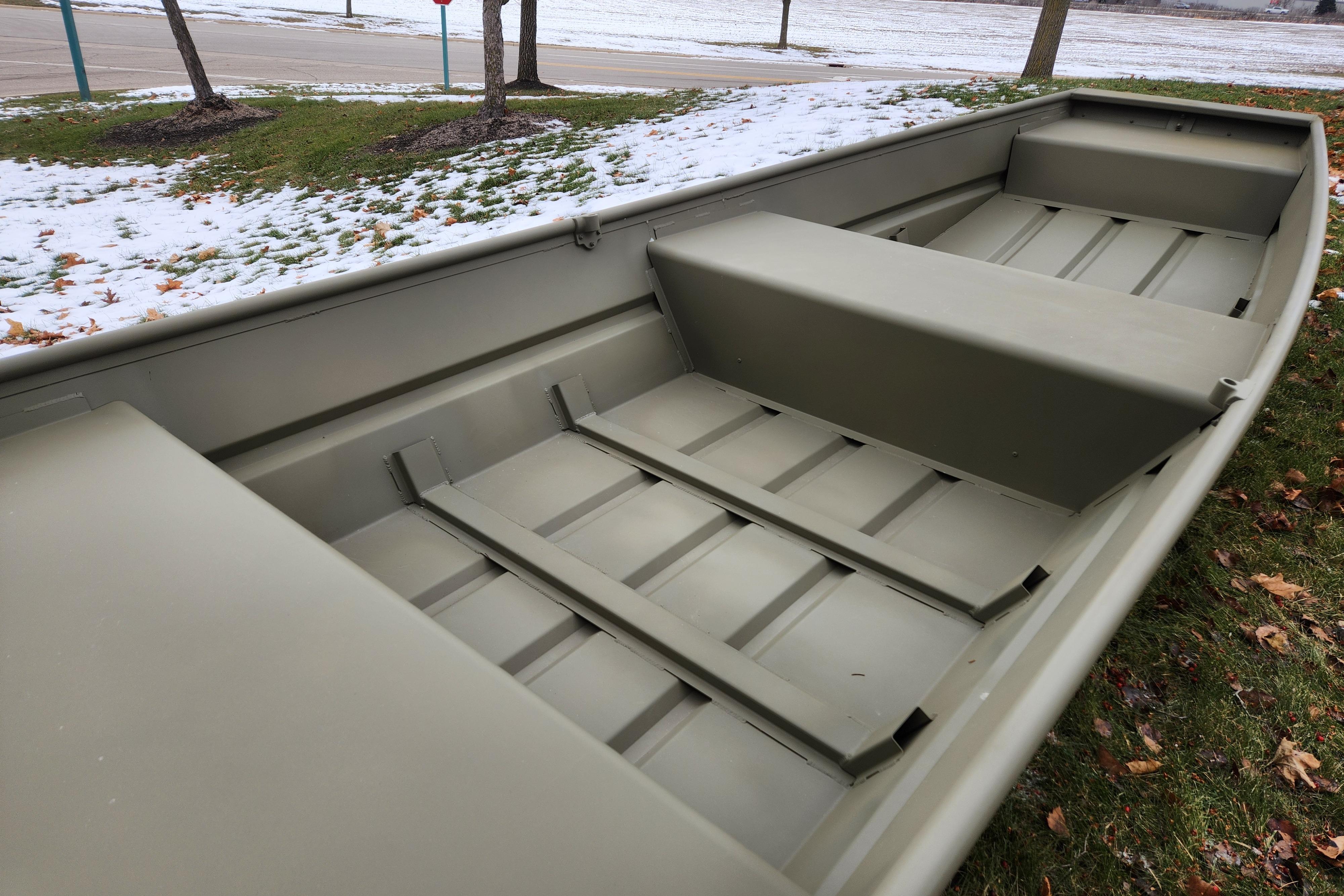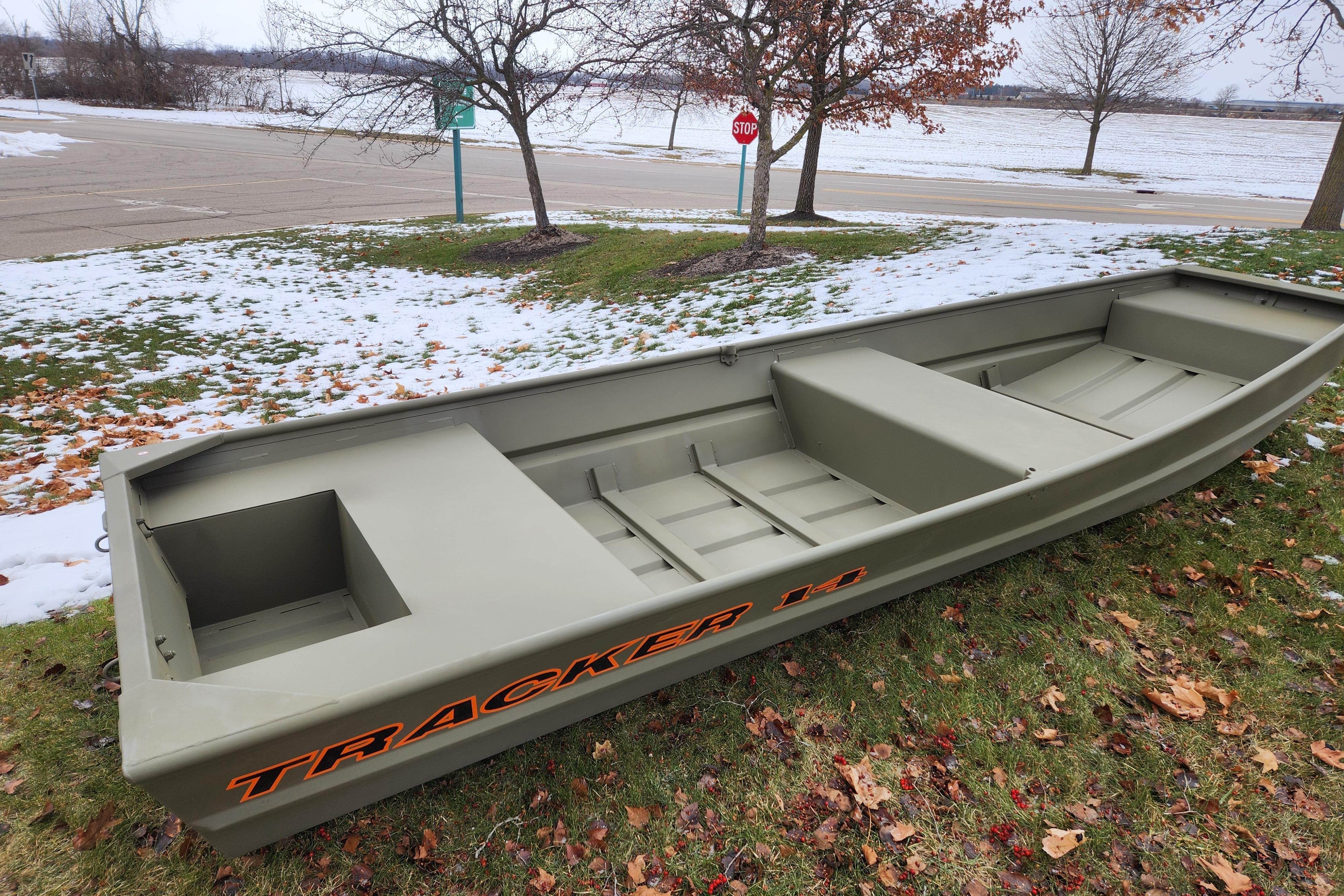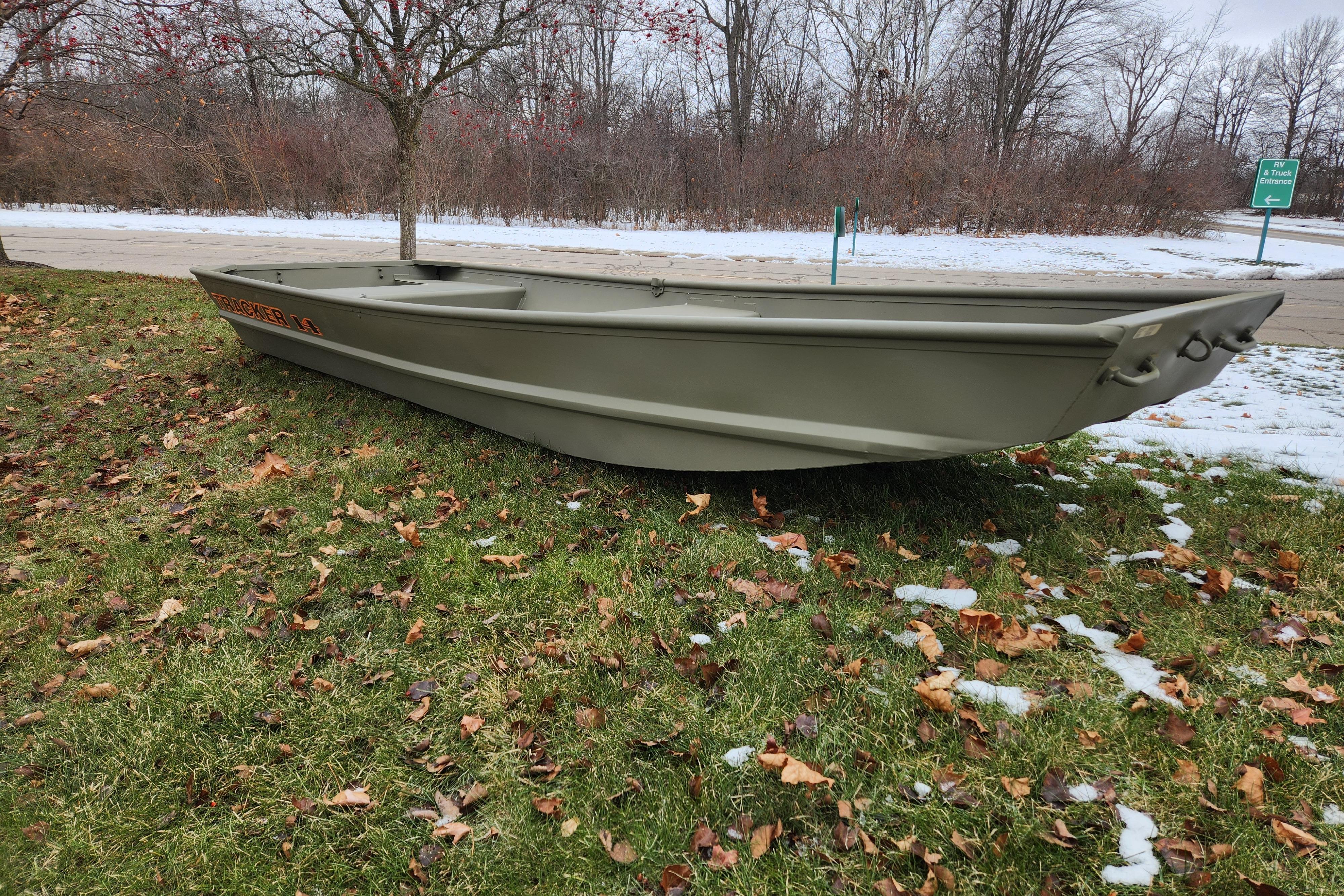 Introducing the TRACKER GRIZZLY 14 jon boat, an agile aluminum vessel crafted to comfortably host three anglers. Emphasizing the all-welded hull design, the TRACKER GRIZZLY 143sets a new standard in durability and performance. Unlike riveted hulls that may develop vulnerabilities over time, the all-welded construction of the GRIZZLY 14 ensures a solid and seamless framework, enhancing longevity and reliability. Whether tackling challenging waters or cruising leisurely, the all-welded hull design guarantees a secure and enjoyable boating experience, making the GRIZZLY 14 a top choice for adventurous anglers. Reinforced with aft foam boxes and corner braces at the transom, this boat is engineered to thrive in rugged terrains, whether embarking on a dusty trail to your secluded fishing haven or enjoying a serene day on the water. The GRIZZLY 14 features center and aft bench seats, complemented by a spacious bow platform, offering ample space for gear storage and ensuring a cozy fishing experience for all occupants.