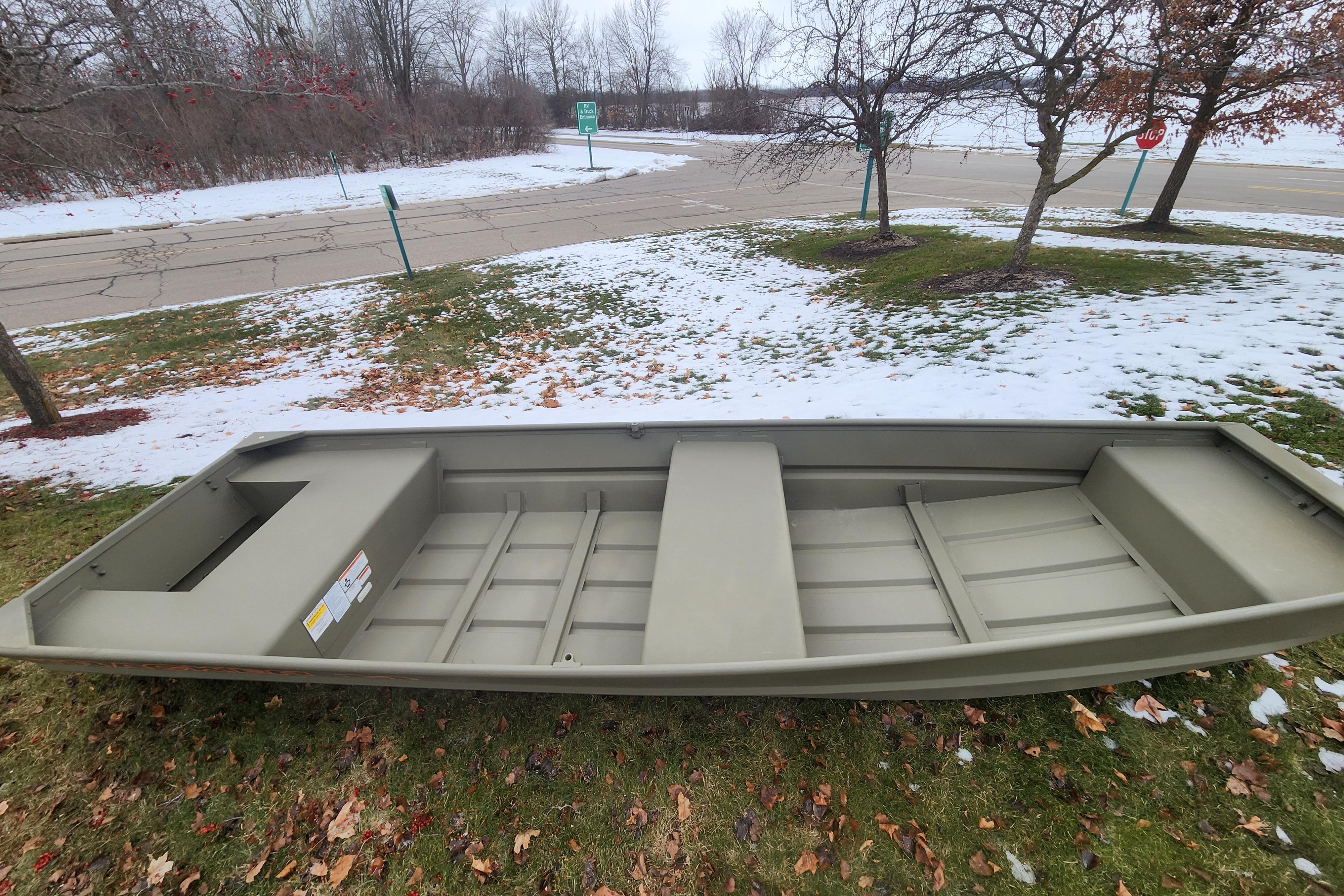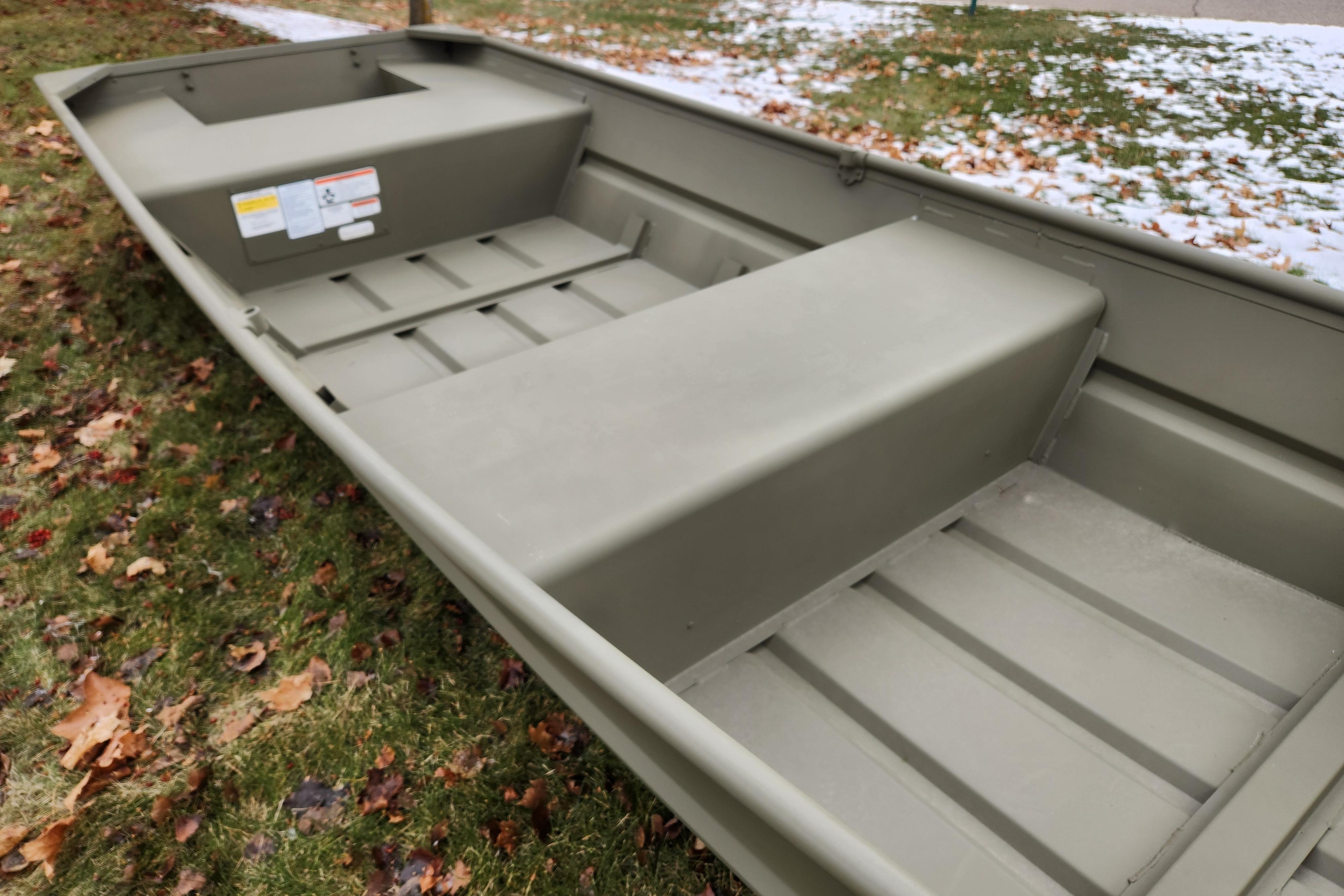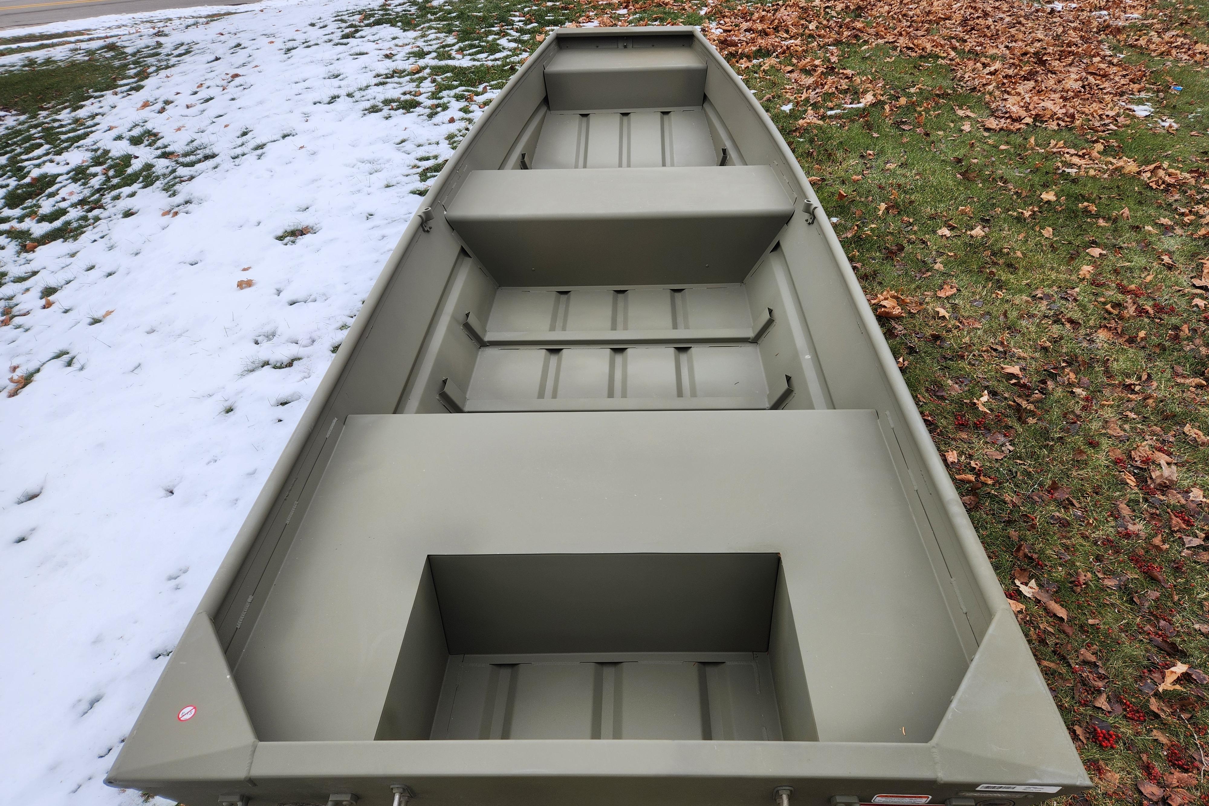 Introducing the TRACKER GRIZZLY 14 jon boat, an agile aluminum vessel crafted to comfortably host three anglers. Emphasizing the all-welded hull design, the TRACKER GRIZZLY 143sets a new standard in durability and performance. Unlike riveted hulls that may develop vulnerabilities over time, the all-welded construction of the GRIZZLY 14 ensures a solid and seamless framework, enhancing longevity and reliability. Whether tackling challenging waters or cruising leisurely, the all-welded hull design guarantees a secure and enjoyable boating experience, making the GRIZZLY 14 a top choice for adventurous anglers. Reinforced with aft foam boxes and corner braces at the transom, this boat is engineered to thrive in rugged terrains, whether embarking on a dusty trail to your secluded fishing haven or enjoying a serene day on the water. The GRIZZLY 14 features center and aft bench seats, complemented by a spacious bow platform, offering ample space for gear storage and ensuring a cozy fishing experience for all occupants.
