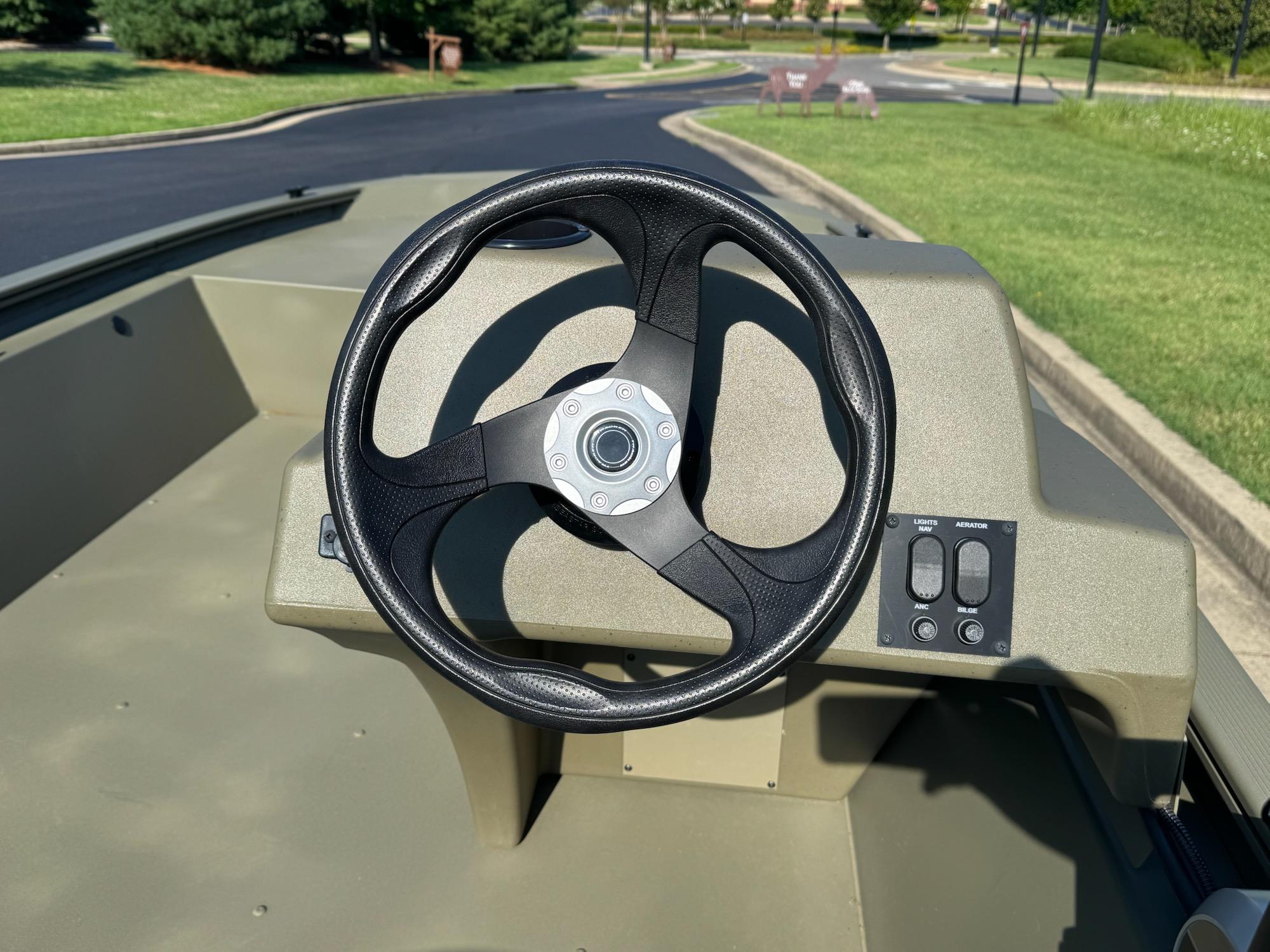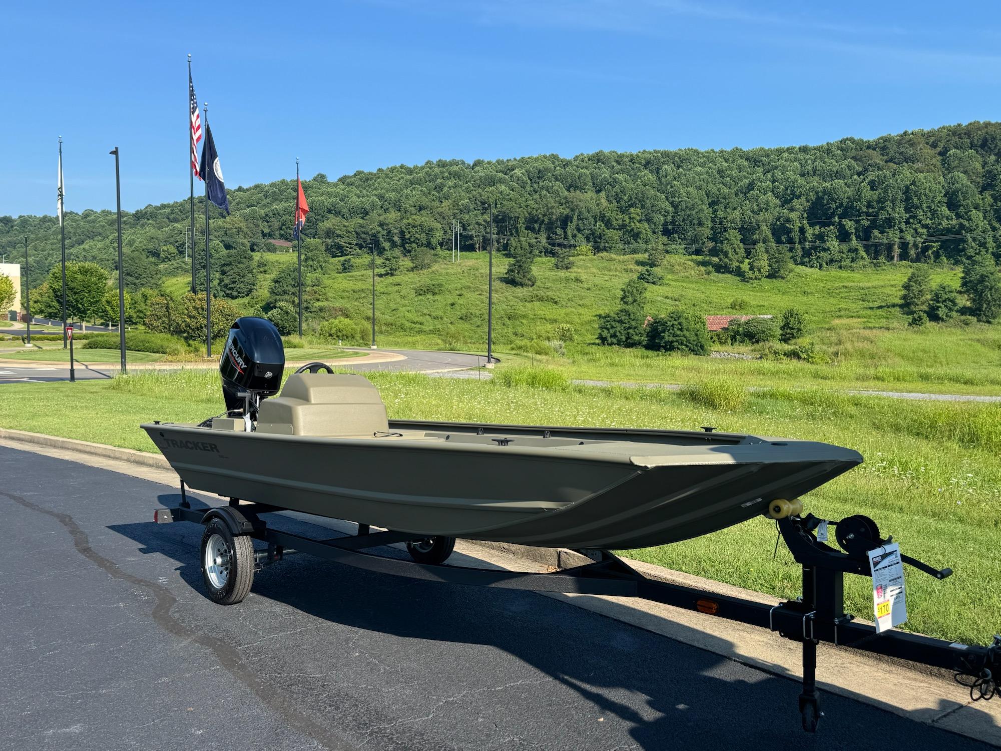 Discover one of our top offerings in complete aluminum jon boat, motor, and trailer packages—the TRACKER® GRIZZLY® 1648 SC. This versatile and resilient vessel combines exceptional value with unmatched durability. Boasting the same high-quality construction as its larger GRIZZLY counterparts, the 1648 SC features a unitized, all-aluminum, all-welded hull, stringer, and transom, ensuring a lifetime of reliable performance and durability on the water. The 1648 SC is equipped with a spacious front deck, a wide beam, two pedestal seat bases, and a roomy interior with a lockable bow deck storage compartment, providing ample space and functionality for various activities. Finished with our industry-exclusive Forest Green powder-coat finish, this jon boat offers extreme durability and resilience against the elements, ensuring long-lasting performance in any conditions. Additionally, the 1648 SC is backed by the TRACKER PROMISE, offering the best factory warranty available for aluminum boats, providing you with peace of mind and confidence in your investment. Experience the unbeatable combination of versatility, durability, and value with the TRACKER GRIZZLY 1648 SC, a reliable and dependable companion for all your boating adventures.