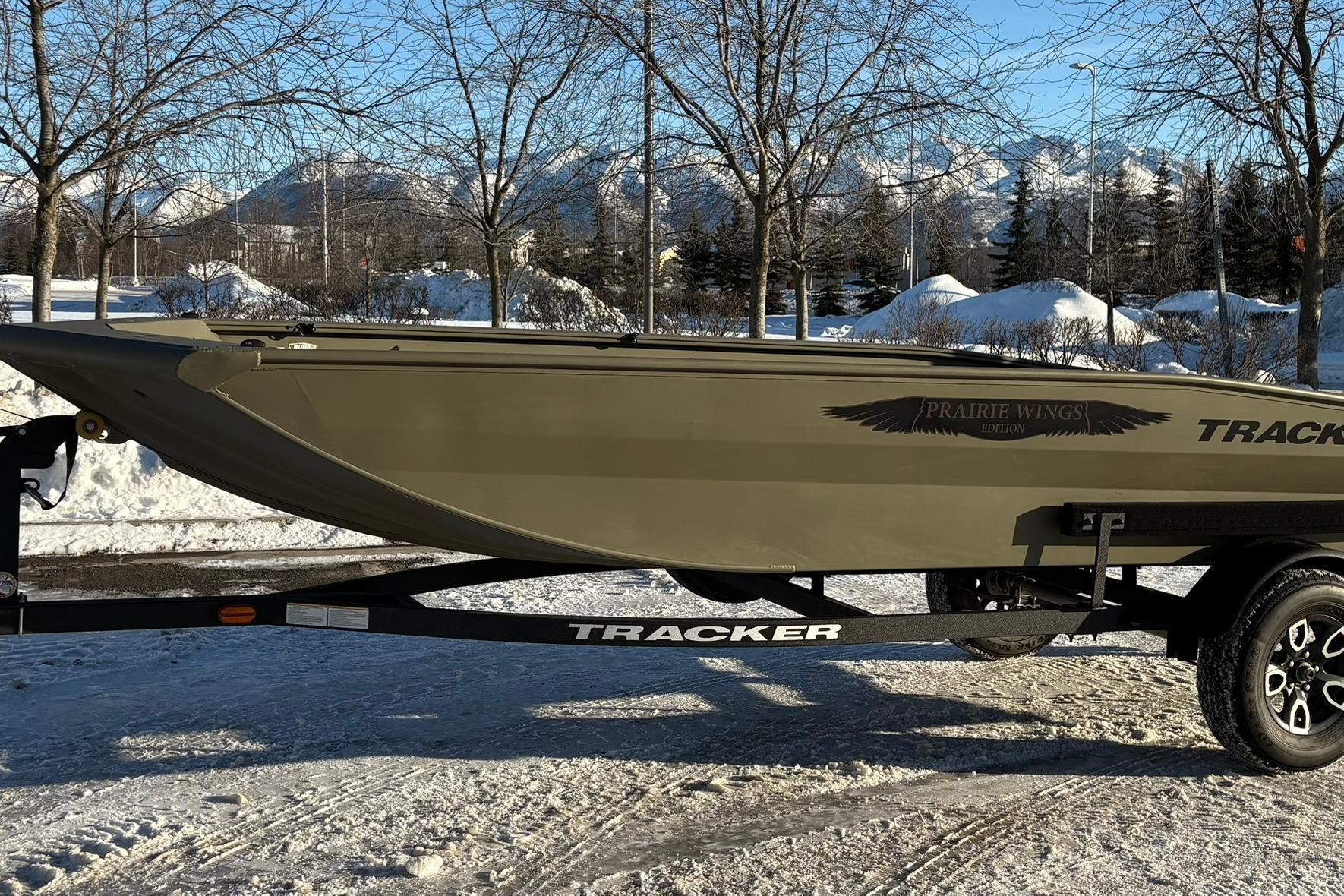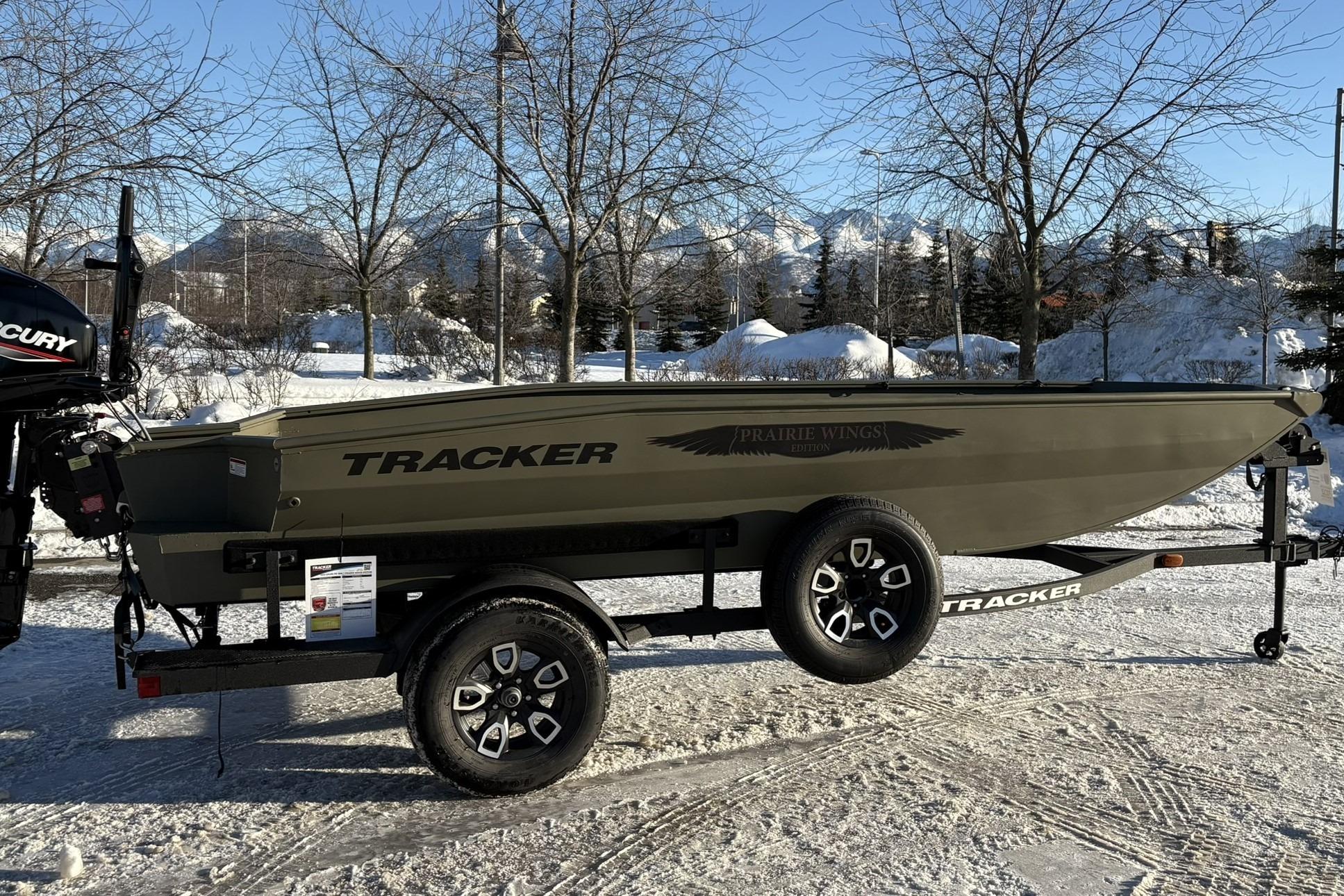 From rivers and bayous to lakes and brakes, the all-new TRACKER 1650 T Prairie Wings Edition is custom-made to get you, your gear, and your buddies to those out-of-the-way honey holes that guarantee you’ll get your limit. A no-frills interior provides all the space you need to haul spreads, dog’s and your best friend while smooth, reliable, and stealthy Mercury® FourStroke power with an Icebreaker keel gets you there.