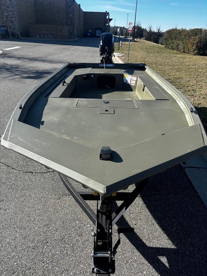 Meet the TRACKER® GRIZZLY® 1654 T Sportsman, a rugged and versatile duck-hunting vessel built to withstand the demands of waterfowling adventures. This specialized boat features an optimized layout, including a lockable bow deck storage compartment, a port rod/gear box, and a lockable, removable starboard gun box, providing the functionality and convenience essential for successful hunts on the water. The GRIZZLY 1654 T Sportsman is constructed with a unitized, all-welded stringer, transom, and Mod V hull, ensuring exceptional durability and a smooth, dry ride even in challenging conditions. The integrated transom sponsons further enhance the boat's performance in shallow waters, allowing you to navigate effortlessly through various terrains. Finished with our exclusive Forest Green powder-coat finish, this all-aluminum vessel exudes quality and resilience. Additionally, optional Grassland or Woodland camo patterns are available for those seeking a customized look to blend into their surroundings. Just like every GRIZZLY model, the 1654 T Sportsman is backed by the TRACKER PROMISE, providing you with the best factory warranty in the realm of aluminum boats. With its robust construction, specialized features, and reliable warranty, the GRIZZLY 1654 T Sportsman stands as the ultimate waterfowl-hunting machine, ready to elevate your hunting experiences on the water.