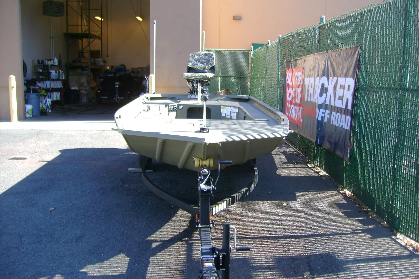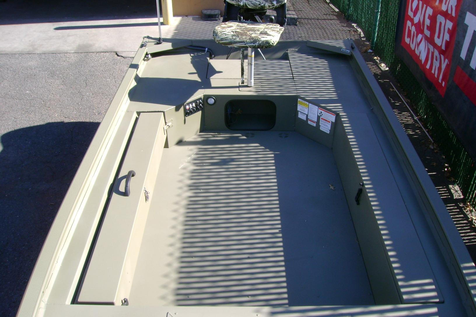 Meet the TRACKER® GRIZZLY® 1654 T Sportsman, a rugged and versatile duck-hunting vessel built to withstand the demands of waterfowling adventures. This specialized boat features an optimized layout, including a lockable bow deck storage compartment, a port rod/gear box, and a lockable, removable starboard gun box, providing the functionality and convenience essential for successful hunts on the water. The GRIZZLY 1654 T Sportsman is constructed with a unitized, all-welded stringer, transom, and Mod V hull, ensuring exceptional durability and a smooth, dry ride even in challenging conditions. The integrated transom sponsons further enhance the boat's performance in shallow waters, allowing you to navigate effortlessly through various terrains. Finished with our exclusive Forest Green powder-coat finish, this all-aluminum vessel exudes quality and resilience. Additionally, optional Grassland or Woodland camo patterns are available for those seeking a customized look to blend into their surroundings. Just like every GRIZZLY model, the 1654 T Sportsman is backed by the TRACKER PROMISE, providing you with the best factory warranty in the realm of aluminum boats. With its robust construction, specialized features, and reliable warranty, the GRIZZLY 1654 T Sportsman stands as the ultimate waterfowl-hunting machine, ready to elevate your hunting experiences on the water.