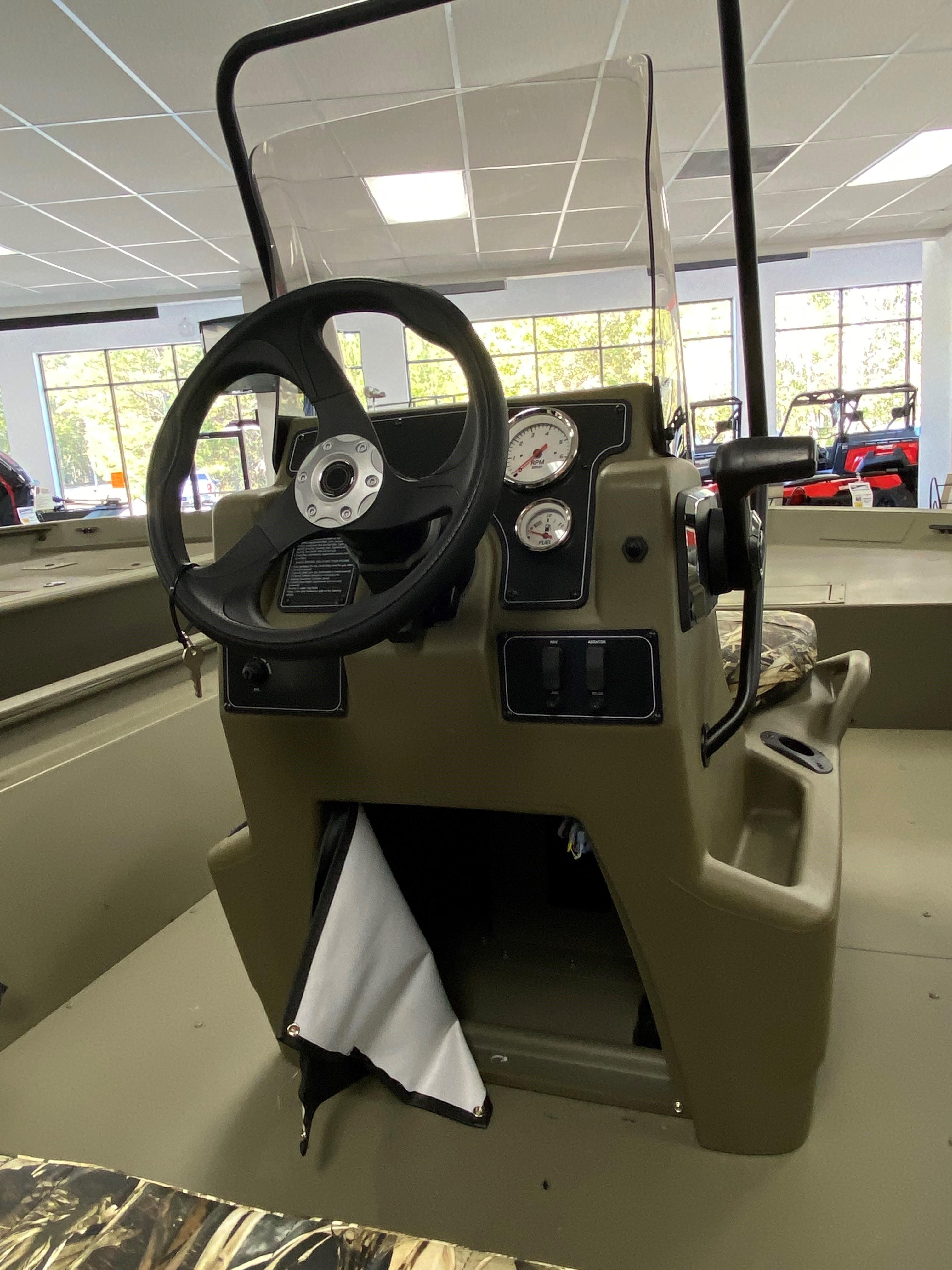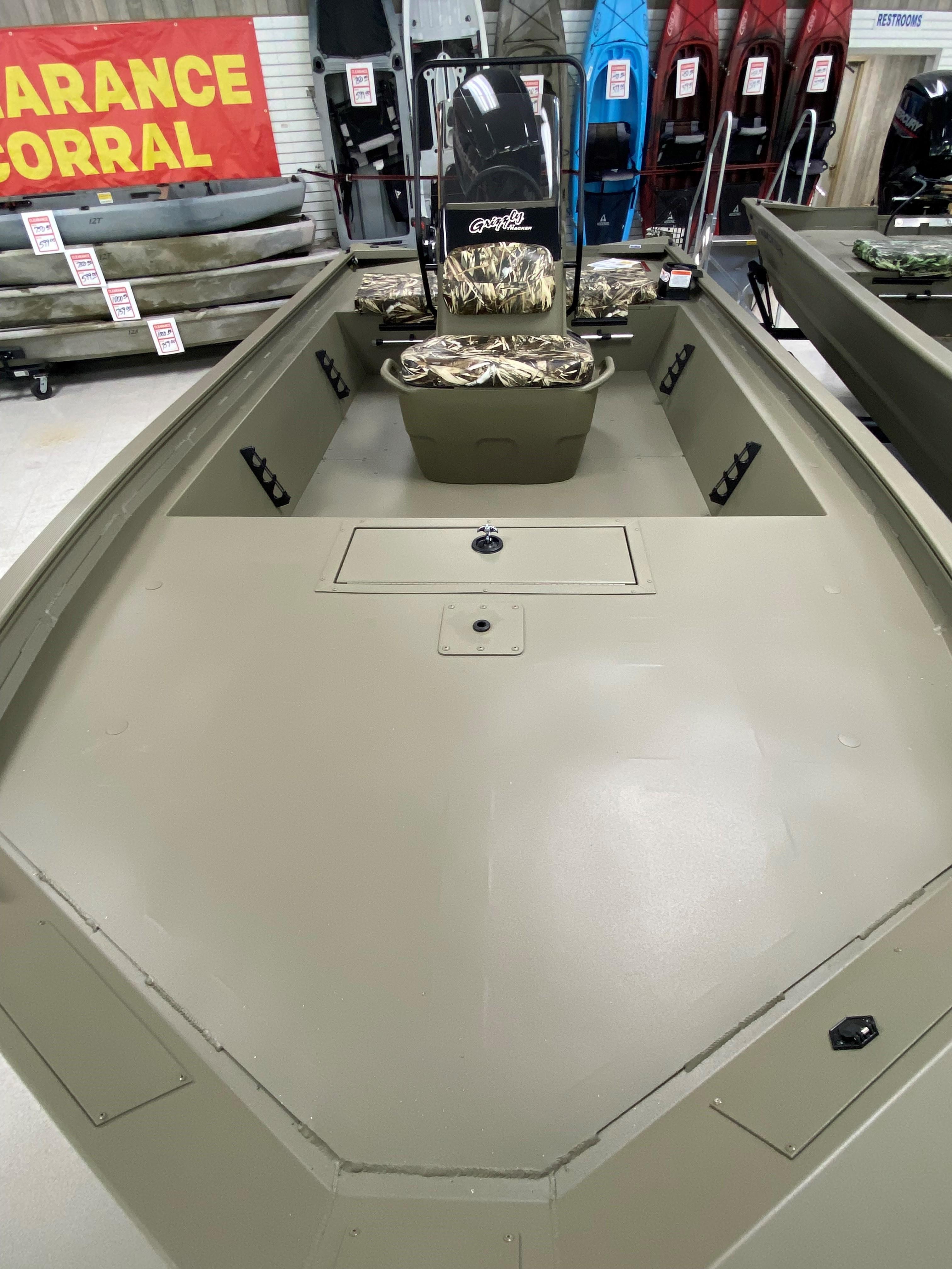 Venture into the unknown with the TRACKER® GRIZZLY® 1860 CC, a robust and versatile all-purpose jon boat designed to conquer various water environments, from rivers to lakes to bays. With its durable, all-welded construction, this boat is equipped to handle any adventure you throw its way. The innovative center-console design not only provides 360° fishability but also offers enhanced visibility for the driver, crucial for navigating through shallow waters cluttered with stumps and rocks. Whether you're casting a line or cruising the waters, the decks and floors of the 1860 CC are equipped with our textured SURE TREAD™ coating, ensuring a secure and non-skid surface for your safety and comfort. The unitized stringer, transom, and Mod V hull construction of this boat guarantee a solid and stable ride, delivering an experience that is both smooth and dry. Finished with our exclusive Forest Green powder-coat finish, the GRIZZLY 1860 CC not only looks sleek but also offers superior protection against corrosion and wear. For those looking to personalize their vessel further, optional TrueTimber patterns and a Marine Mat kit are available, allowing you to tailor your boat to your preferences and style. With the added assurance of the TRACKER PROMISE, featuring the best factory warranty in aluminum boats, the GRIZZLY 1860 CC is a reliable and dependable choice for all your boating adventures.