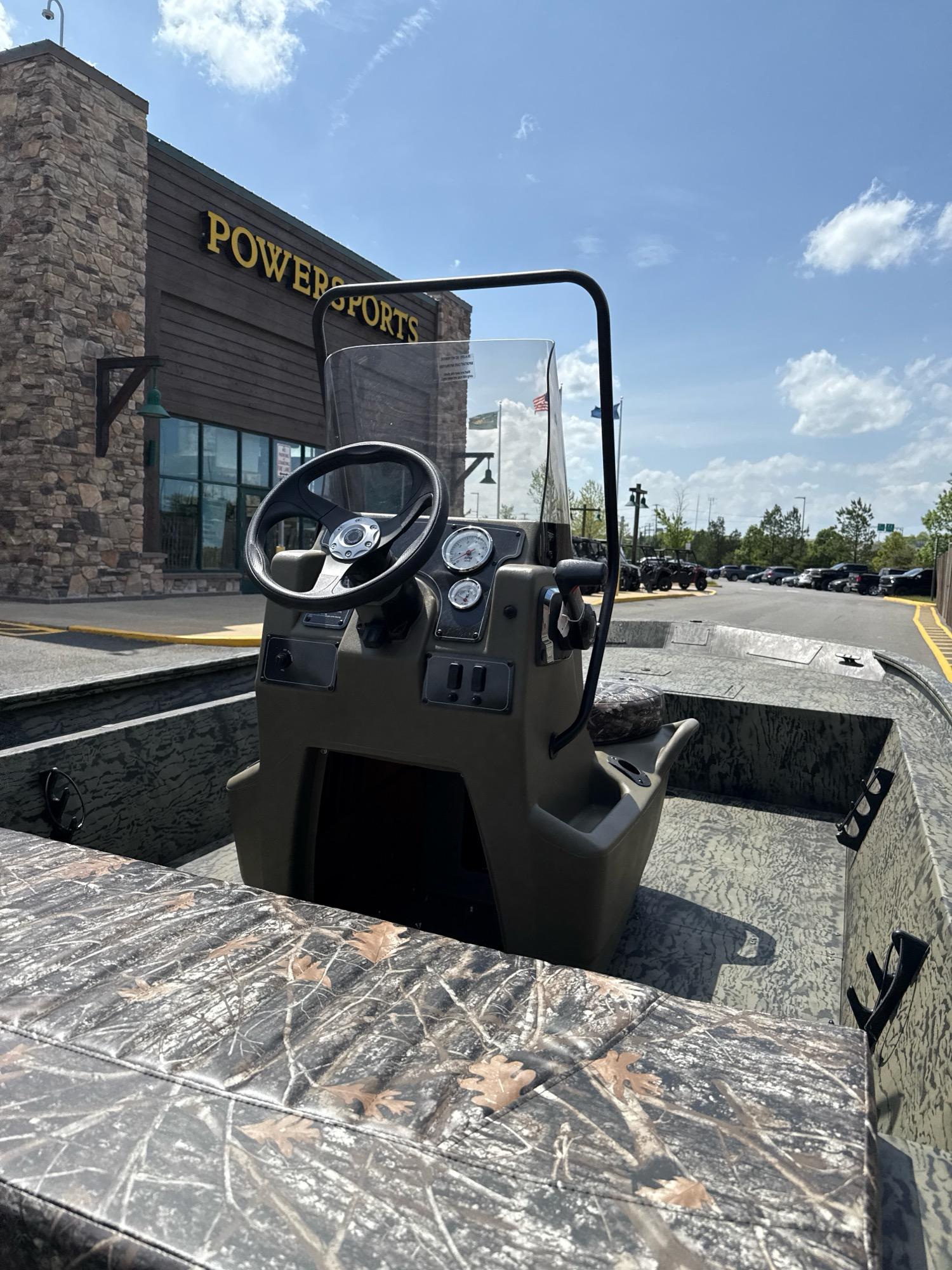 Venture into the unknown with the TRACKER® GRIZZLY® 1860 CC, a robust and versatile all-purpose jon boat designed to conquer various water environments, from rivers to lakes to bays. With its durable, all-welded construction, this boat is equipped to handle any adventure you throw its way. The innovative center-console design not only provides 360° fishability but also offers enhanced visibility for the driver, crucial for navigating through shallow waters cluttered with stumps and rocks. Whether you're casting a line or cruising the waters, the decks and floors of the 1860 CC are equipped with our textured SURE TREAD™ coating, ensuring a secure and non-skid surface for your safety and comfort. The unitized stringer, transom, and Mod V hull construction of this boat guarantee a solid and stable ride, delivering an experience that is both smooth and dry. Finished with our exclusive Forest Green powder-coat finish, the GRIZZLY 1860 CC not only looks sleek but also offers superior protection against corrosion and wear. For those looking to personalize their vessel further, optional TrueTimber patterns and a Marine Mat kit are available, allowing you to tailor your boat to your preferences and style. With the added assurance of the TRACKER PROMISE, featuring the best factory warranty in aluminum boats, the GRIZZLY 1860 CC is a reliable and dependable choice for all your boating adventures.