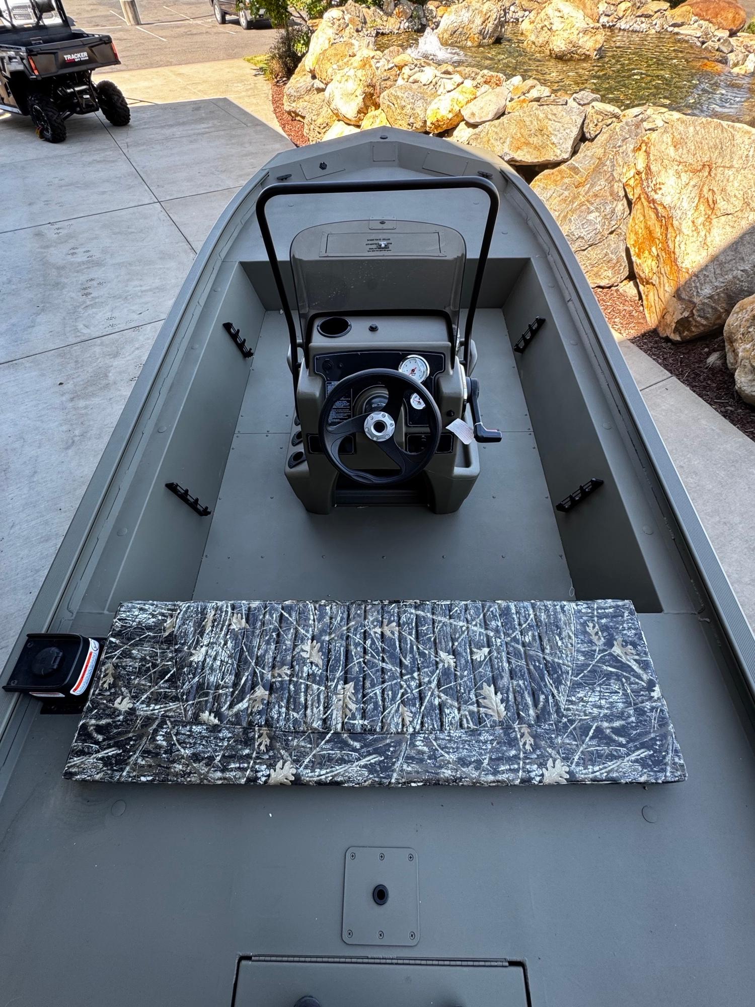 Venture into the unknown with the TRACKER® GRIZZLY® 1860 CC, a robust and versatile all-purpose jon boat designed to conquer various water environments, from rivers to lakes to bays. With its durable, all-welded construction, this boat is equipped to handle any adventure you throw its way. The innovative center-console design not only provides 360° fishability but also offers enhanced visibility for the driver, crucial for navigating through shallow waters cluttered with stumps and rocks. Whether you're casting a line or cruising the waters, the decks and floors of the 1860 CC are equipped with our textured SURE TREAD™ coating, ensuring a secure and non-skid surface for your safety and comfort. The unitized stringer, transom, and Mod V hull construction of this boat guarantee a solid and stable ride, delivering an experience that is both smooth and dry. Finished with our exclusive Forest Green powder-coat finish, the GRIZZLY 1860 CC not only looks sleek but also offers superior protection against corrosion and wear. For those looking to personalize their vessel further, optional TrueTimber patterns and a Marine Mat kit are available, allowing you to tailor your boat to your preferences and style. With the added assurance of the TRACKER PROMISE, featuring the best factory warranty in aluminum boats, the GRIZZLY 1860 CC is a reliable and dependable choice for all your boating adventures.