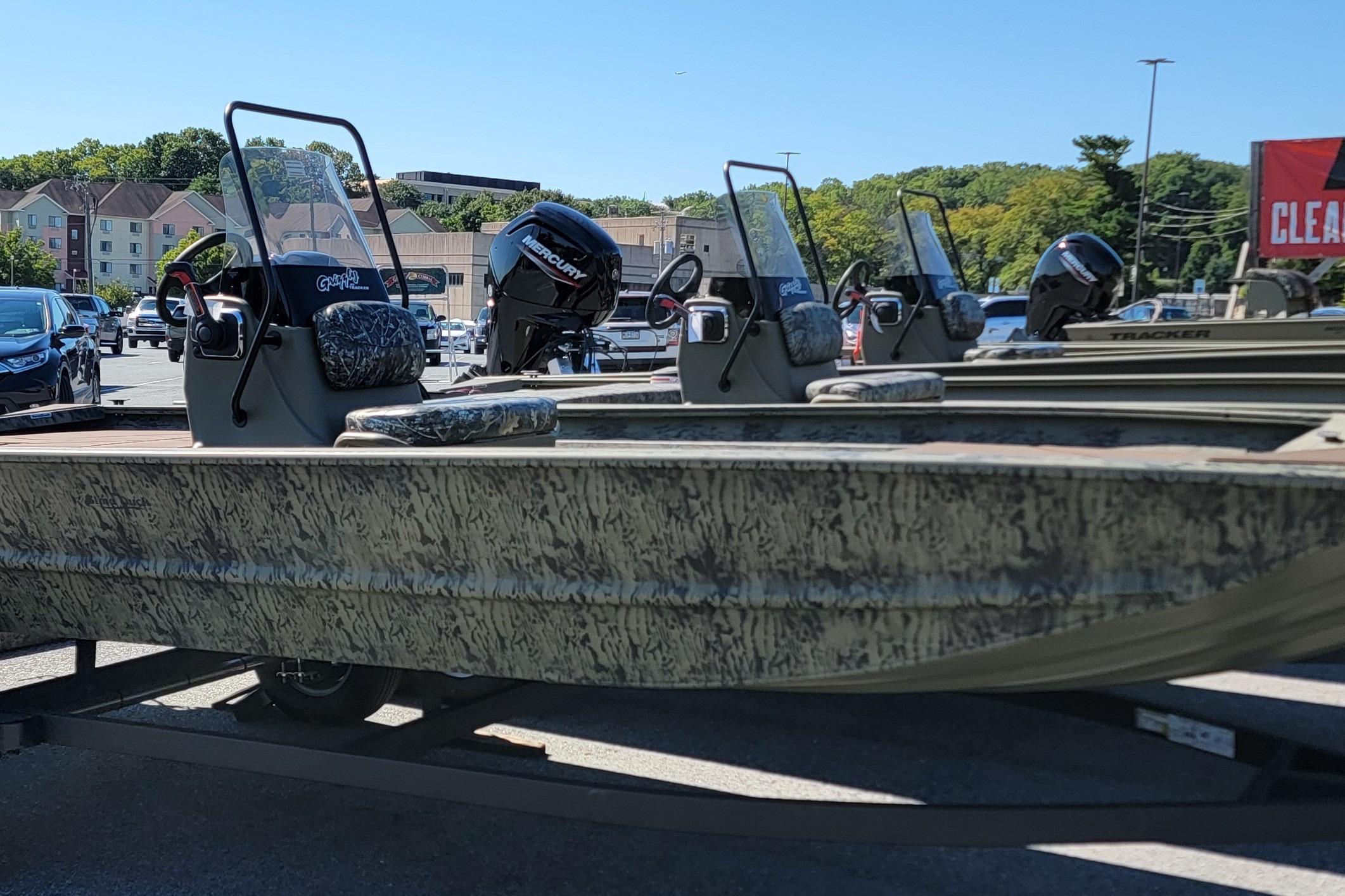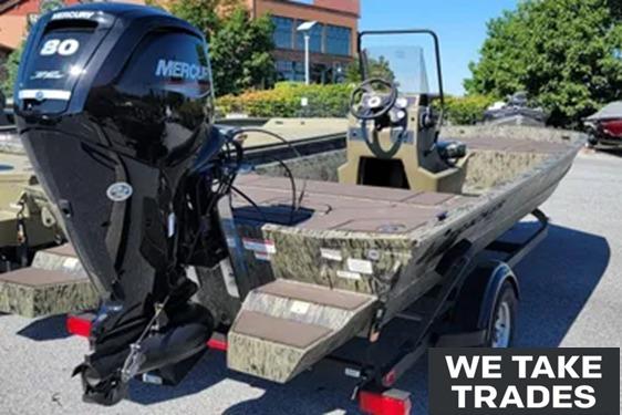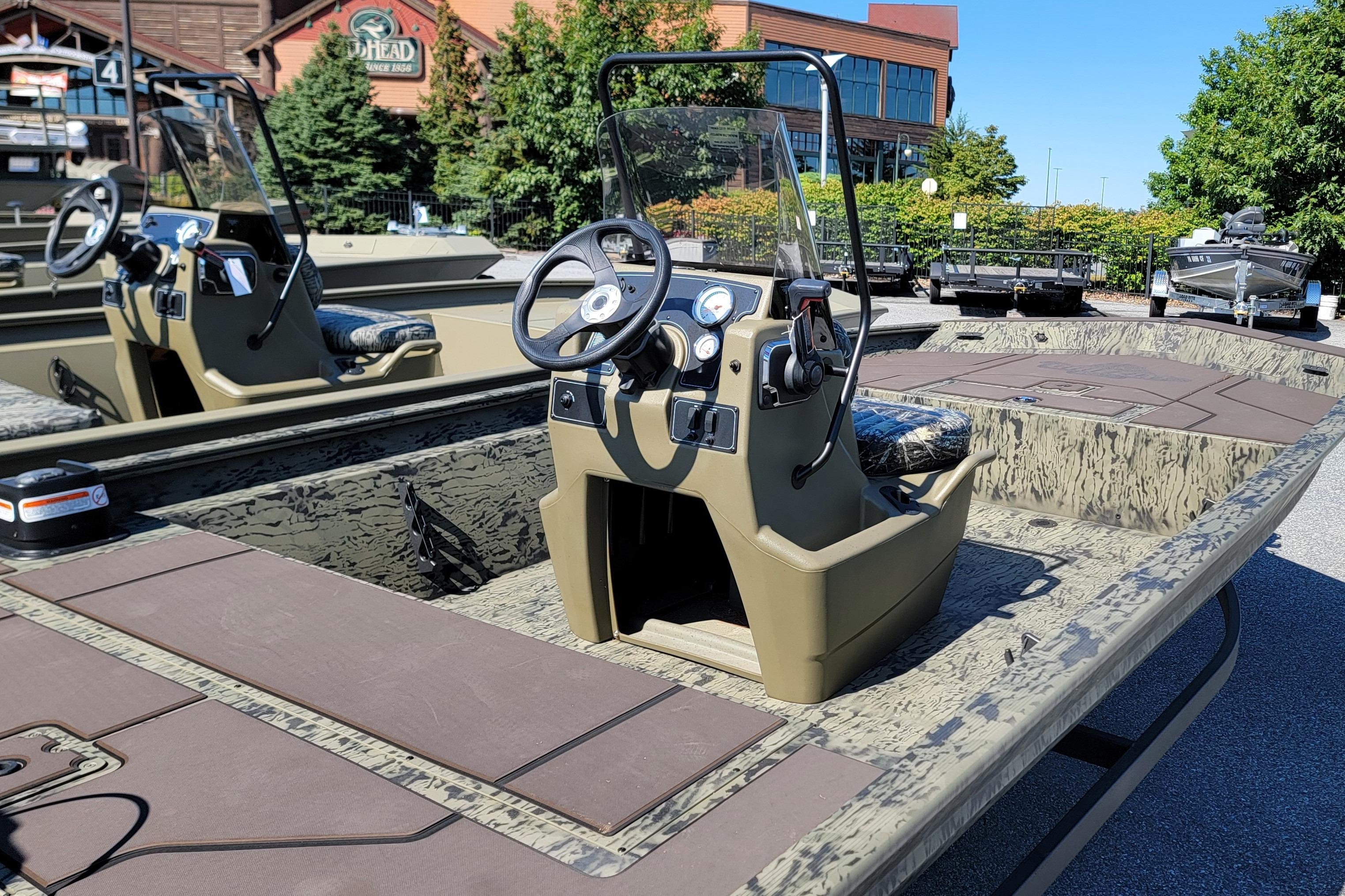 Venture into the unknown with the TRACKER® GRIZZLY® 1860 CC, a robust and versatile all-purpose jon boat designed to conquer various water environments, from rivers to lakes to bays. With its durable, all-welded construction, this boat is equipped to handle any adventure you throw its way. The innovative center-console design not only provides 360° fishability but also offers enhanced visibility for the driver, crucial for navigating through shallow waters cluttered with stumps and rocks. Whether you're casting a line or cruising the waters, the decks and floors of the 1860 CC are equipped with our textured SURE TREAD™ coating, ensuring a secure and non-skid surface for your safety and comfort. The unitized stringer, transom, and Mod V hull construction of this boat guarantee a solid and stable ride, delivering an experience that is both smooth and dry. Finished with our exclusive Forest Green powder-coat finish, the GRIZZLY 1860 CC not only looks sleek but also offers superior protection against corrosion and wear. For those looking to personalize their vessel further, optional TrueTimber patterns and a Marine Mat kit are available, allowing you to tailor your boat to your preferences and style. With the added assurance of the TRACKER PROMISE, featuring the best factory warranty in aluminum boats, the GRIZZLY 1860 CC is a reliable and dependable choice for all your boating adventures.