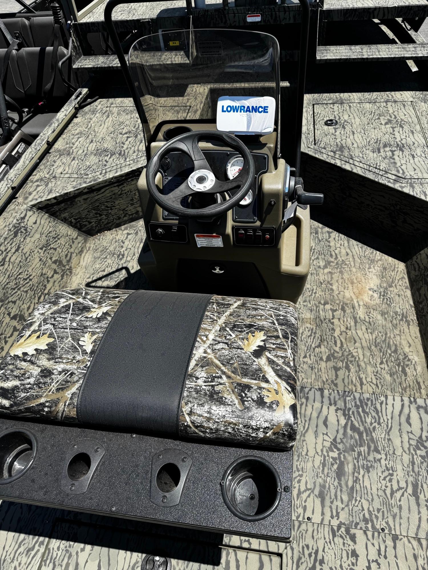 Prepare for an unparalleled bowfishing adventure with the TRACKER® GRIZZLY® 2072 CC Sportsman, a remarkable vessel designed to enhance your targeting accuracy and overall experience on the water. The elevated deck feature positions you at a higher vantage point, allowing for precise targeting with your bow and reducing arrow deflection. To further elevate your bowfishing game, we have equipped this revamped boat with ten super-bright LEDs, illuminating your quarry with an impressive 100,000 lumens both inside and outside the vessel. Experience enhanced user-friendliness with a leaning post and storage compartments, ensuring that every aspect of your bowfishing excursion is optimized for convenience and enjoyment. The 100% aluminum construction of the GRIZZLY 2072 CC Sportsman, featuring a .100 hull and .190 floor, guarantees long-term durability and reliability. The all-welded hull, stringer, transom, and decks contribute to the boat's robust structure, capable of withstanding years of use in various conditions. Backed by the reputable TRACKER PROMISE, which offers the best factory warranty in the domain of aluminum boats, the GRIZZLY 2072 CC Sportsman provides you with the assurance and peace of mind needed for your bowfishing expeditions. For those seeking to enhance the visual appeal and camouflage capabilities of their bowfishing vessel, optional TrueTimber camo patterns are available to personalize your TRACKER® GRIZZLY® 2072 CC Sportsman. These innovative camo designs not only add a touch of flair to your boat but also allow you to seamlessly blend into your surroundings, maximizing your hunting success on the water. Elevate your bowfishing experience to new heights with the unmatched features, durability, and warranty offered by the TRACKER GRIZZLY 2072 CC Sportsman.