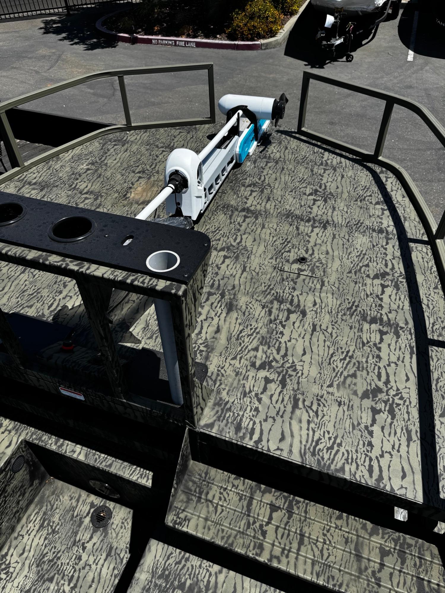 • Removable & elevated bow shooting deck w/trim switch, railing, rail-mounted utility tray w/arrow, tool & drink holders, 2 pedestal seat base locations & 160W Outrigger Outdoors® bowfishing lights