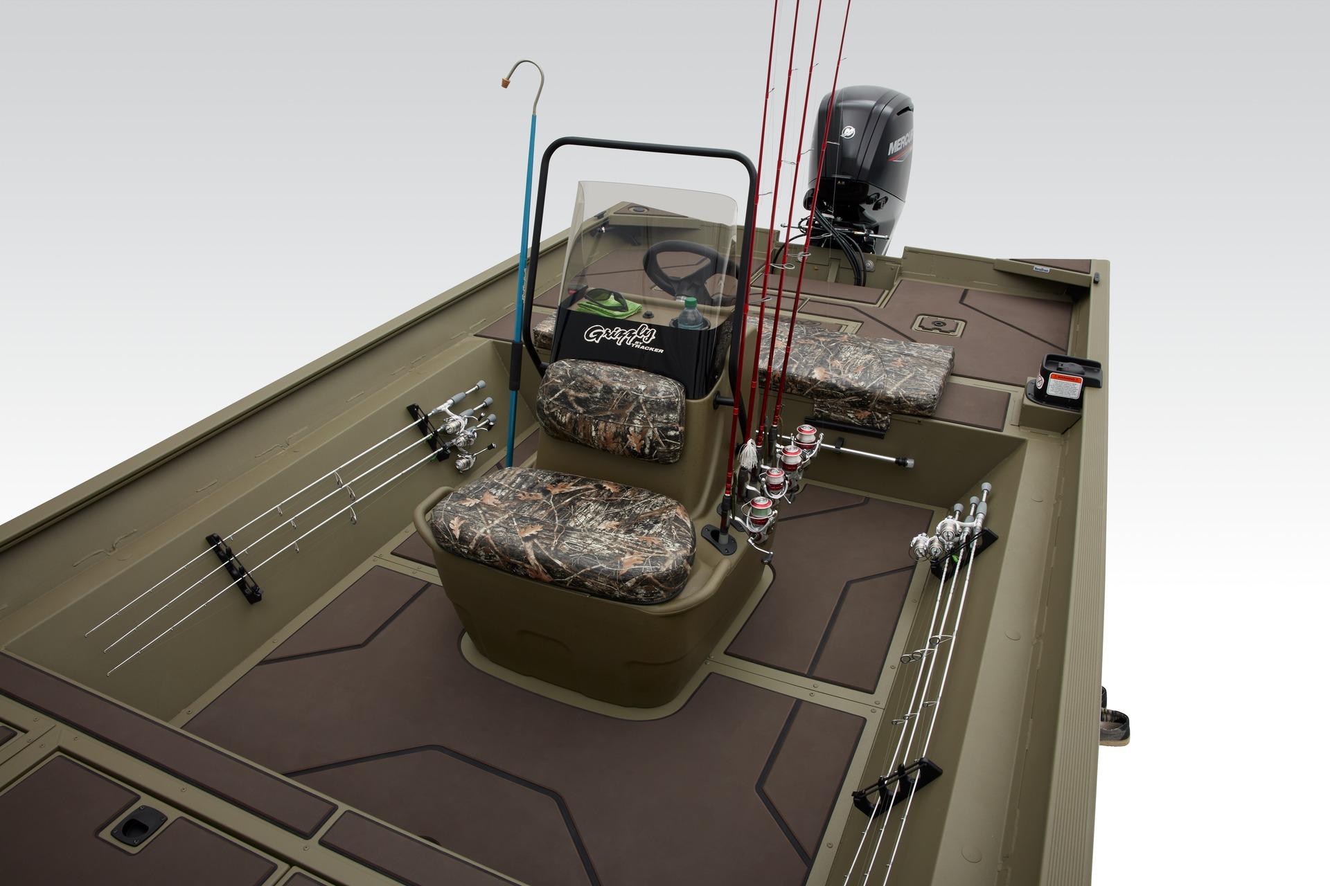 Unleash the power of the TRACKER® GRIZZLY® 2072 CC, a formidable all-welded aluminum jon boat designed to tackle a multitude of tasks, whether it's inland or inshore fishing, hunting, or utility work. Boasting a massive build, this boat is ready to conquer any challenge you throw its way. The innovative center-console design not only offers 360° fishability but also provides the driver with enhanced visibility when navigating through narrow and shallow waters, ensuring a smooth and controlled ride. With the capability to be powered by up to 150 HP, the GRIZZLY 2072 CC delivers unmatched power and range for your adventures on the water. Constructed with 100% aluminum, featuring a .100 hull and .190 floor, this boat guarantees exceptional durability and longevity. The hull, stringer, transom, and decks are meticulously all-welded to create a rock-solid, unitized structure that can withstand the harshest conditions with ease. Backed by the reliable TRACKER PROMISE, offering the best factory warranty in aluminum boats, the GRIZZLY 2072 CC provides you with peace of mind and confidence in your investment. For those looking to personalize their vessel, optional TrueTimber camo patterns and a MarineMat kit are available, allowing you to tailor your boat to suit your preferences and style. Experience unparalleled versatility, power, and durability with the TRACKER GRIZZLY 2072 CC, your ultimate companion for a wide range of water activities.