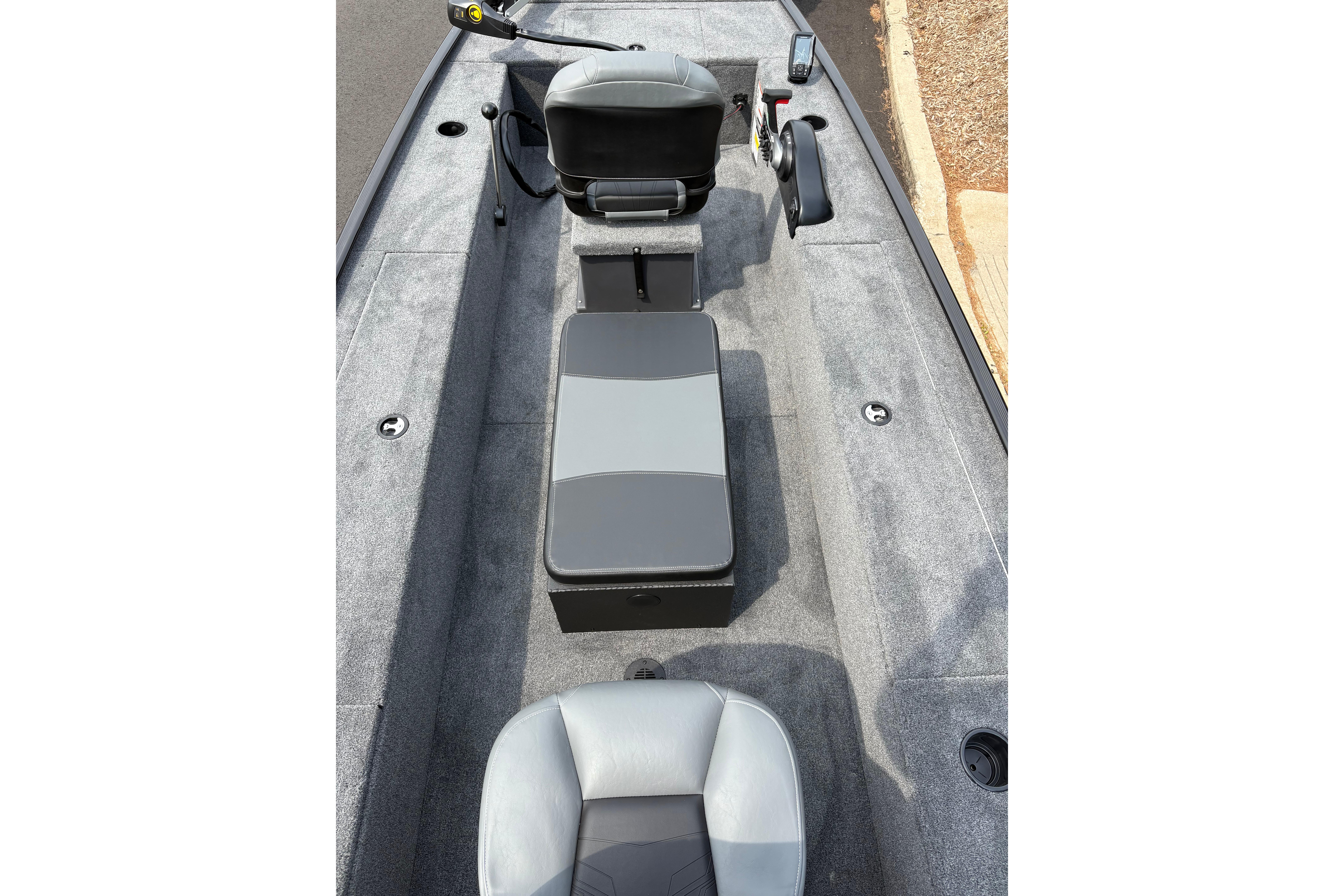 The Panfish 17 has an interior that’s bound to appeal to hard-working anglers who look after every cent. The bow driver’s station features throttle and steering stick with a standard fishfinder and electronics to get you on the fish and keep you there. A huge bow storage box keeps a world of gear handy, safe, and dry.
