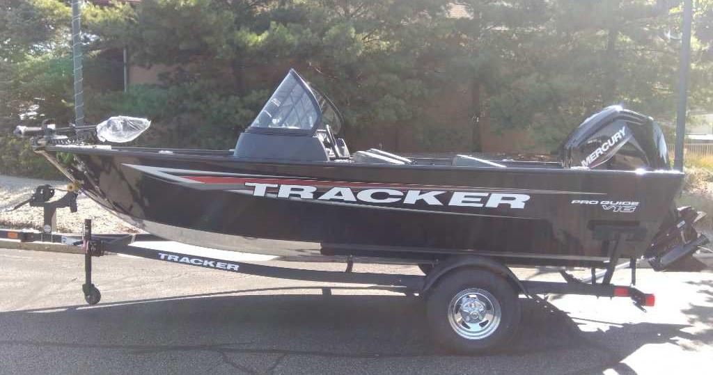 The TRACKER PRO GUIDE V-16 WT packs a punch in a compact, Deep V hull design. The walk-thru windshield shields you from the elements, ensuring comfort in all conditions. With three fishing seats and six customizable setups, the PRO GUIDE V-16 WT is ready for your whole crew. The Deep V hull is sdesigned for smooth, dry performance and peak edge-to-edge stability. It has space galore, so you can haul all your gear with ease. Up front is a standard Minn Kota trolling motor with a livewell/baitwell and twin storage boxes while the console features a Garmin Striker 4 color fishfinder with a full gauge setup and smooth, reliable steering. Rounding out the package are a custom-fitted trailer and reliable, economical four stroke Mercury power.
