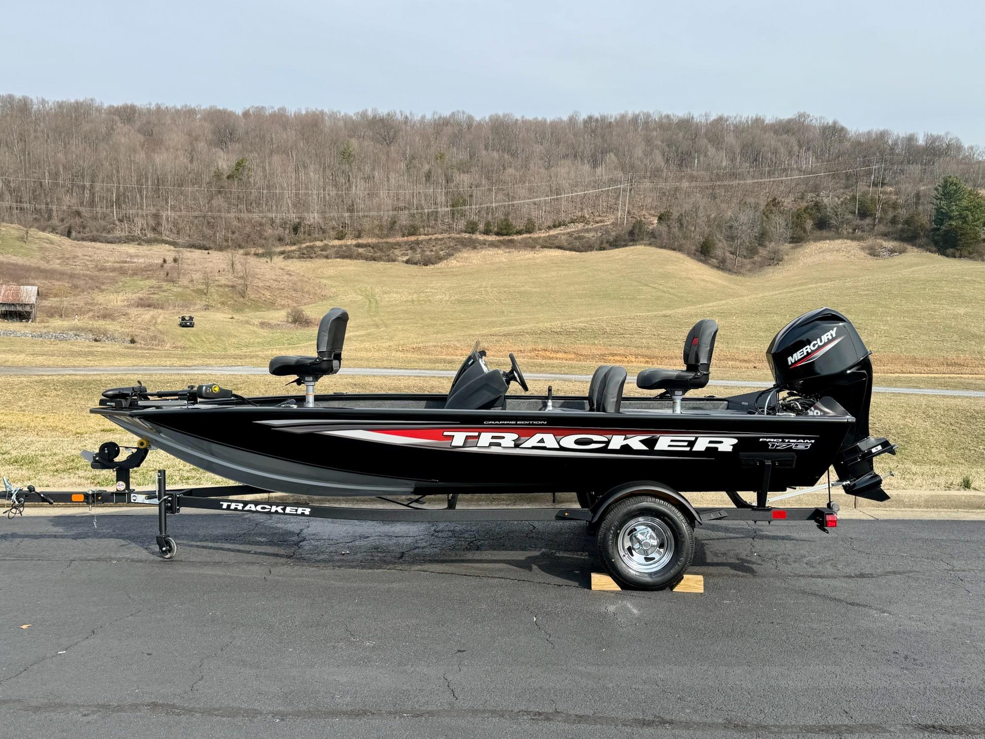 For anglers who target a diverse range of fish species such as crappie, bass, walleye, pike, and more, the TRACKER PRO TEAM 175 Crappie Edition® is just as versatile as you are. Standard features include the TRACKER® touchscreen gauge display, the three-across bow seat positions, dual livewells, and ultra-stable front deck that deliver even stronger fishability and conveience. The PRO TEAM 175 Crappie Edition is powered by a smooth, reliable Mercury® outboard, and comes standard with a Minn Kota® Edge trolling motor and Lowrance® HOOK Reveal 5 color fishfinder. Like all TRACKER® boats, the 175 is backed by the TRACKER PROMISE, which offers the best factory warranty in aluminum boats. Elevate your angling adventures with the TRACKER PRO TEAM 175 Crappie Edition® and experience the perfect blend of performance, versatility, and reliability.