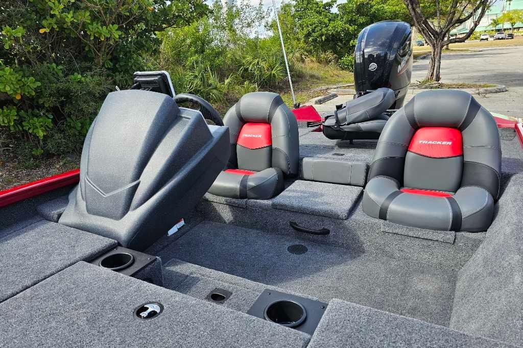 • NEW 1-piece rotomolded TRACKER® console w/built-in controls, storage pocket & windscreen