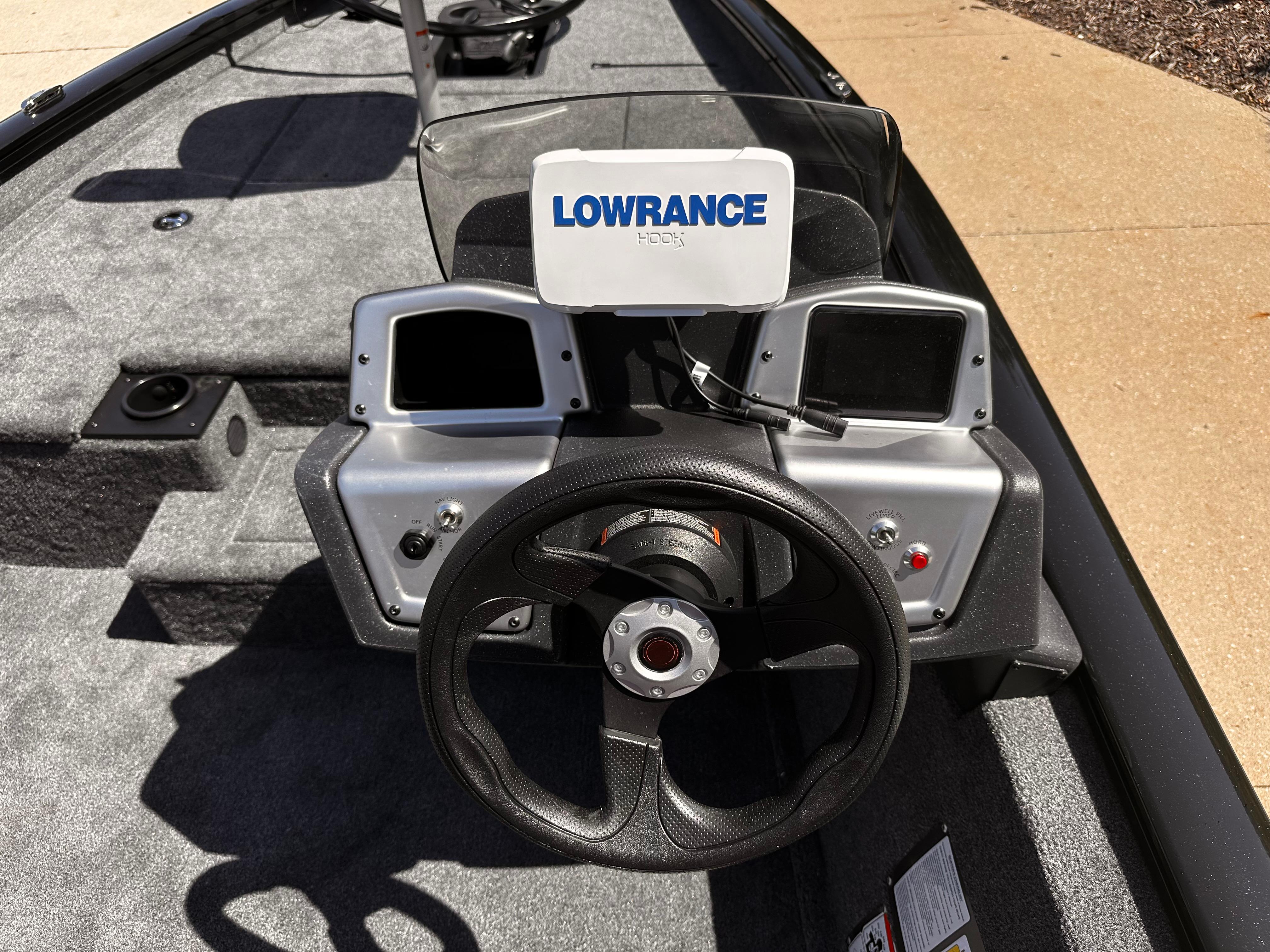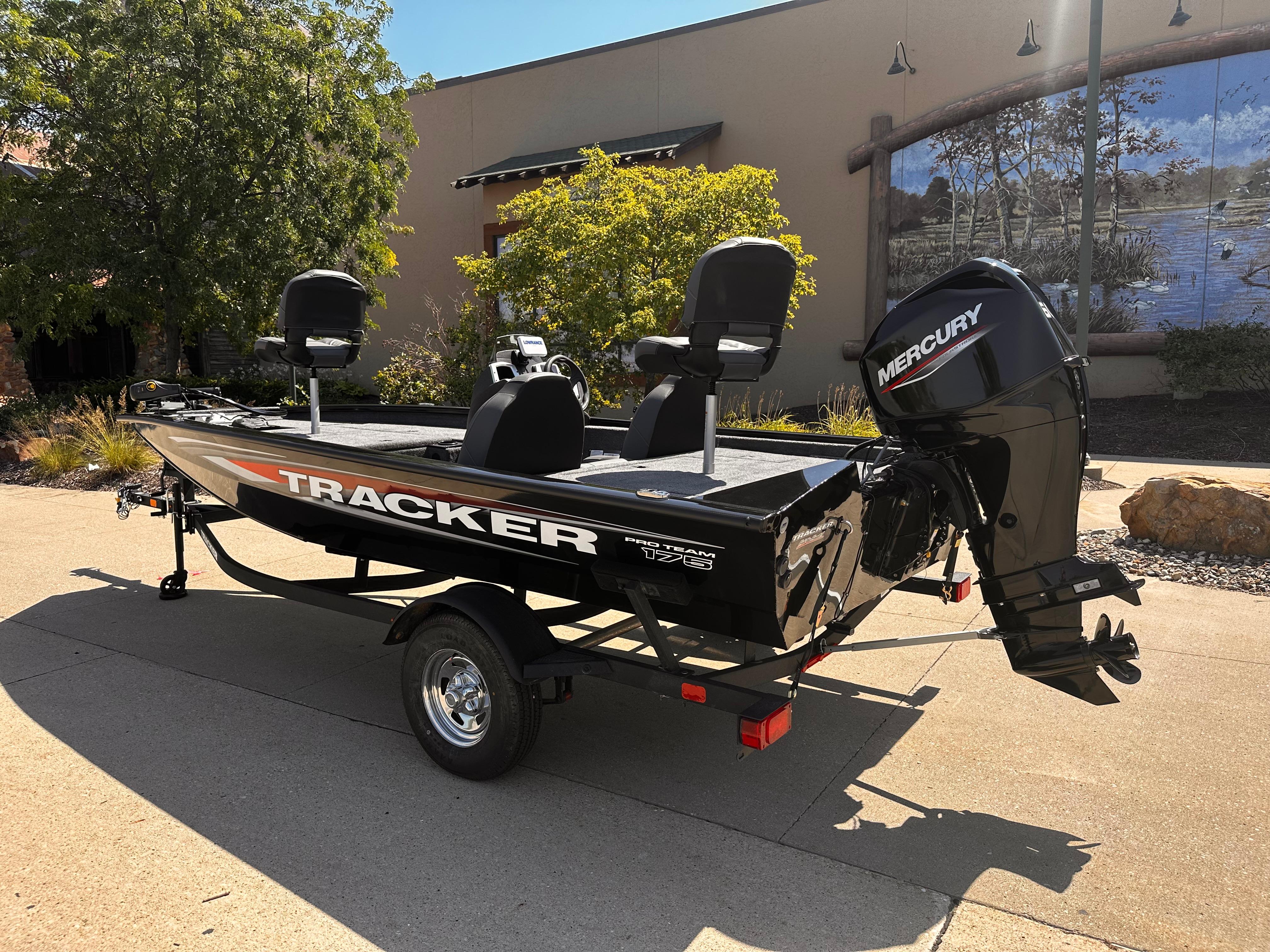 The TRACKER PRO TEAM 175® is one of the most value- and feature-packed boats in the TRACKER stable, and also one of our most popular models. All-welded construction offers superior strength that carries huge decks, abundant storage, and a 21-gallon aerated, divided, and timed livewell. Motivation comes by way of reliable, economical Mercury® power designed for years of exciting performance. The cosole features a TRACKER touchscreen display that keeps an eye on your outboard and more, a Lowrance Hook color fishfinder, and sturdy, responsive steering. With a proven legacy and untold scores of fish caught, the TRACKER PRO TEAM™ 175 delivers tournament-ready fishability and performance with unbeatable value.